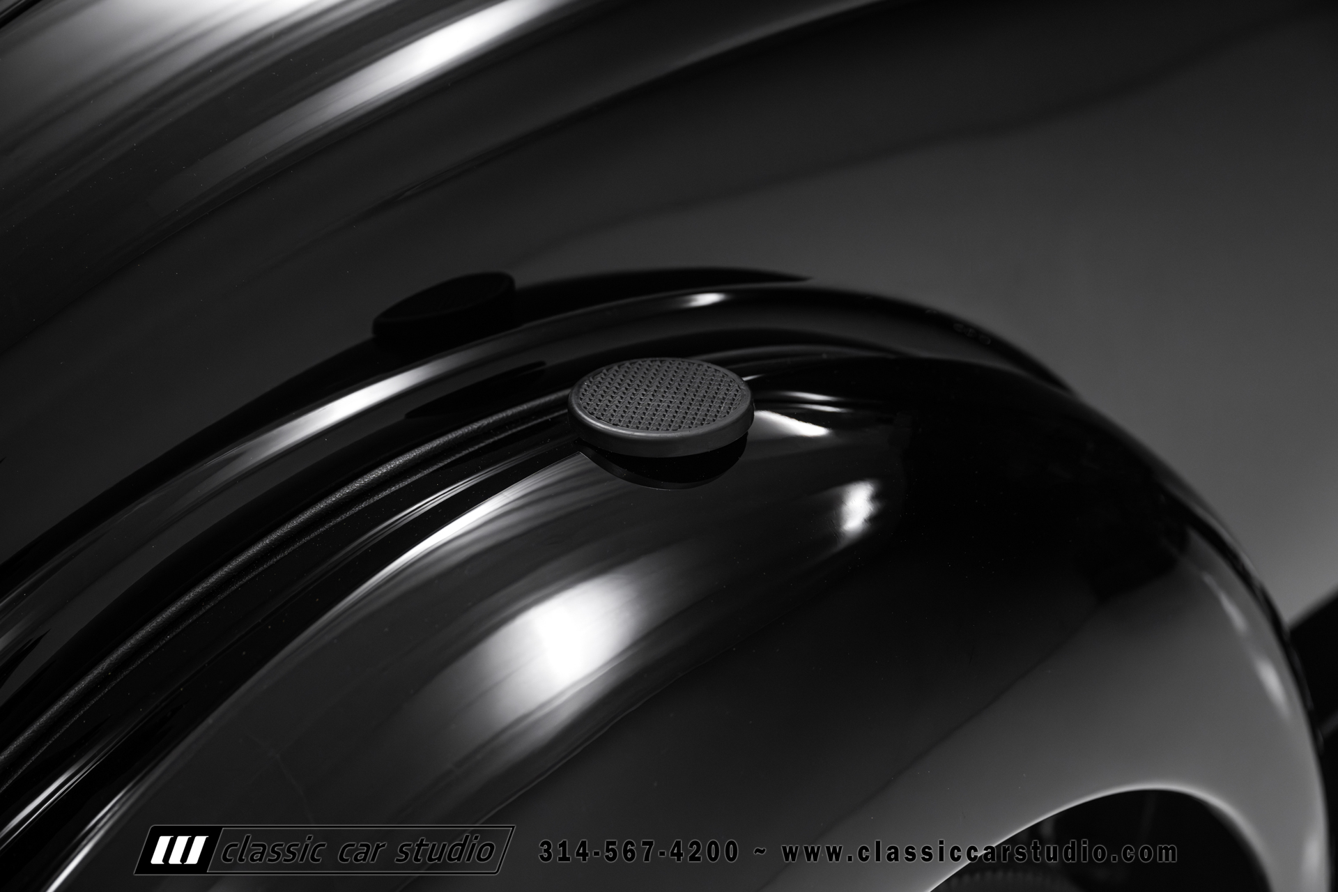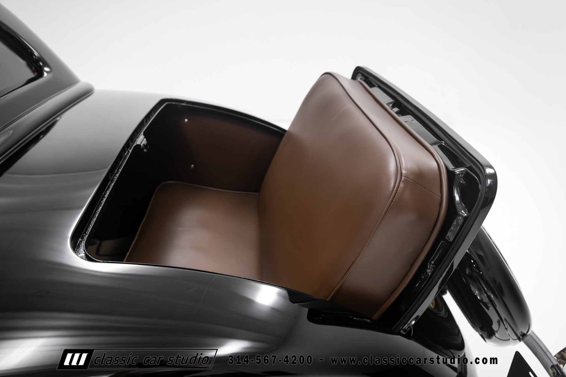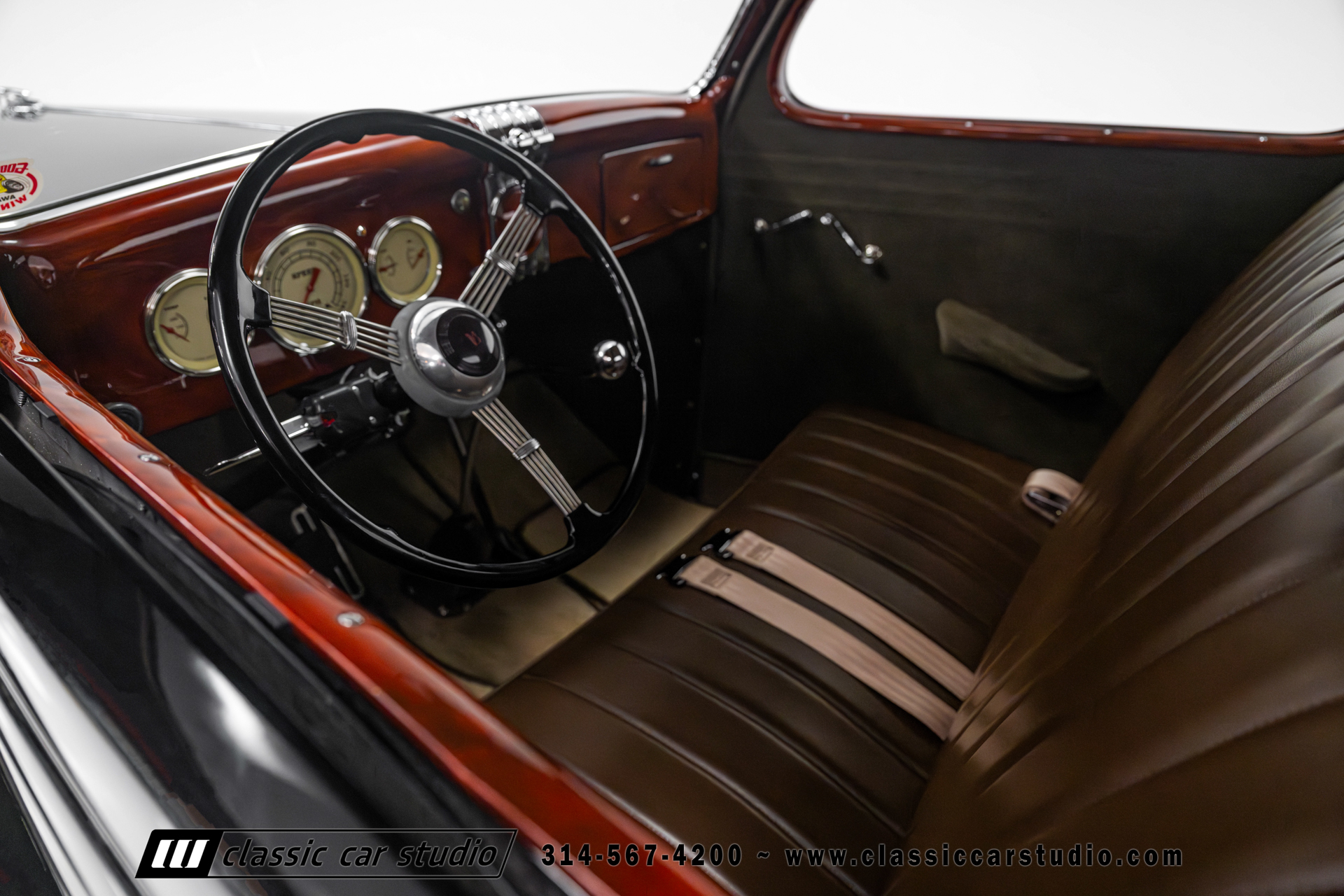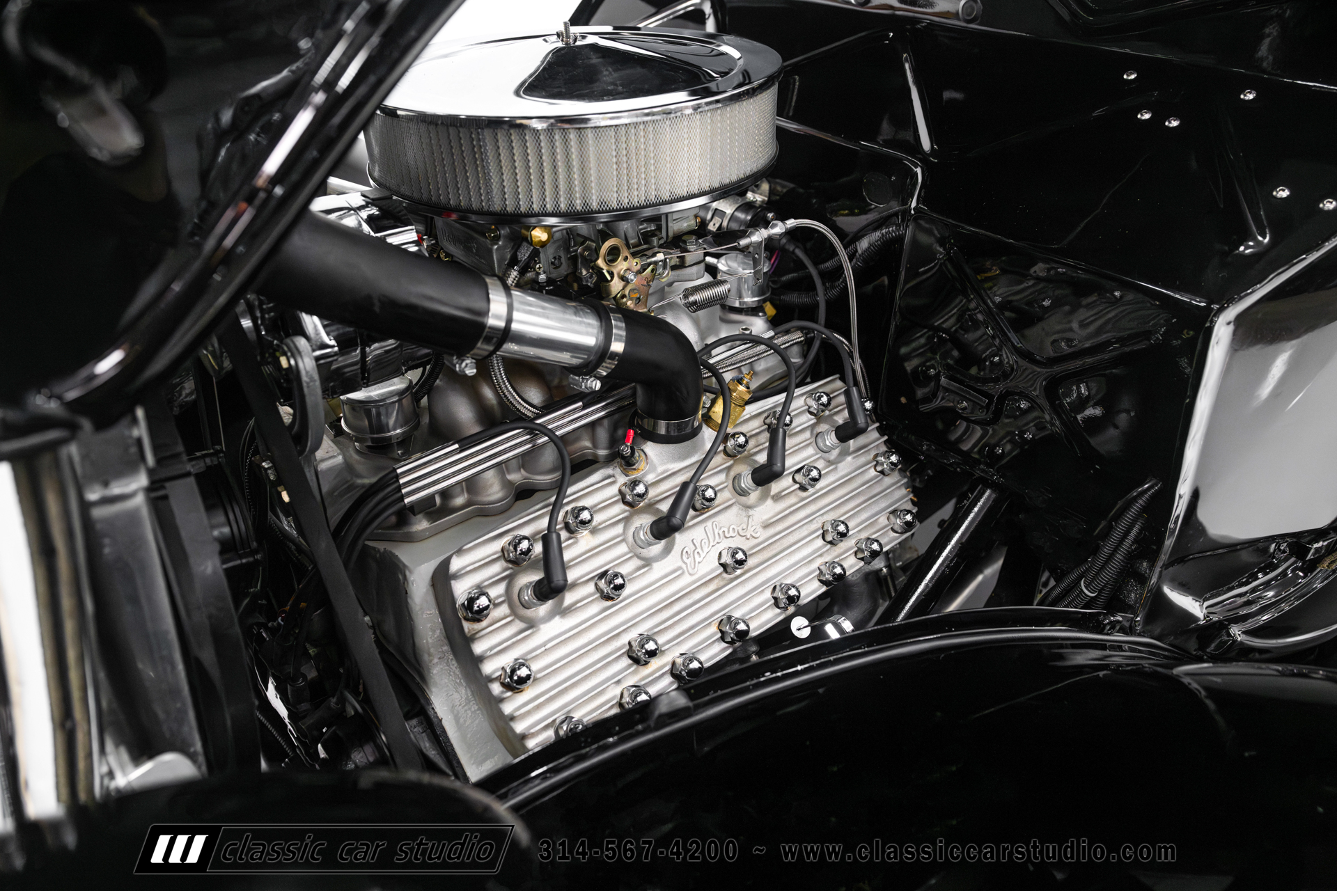 In 2017, the restoration was completed by Rezurected Rod and Kustom in Wayne, NE. This all steel car with original fenders that was stripped down to bare metal and the project began! All new body work was laid out as well as a slick black paint job. The grill, bumpers and windshield surround received all new chrome and the factory wire wheels were refinished in yellow with chrome “V8” caps.