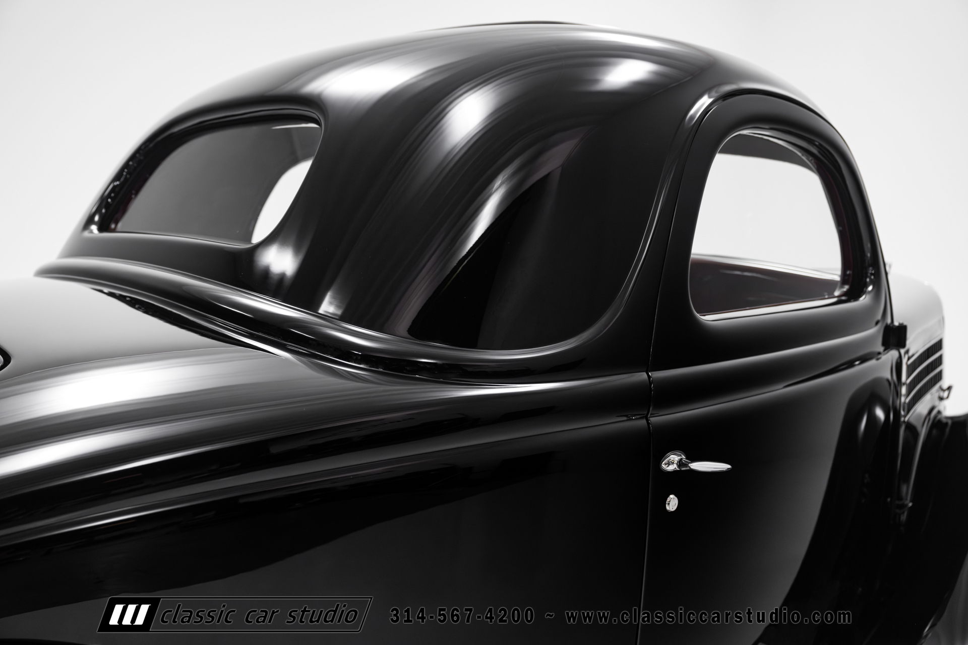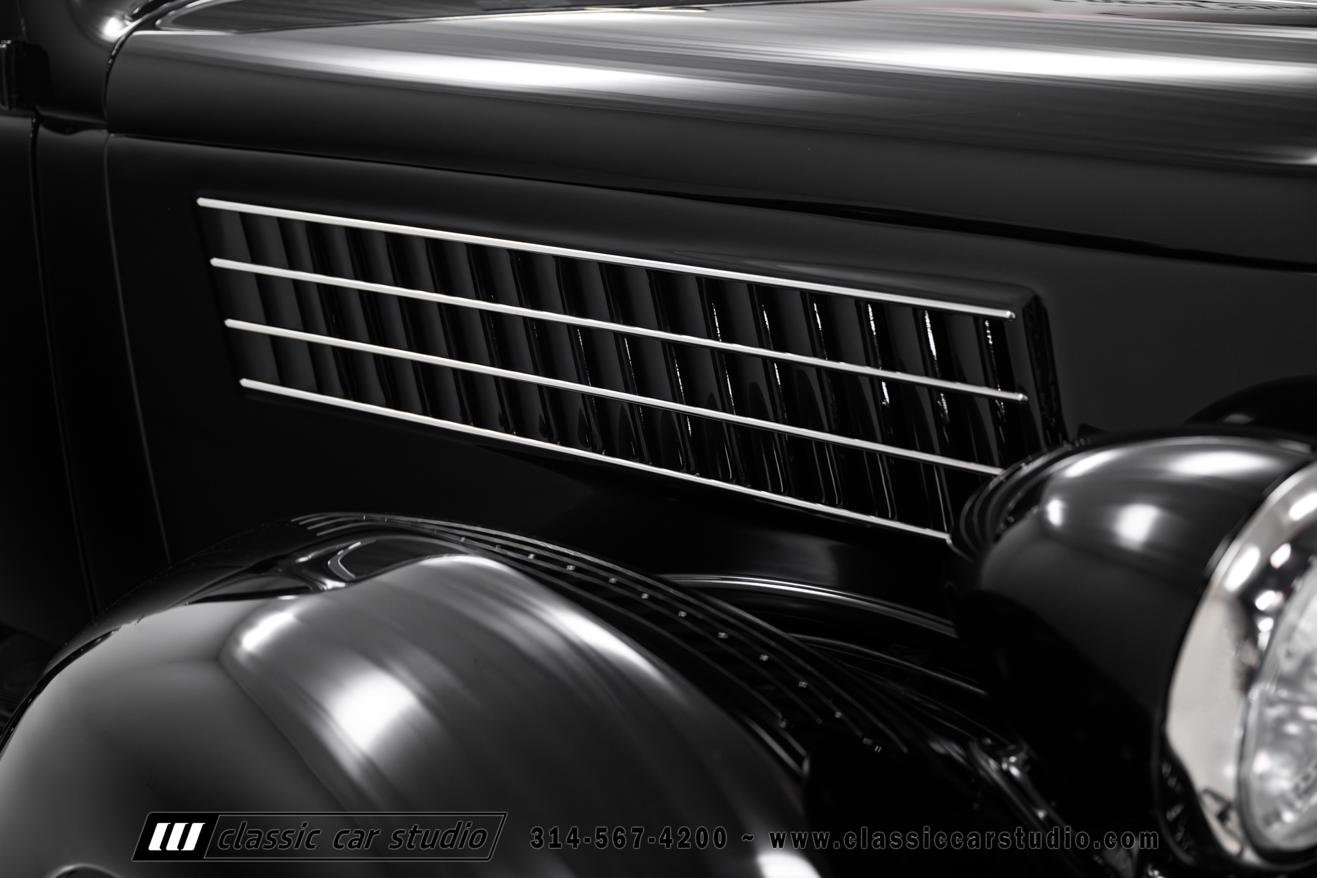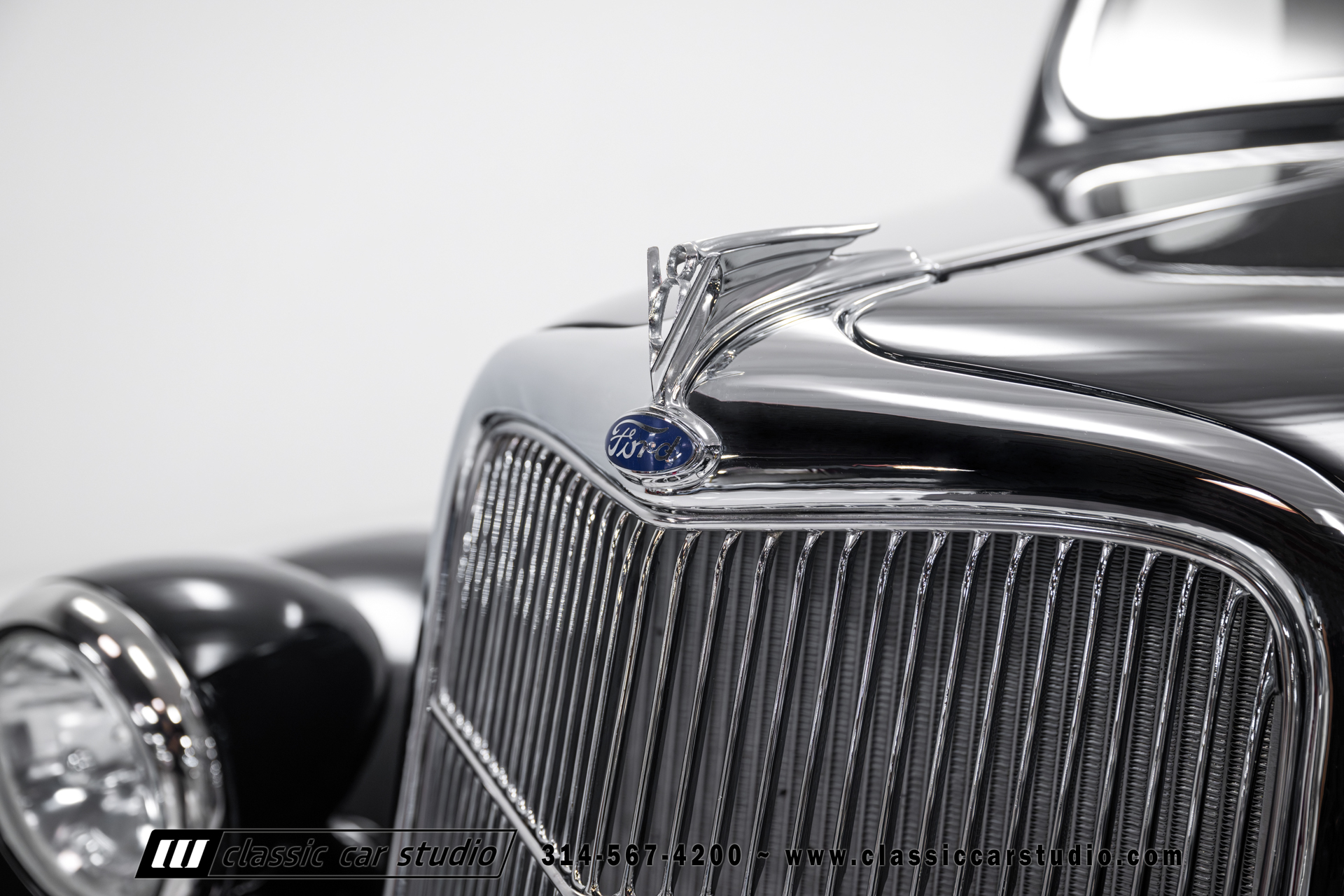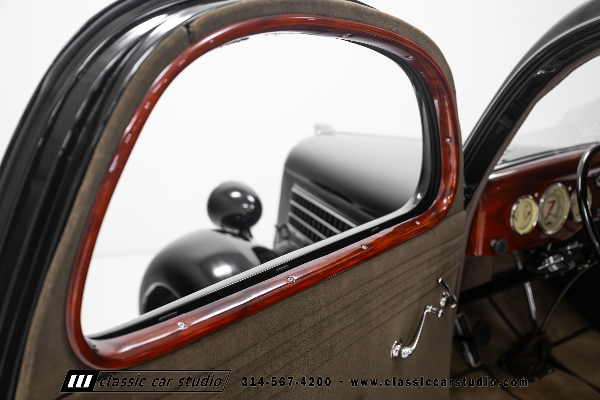 In 2017, the restoration was completed by Rezurected Rod and Kustom in Wayne, NE. This all steel car with original fenders that was stripped down to bare metal and the project began! All new body work was laid out as well as a slick black paint job. The grill, bumpers and windshield surround received all new chrome and the factory wire wheels were refinished in yellow with chrome “V8” caps.