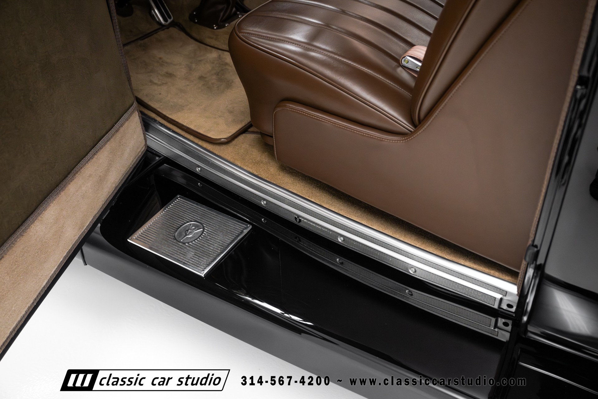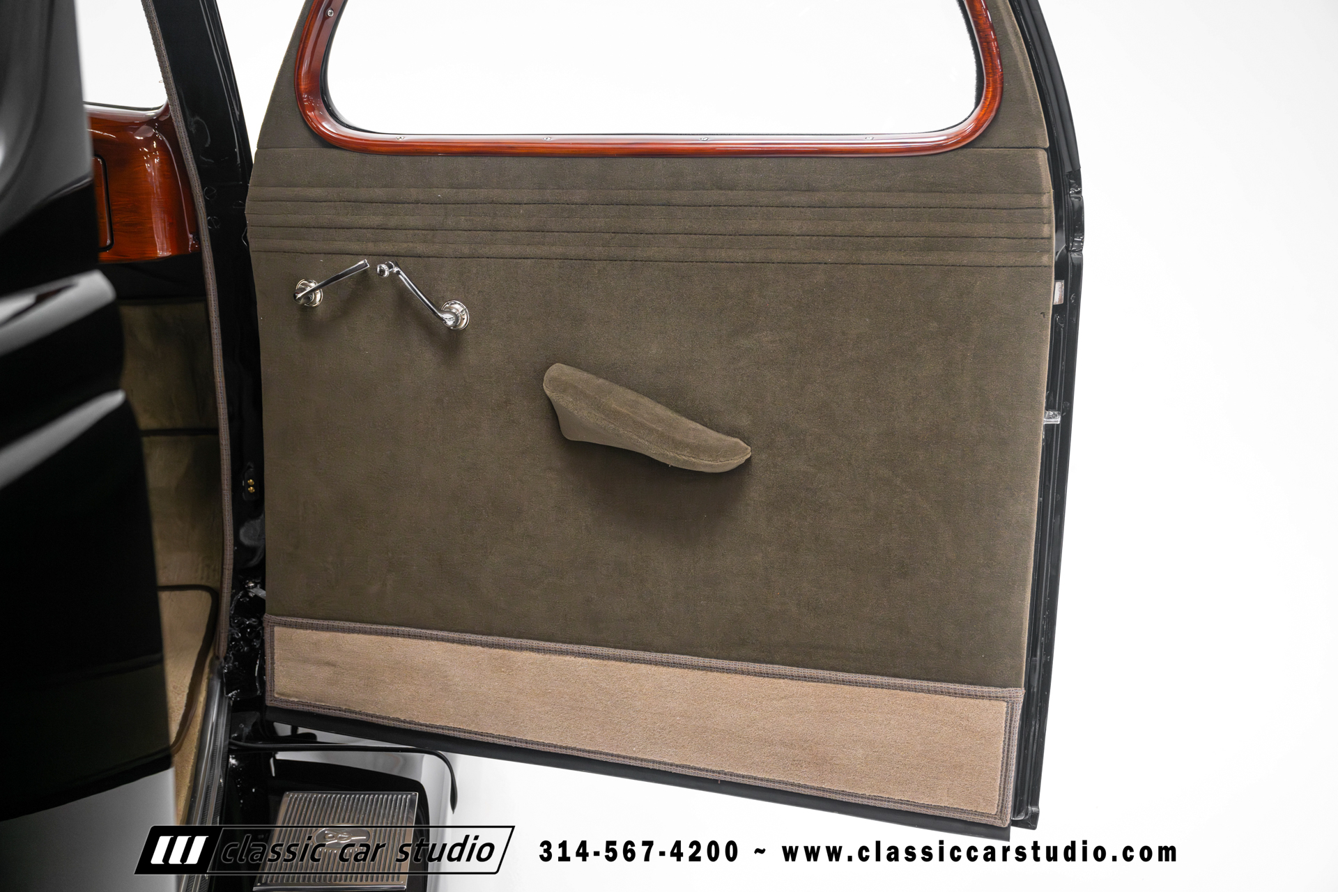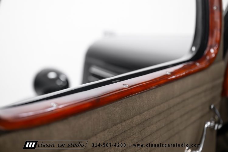 The fully restored interior features new carpeting with contrasting trimmed edges, a brown pleated seat, and mohare door panels. The car has been upgraded with modern gauges with full instrumentation. The dash and interior window moldings were finished in a beautiful faux wood finish and the headliner was done in the original style fabric. All of the wiring is new from front to rear and was done with an EZ wiring kit complete with modern fuses.