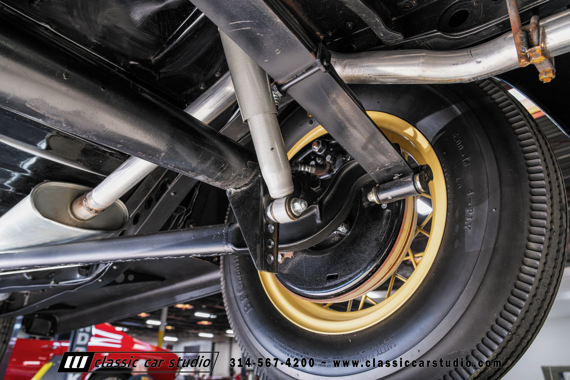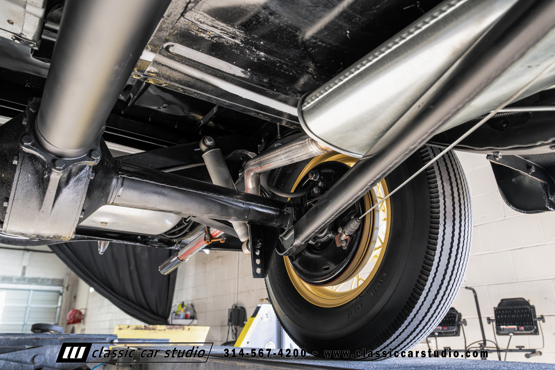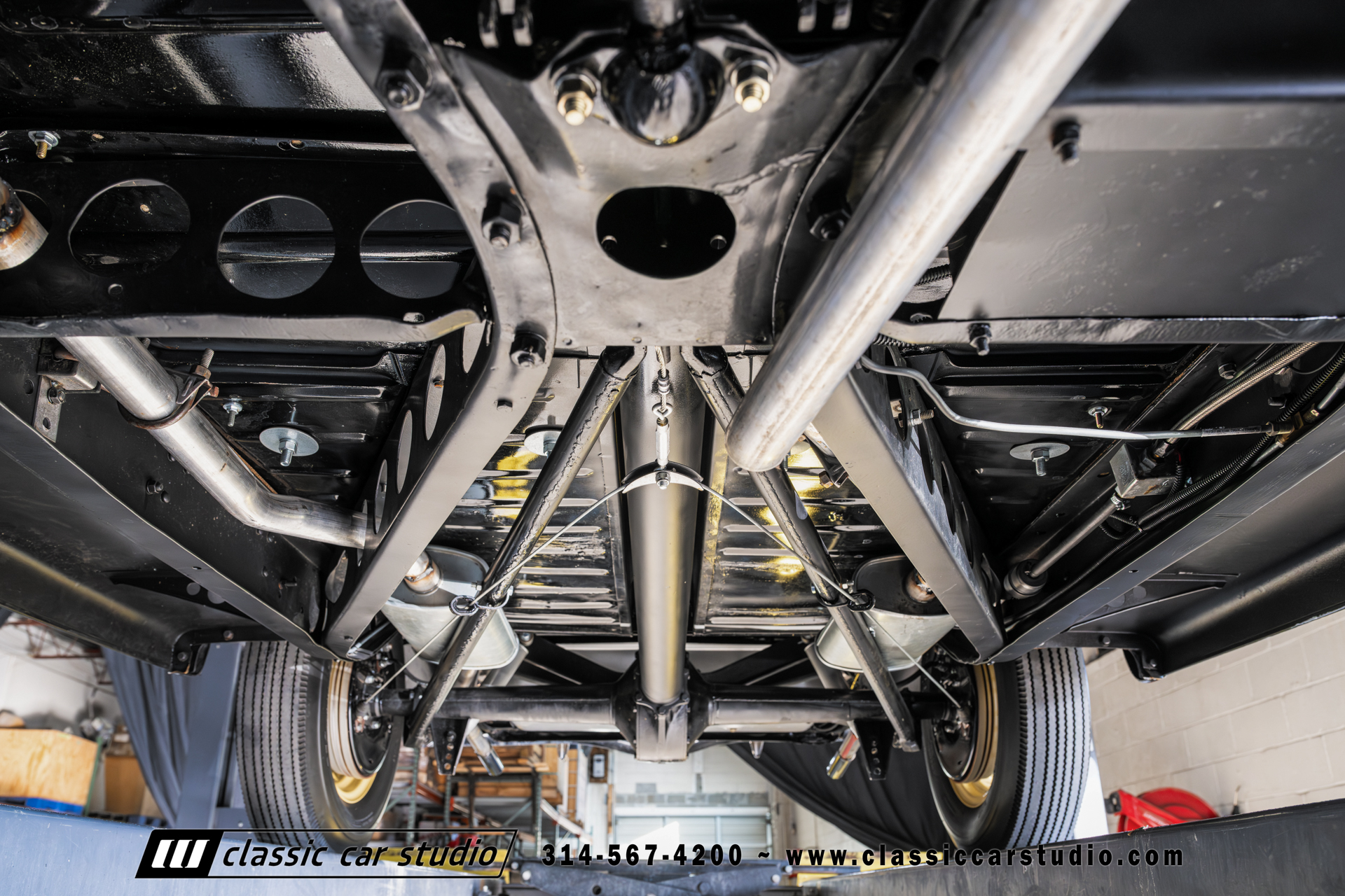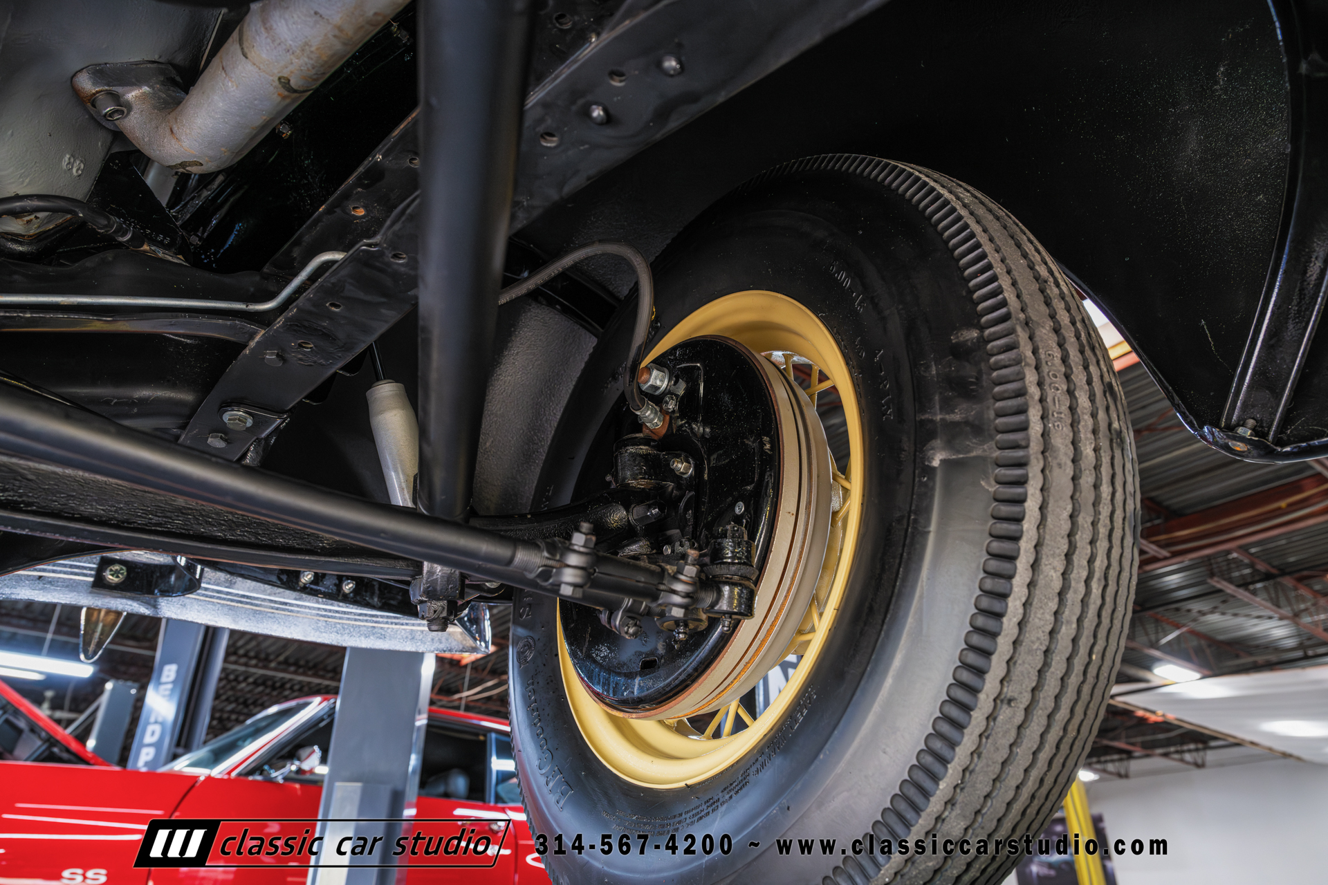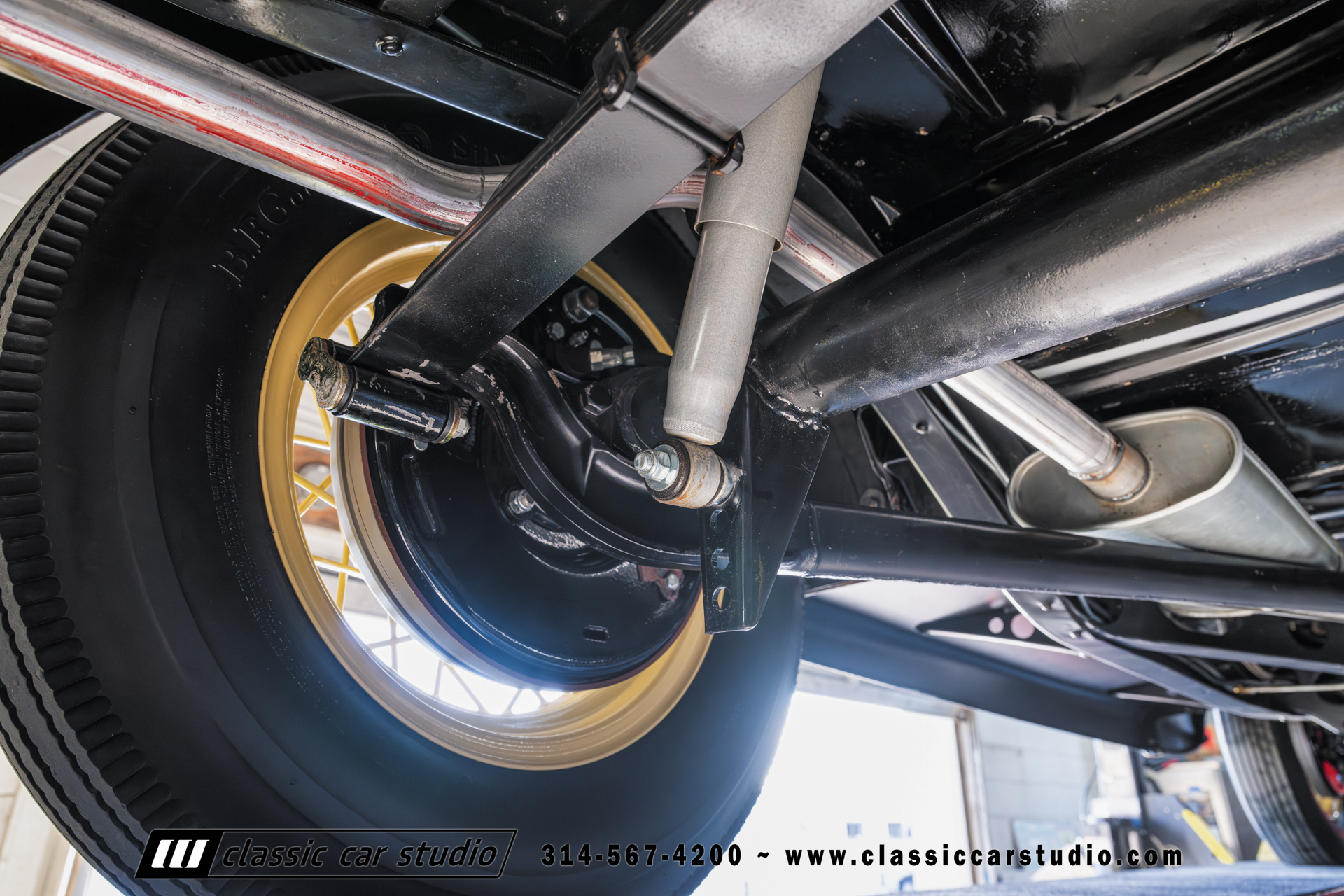 The suspension and brake systems are all new and rebuilt with parts from Pete and Jakes. The brakes are “Lincoln” brakes by MT Car. The frame was stripped and refinished in “chassis” black. The tires are BF Goodrich Silvertown, which really set off the overall look.
