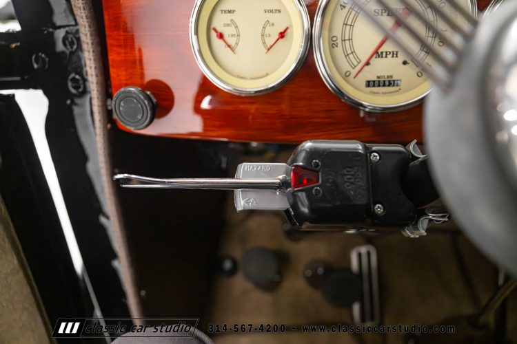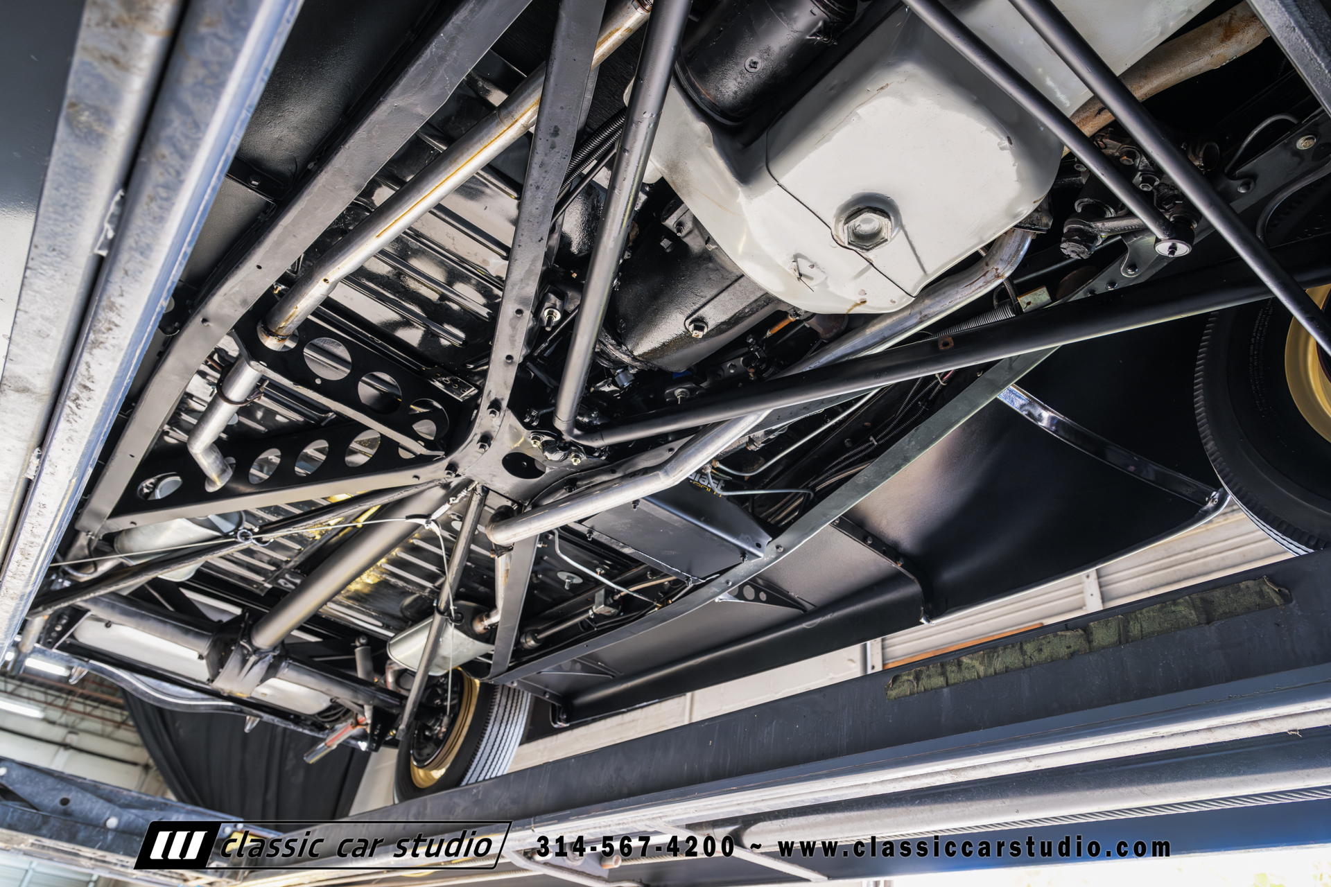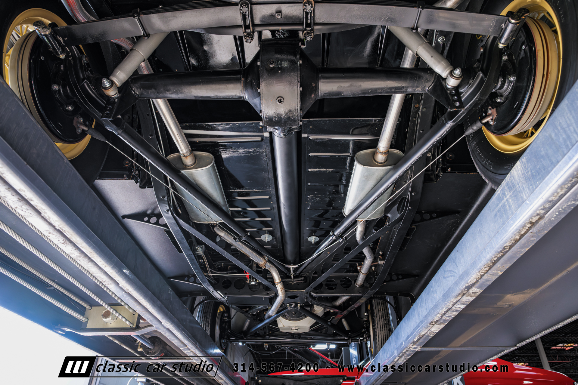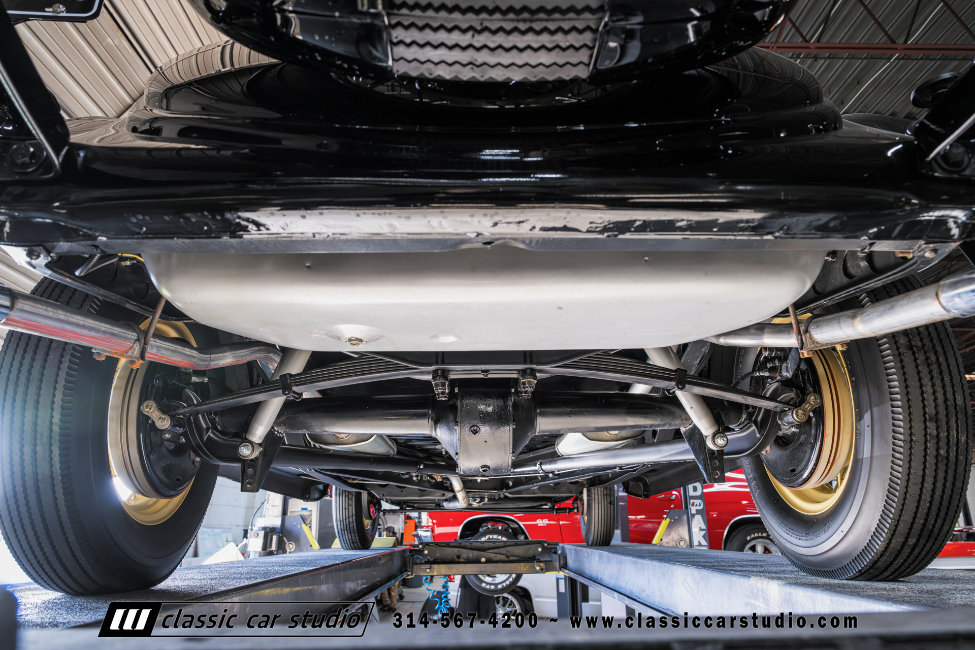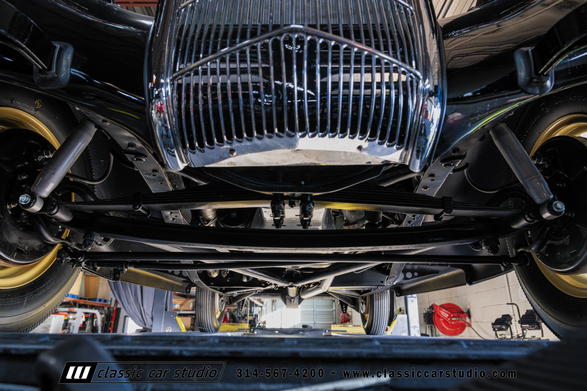 The suspension and brake systems are all new and rebuilt with parts from Pete and Jakes. The brakes are “Lincoln” brakes by MT Car. The frame was stripped and refinished in “chassis” black. The tires are BF Goodrich Silvertown, which really set off the overall look.