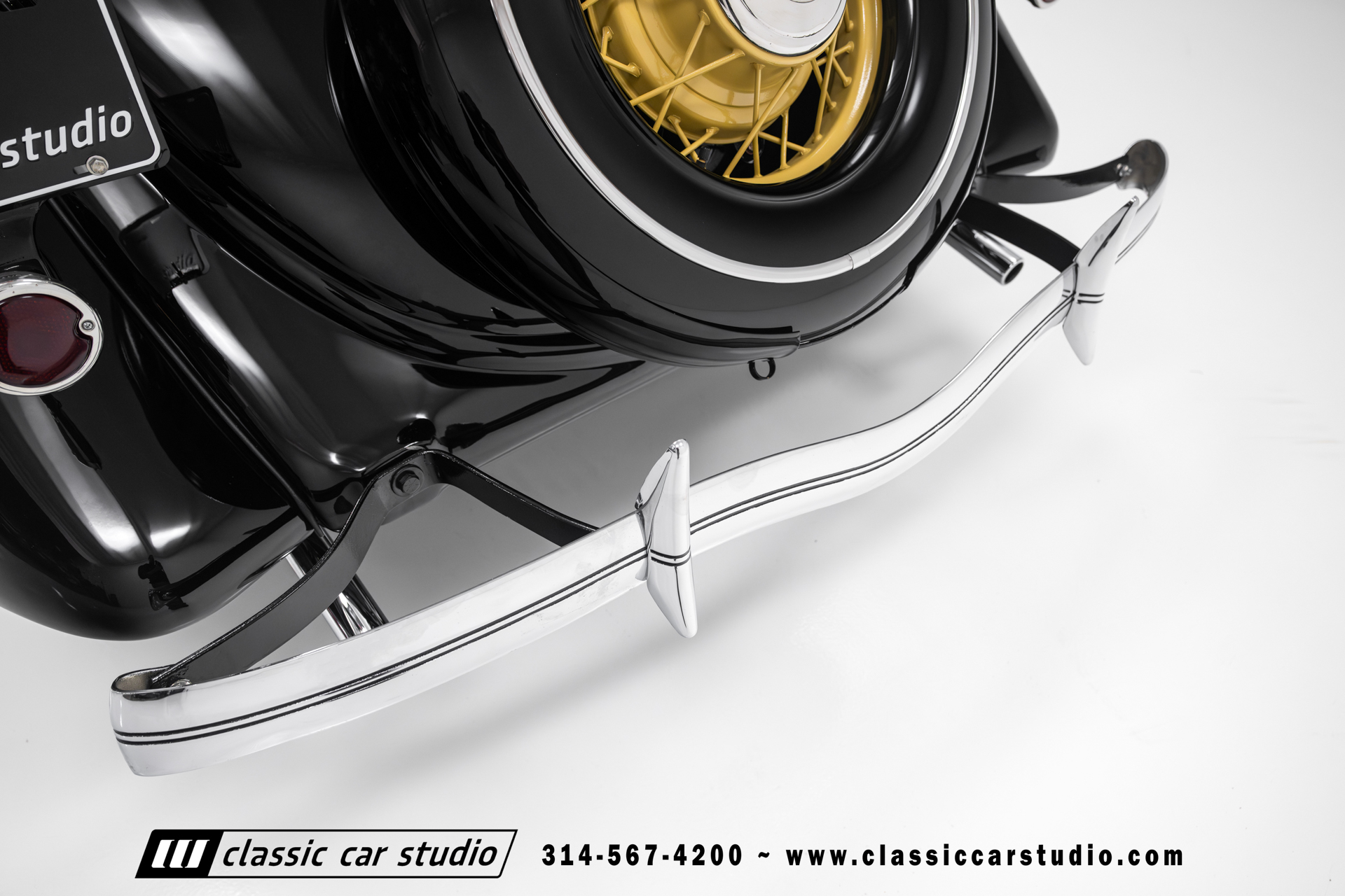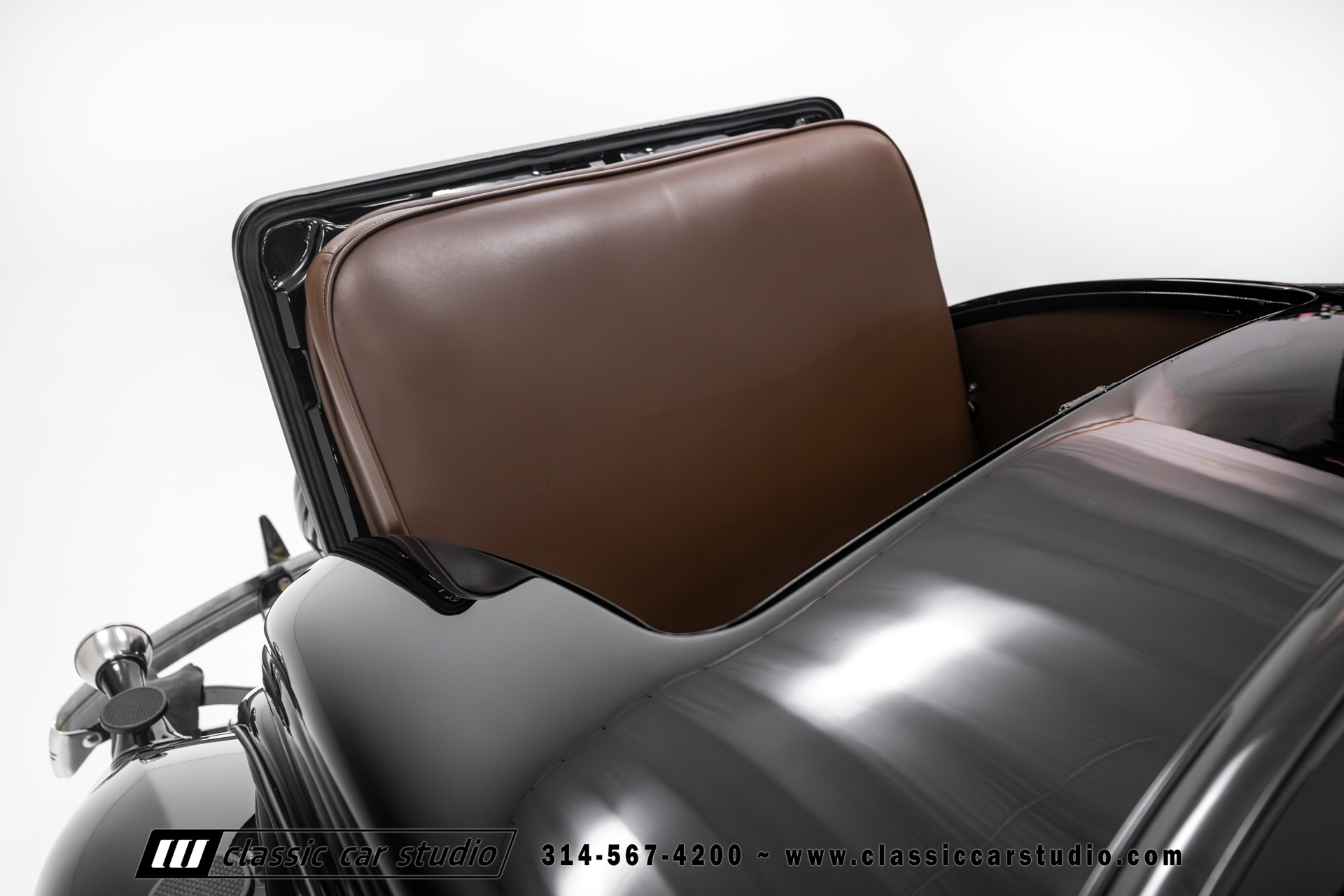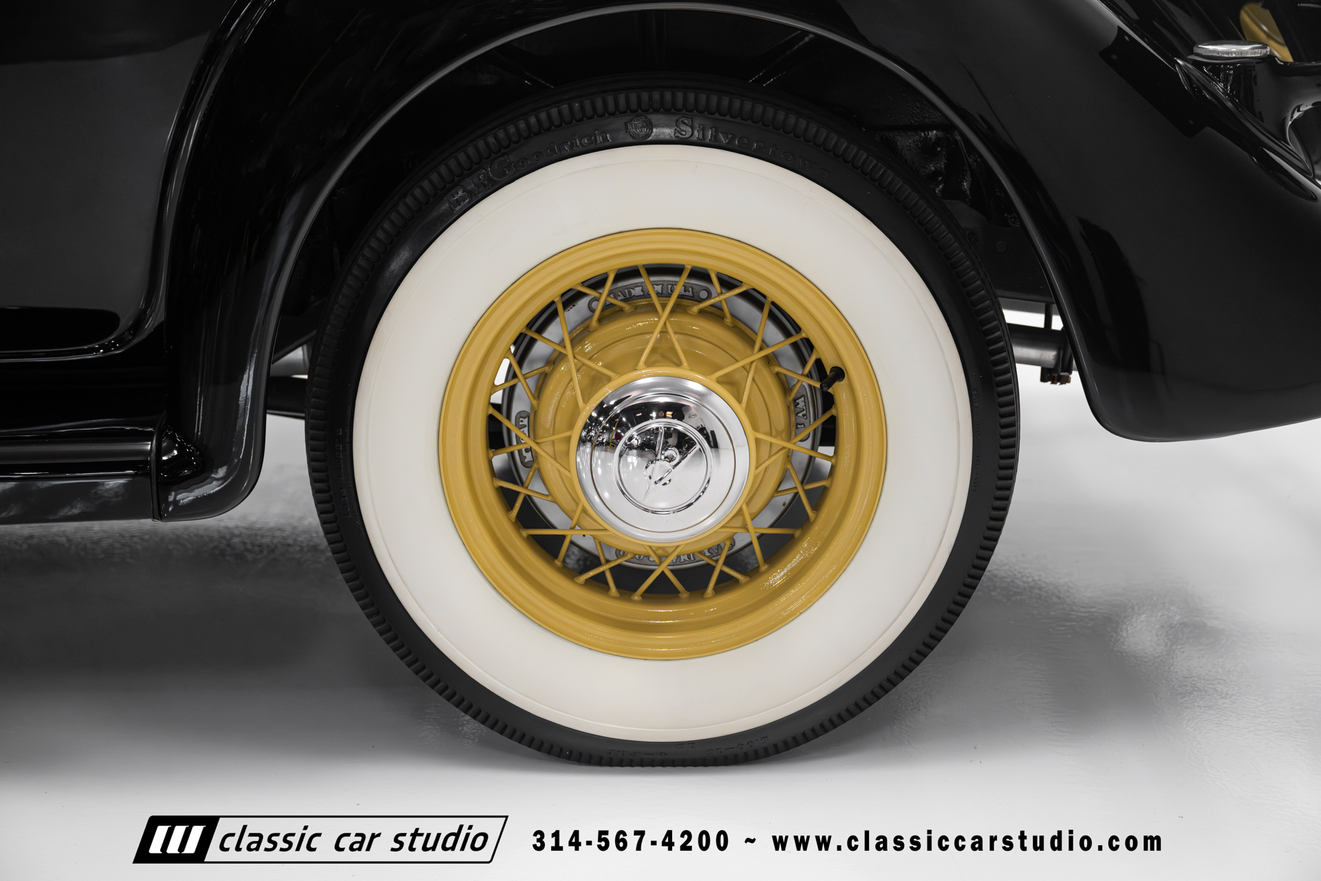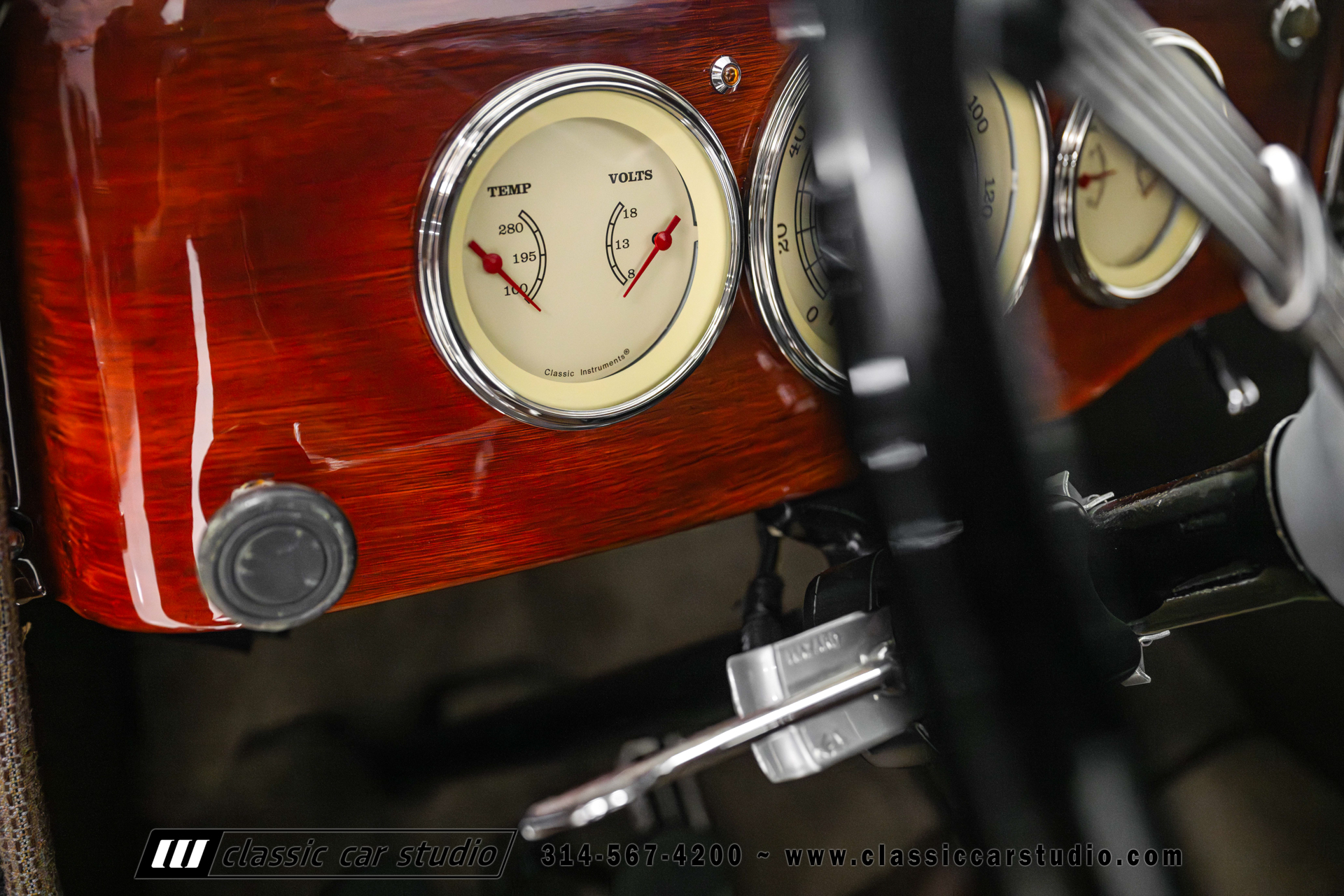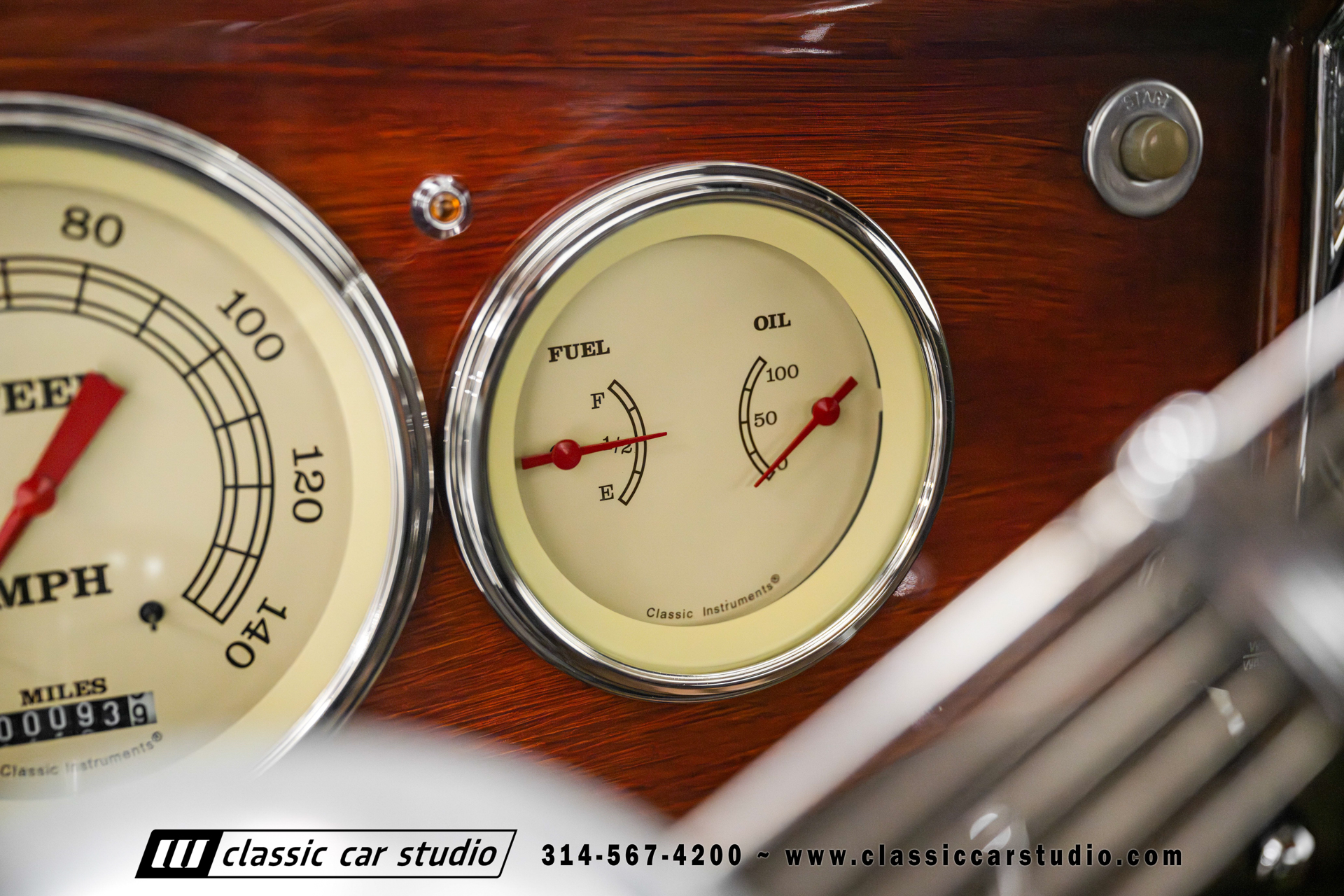 The suspension and brake systems are all new and rebuilt with parts from Pete and Jakes. The brakes are “Lincoln” brakes by MT Car. The frame was stripped and refinished in “chassis” black. The tires are BF Goodrich Silvertown, which really set off the overall look.