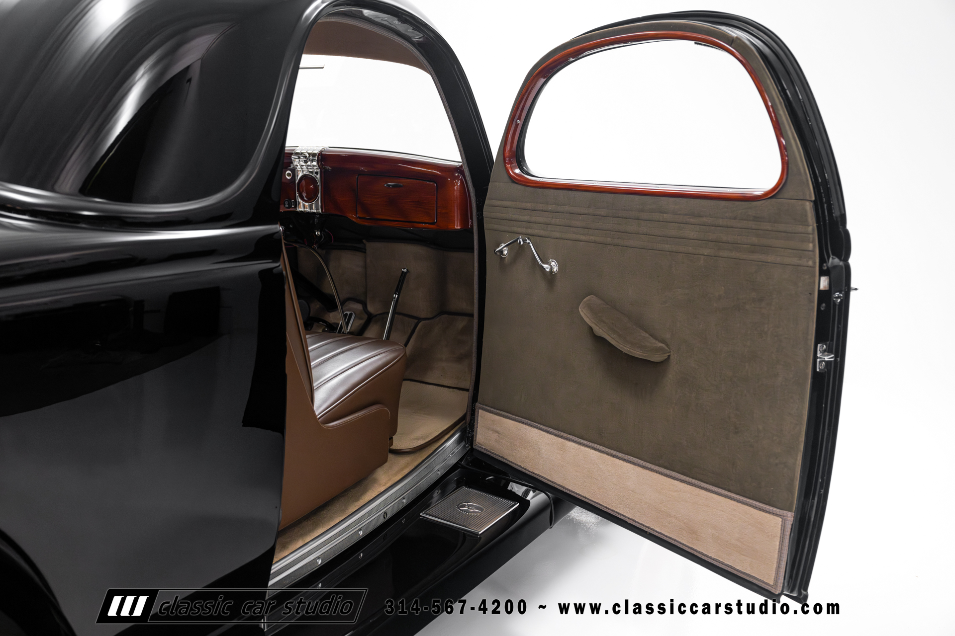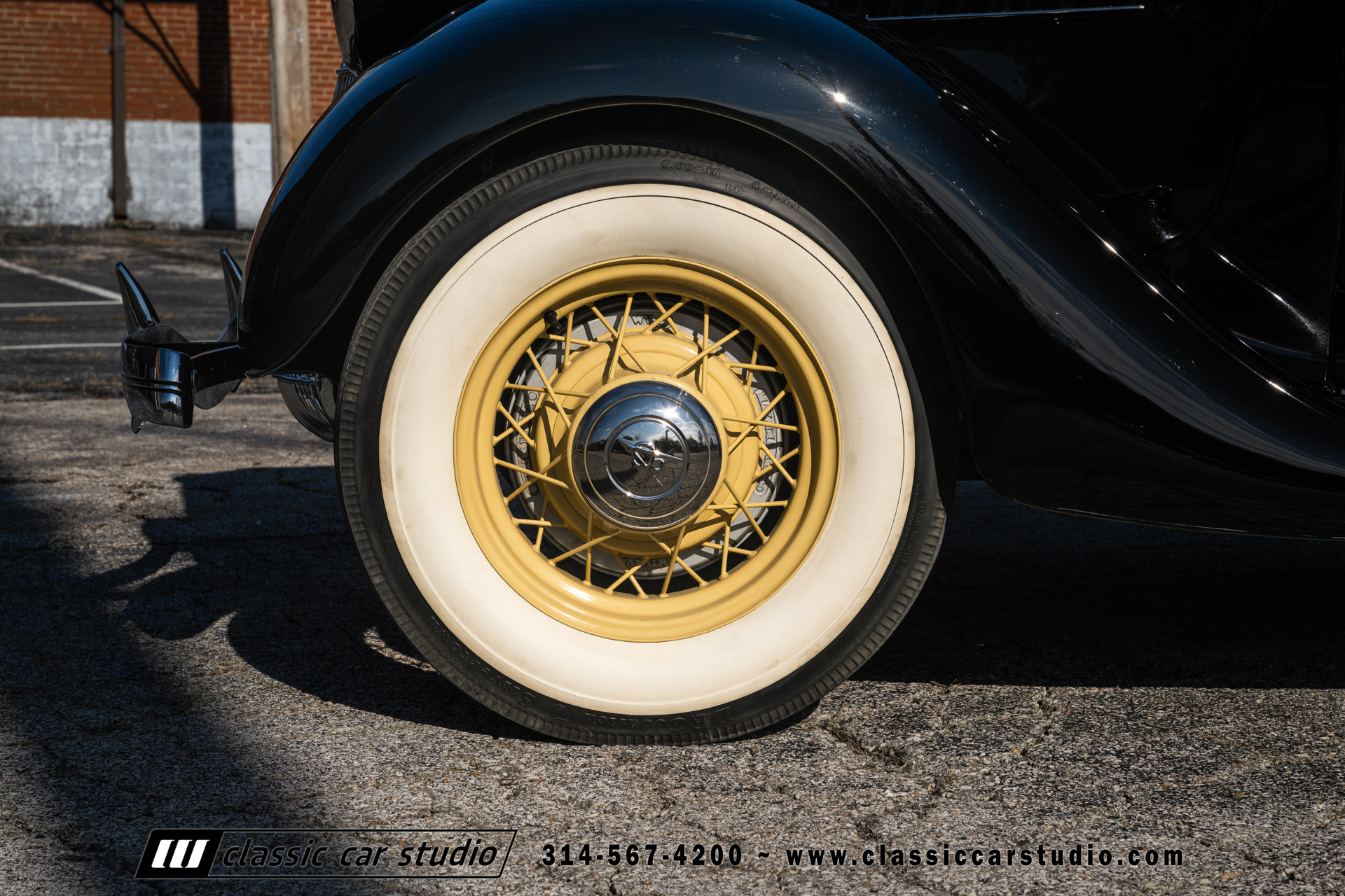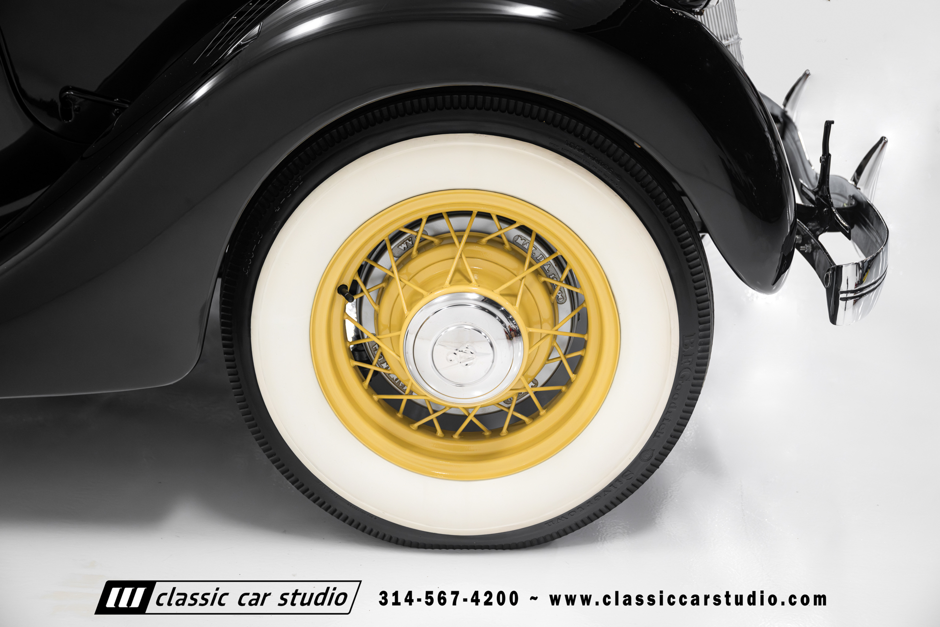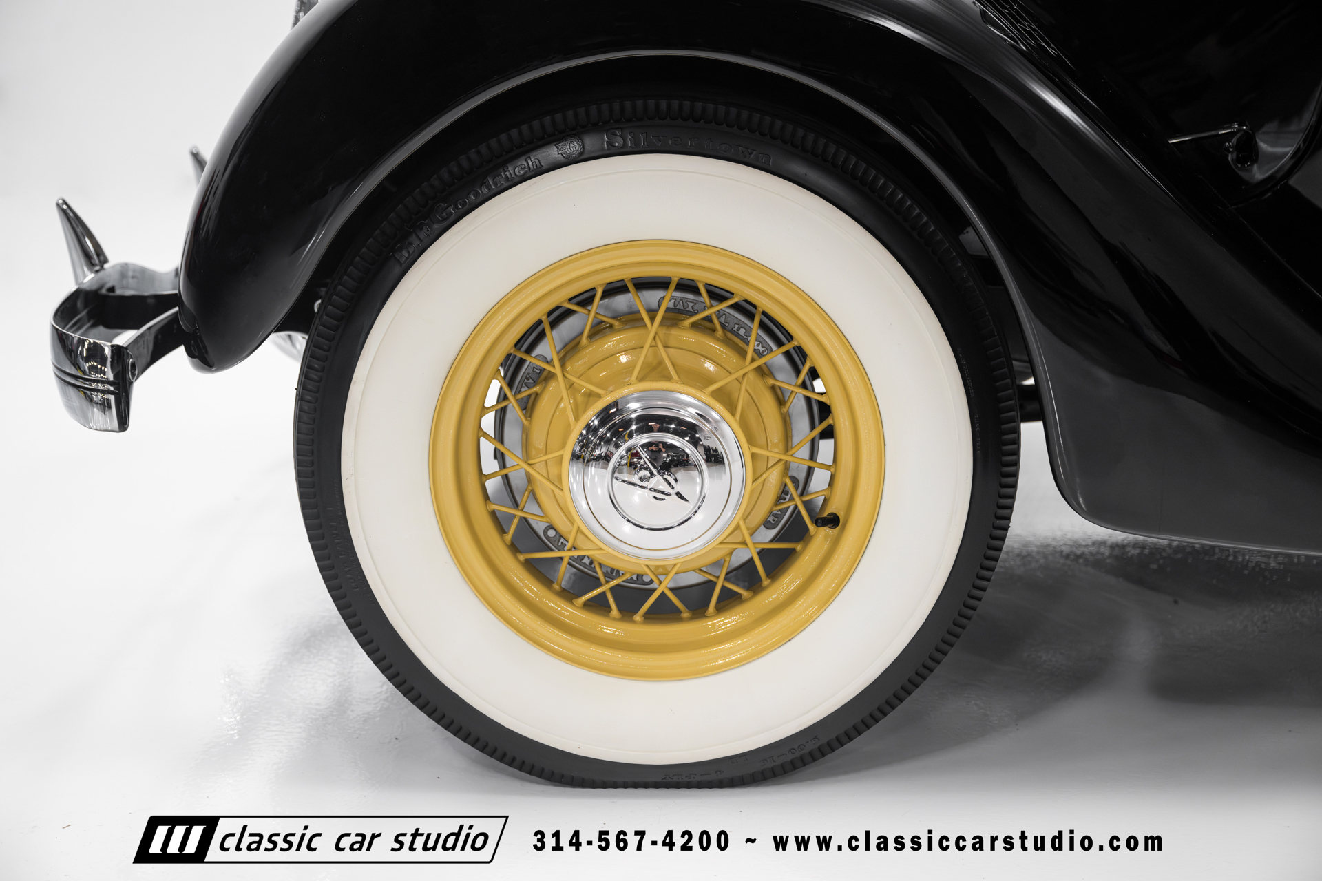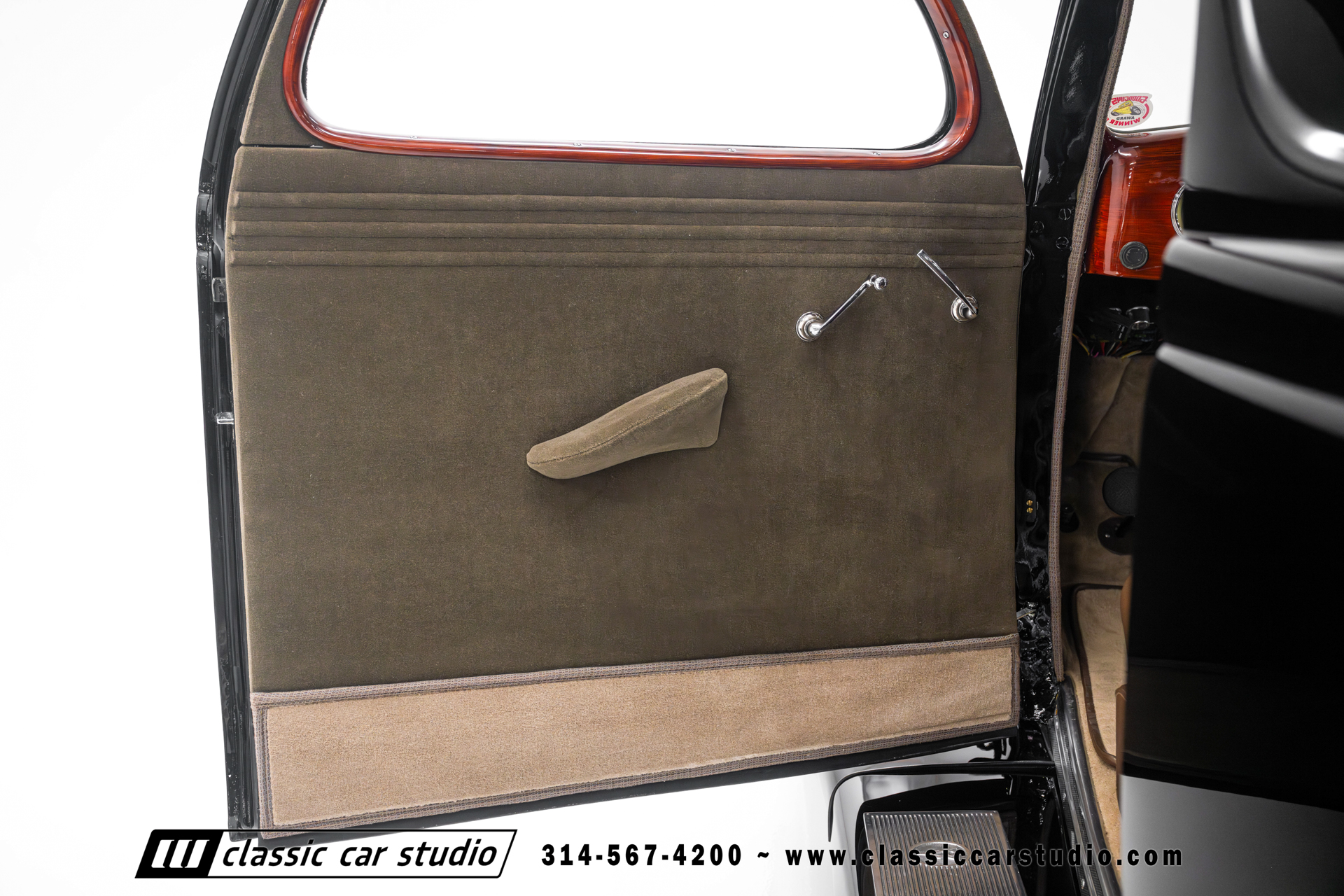 The suspension and brake systems are all new and rebuilt with parts from Pete and Jakes. The brakes are “Lincoln” brakes by MT Car. The frame was stripped and refinished in “chassis” black. The tires are BF Goodrich Silvertown, which really set off the overall look.