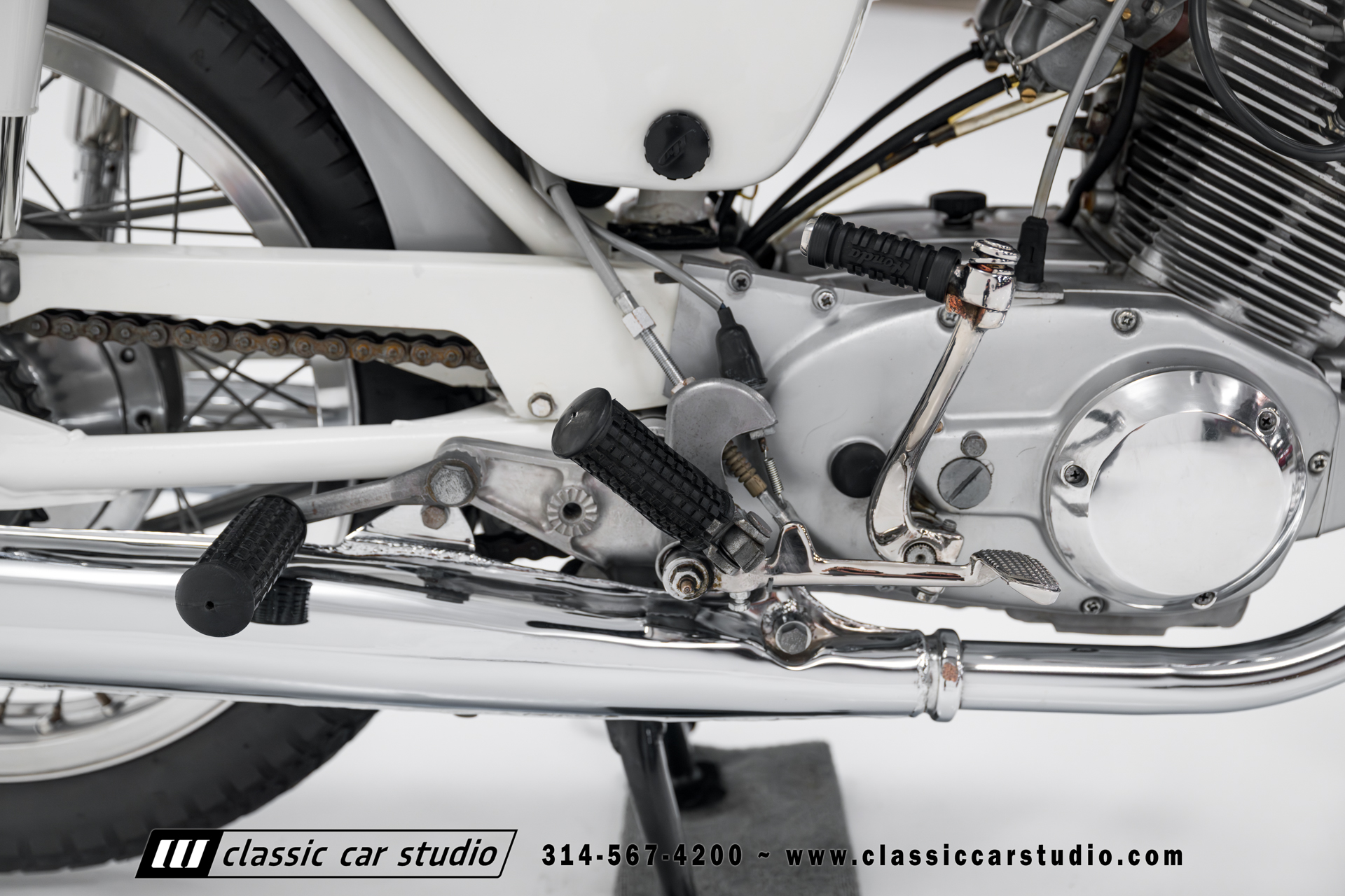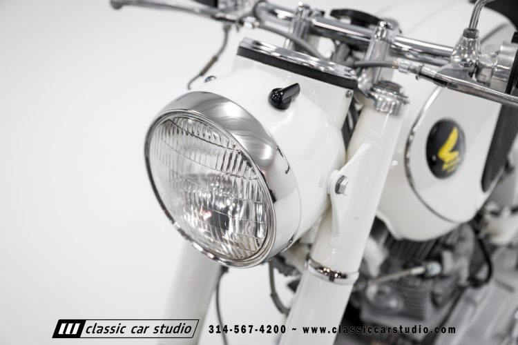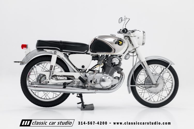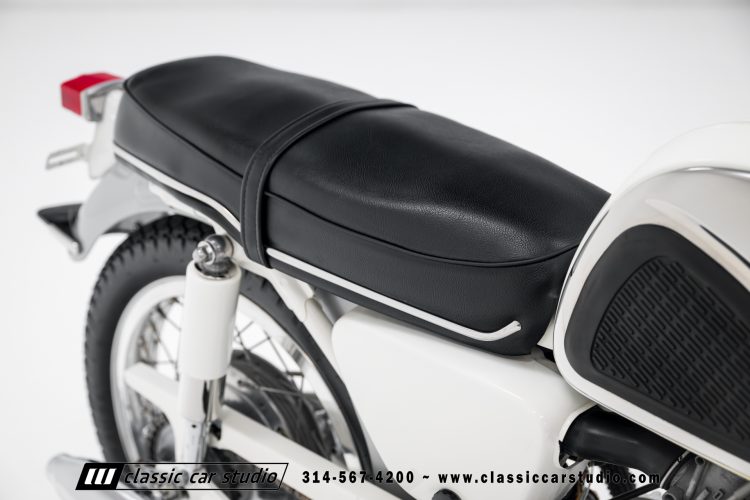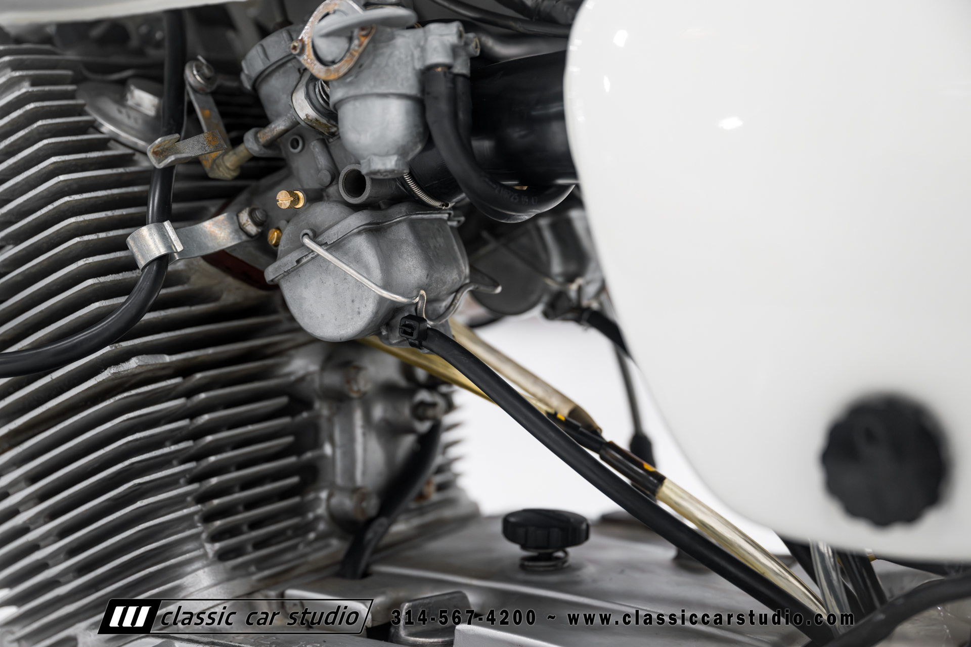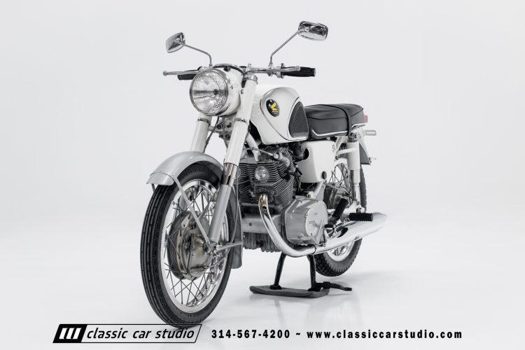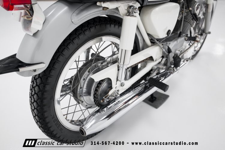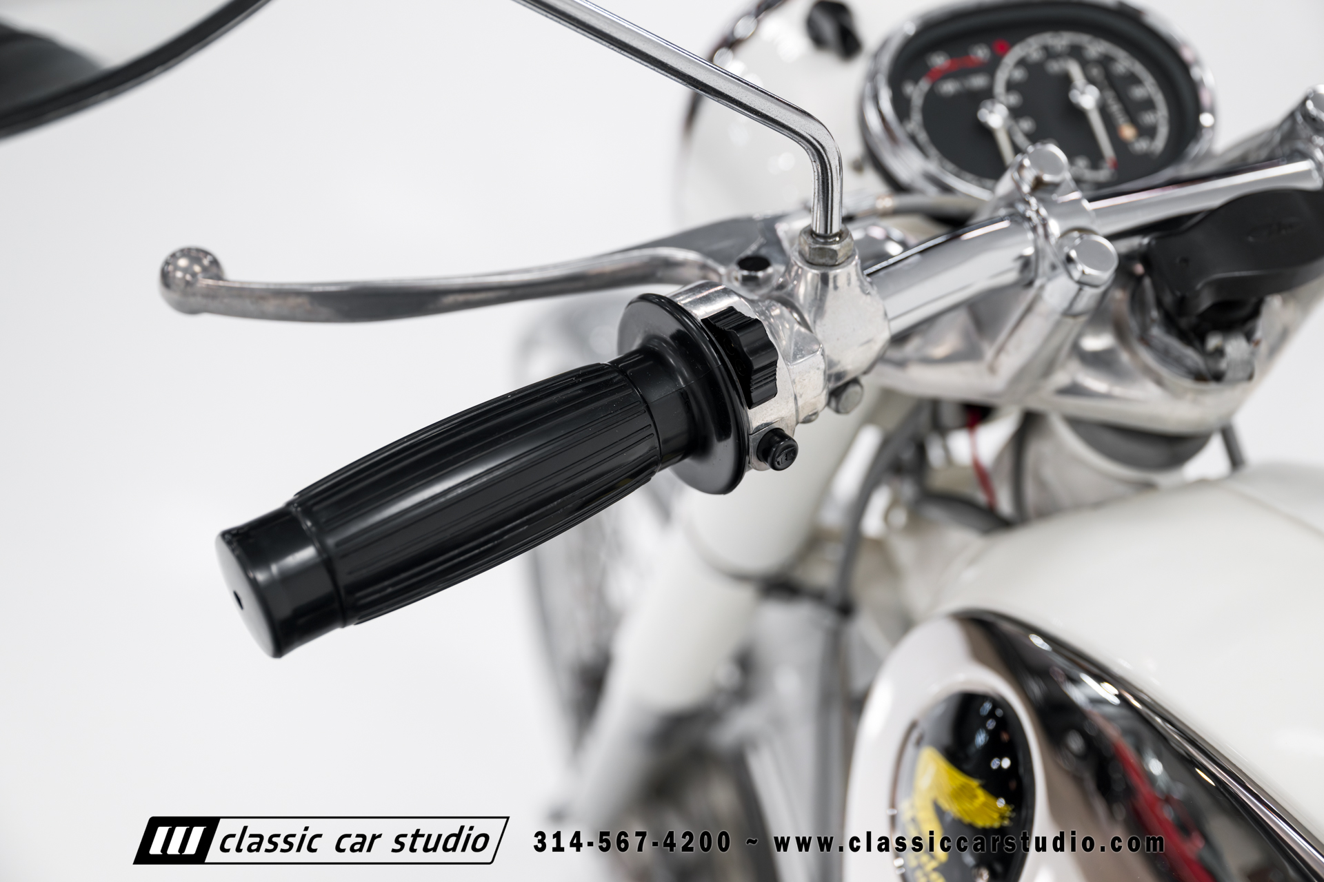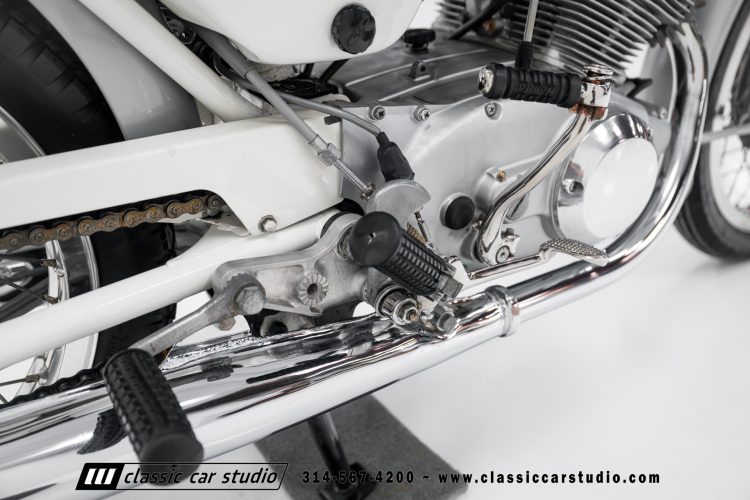 This 1966 Honda CB77 Super Hawk was the subject of a 2013 refurbishment that included repainting the chassis and bodywork in white, resealing the 305cc SOHC parallel twin, and re-plating the brightwork along with reupholstering the two-up seat, overhauling the brakes and suspension, and replacing the wiring, hoses, and mufflers. Additional equipment includes a four-speed transmission, 18″ alloy rims, drum brakes, and both electric and kick starters as well as electronic ignition, a dual exhaust system, a center stand, and front and rear lighting. The selling dealer acquired the bike in 2023 and reports an oil change and carburetor tune in preparation for the sale. This CB77 Super Hawk is now offered at no reserve in Missouri with records and a clean North Carolina title.