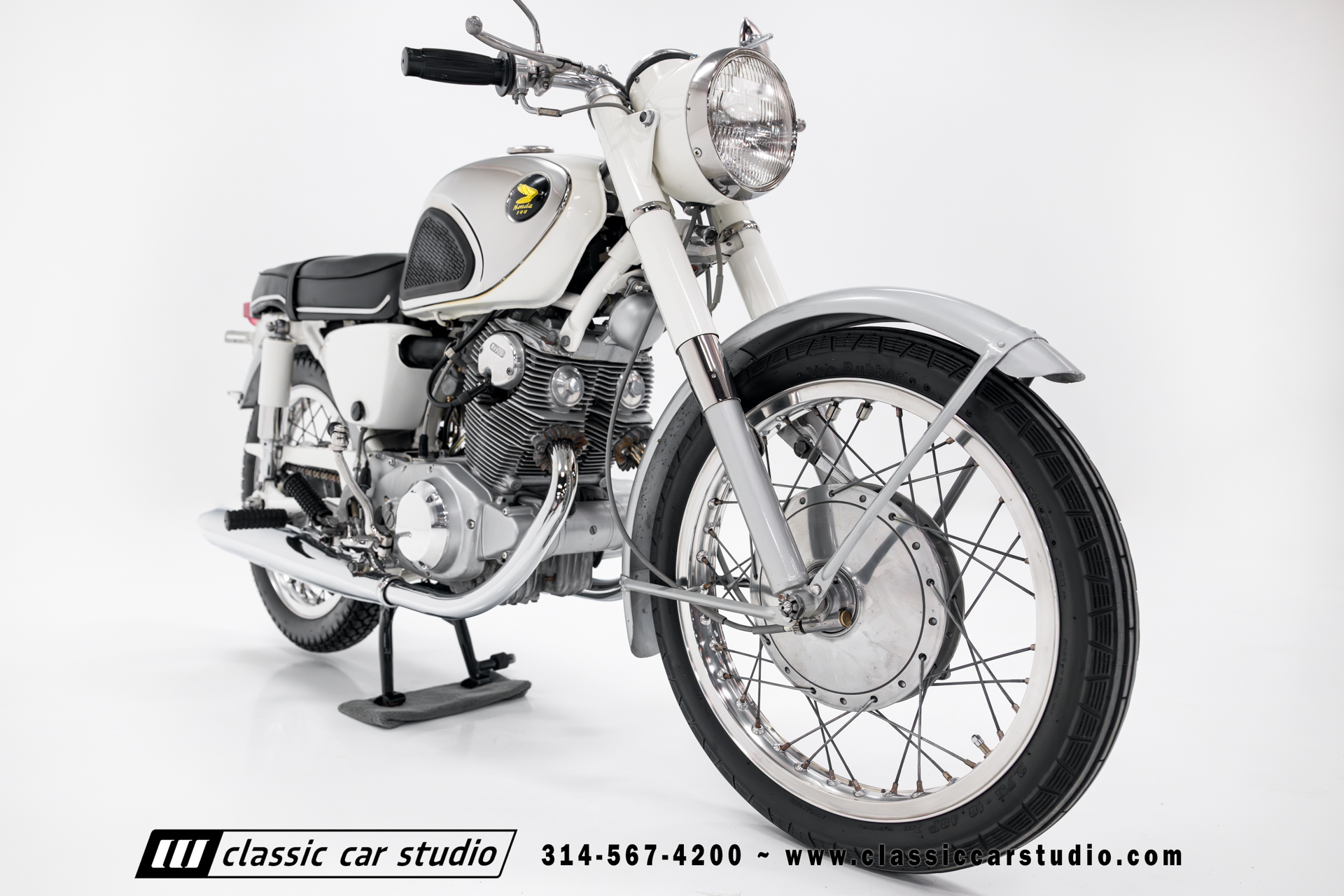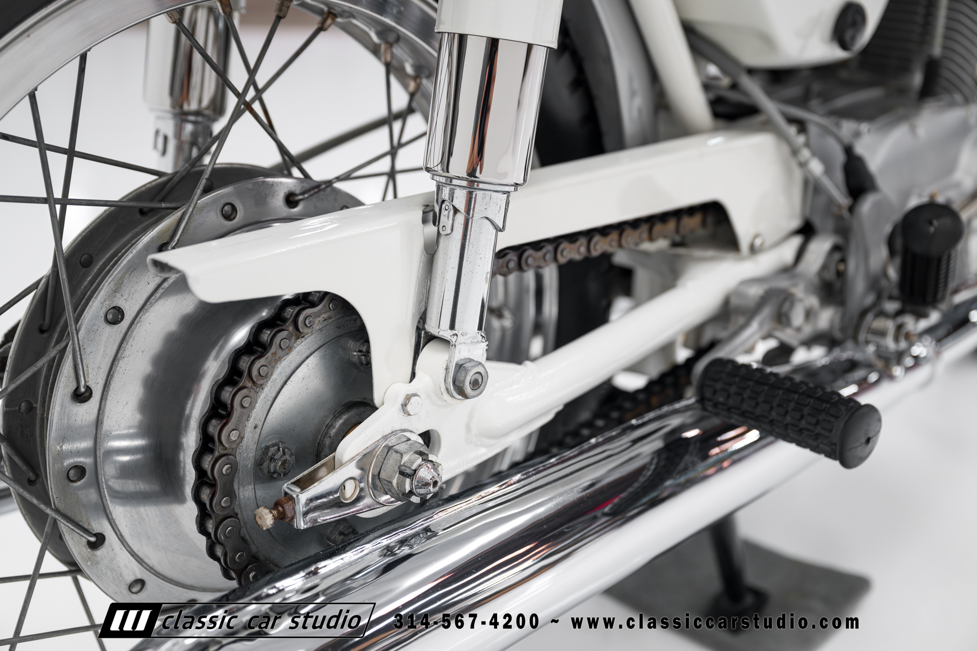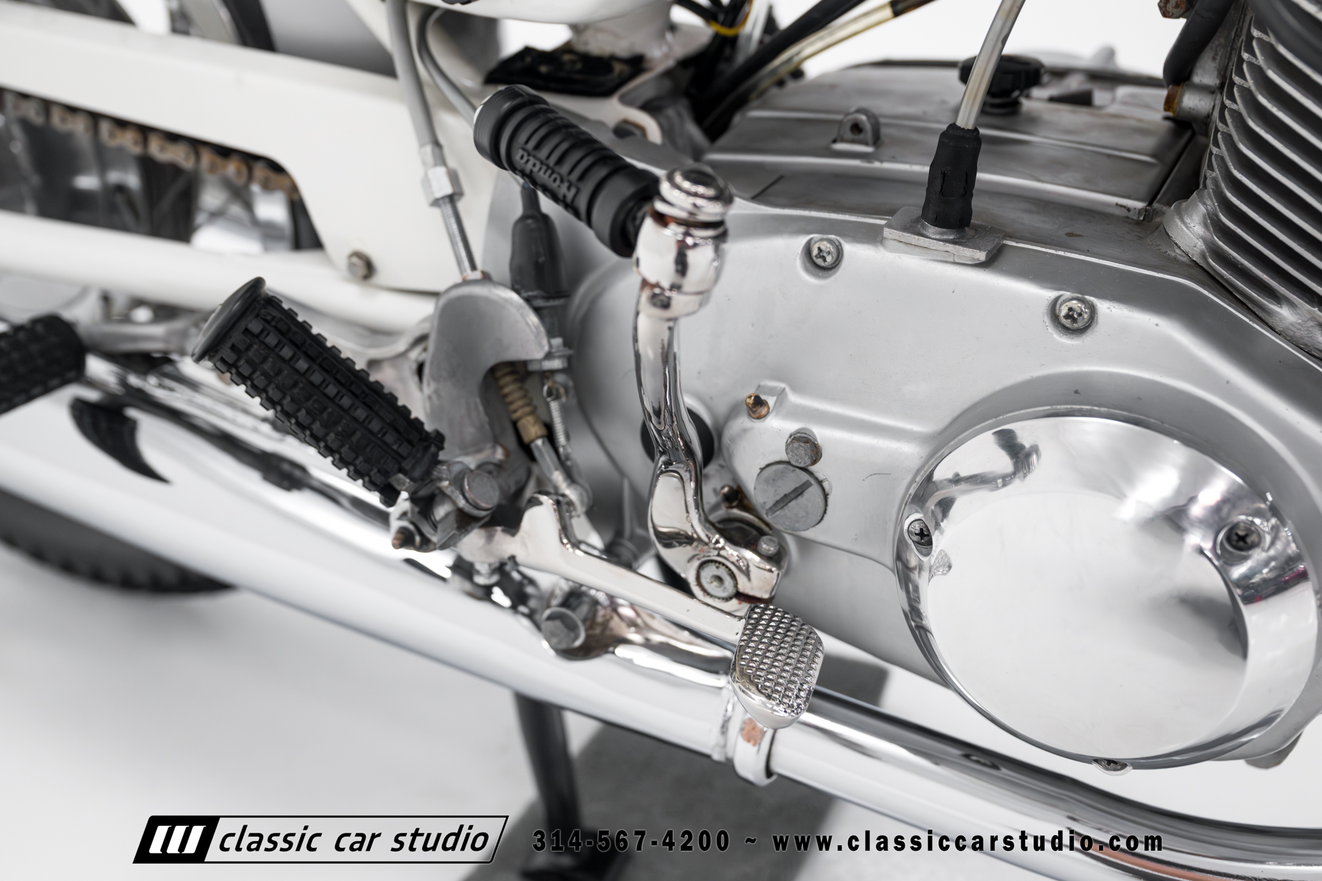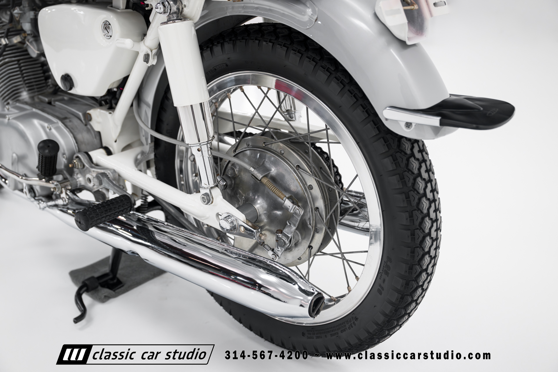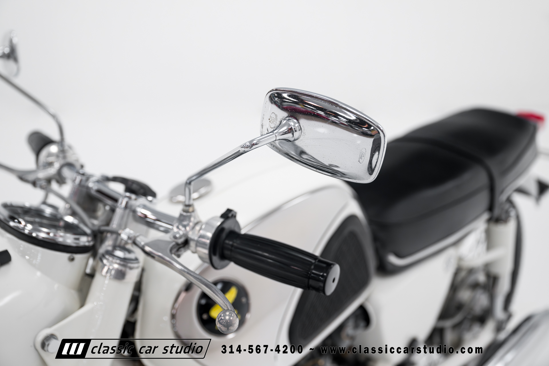 This 1966 Honda CB77 Super Hawk was the subject of a 2013 refurbishment that included repainting the chassis and bodywork in white, resealing the 305cc SOHC parallel twin, and re-plating the brightwork along with reupholstering the two-up seat, overhauling the brakes and suspension, and replacing the wiring, hoses, and mufflers. Additional equipment includes a four-speed transmission, 18″ alloy rims, drum brakes, and both electric and kick starters as well as electronic ignition, a dual exhaust system, a center stand, and front and rear lighting. The selling dealer acquired the bike in 2023 and reports an oil change and carburetor tune in preparation for the sale. This CB77 Super Hawk is now offered at no reserve in Missouri with records and a clean North Carolina title.
