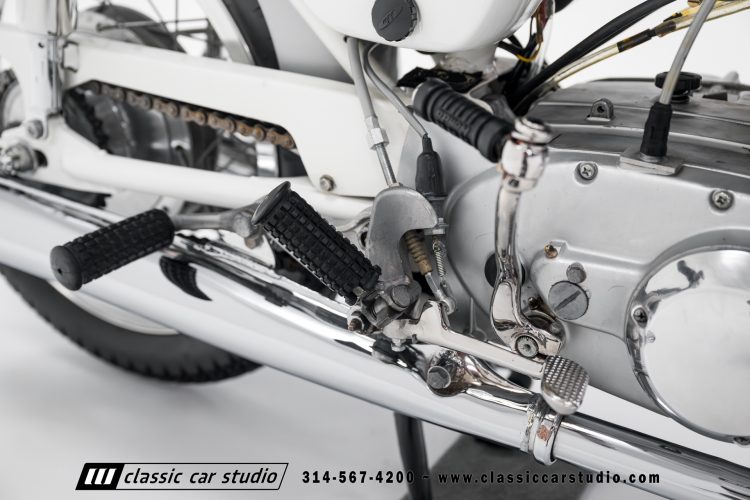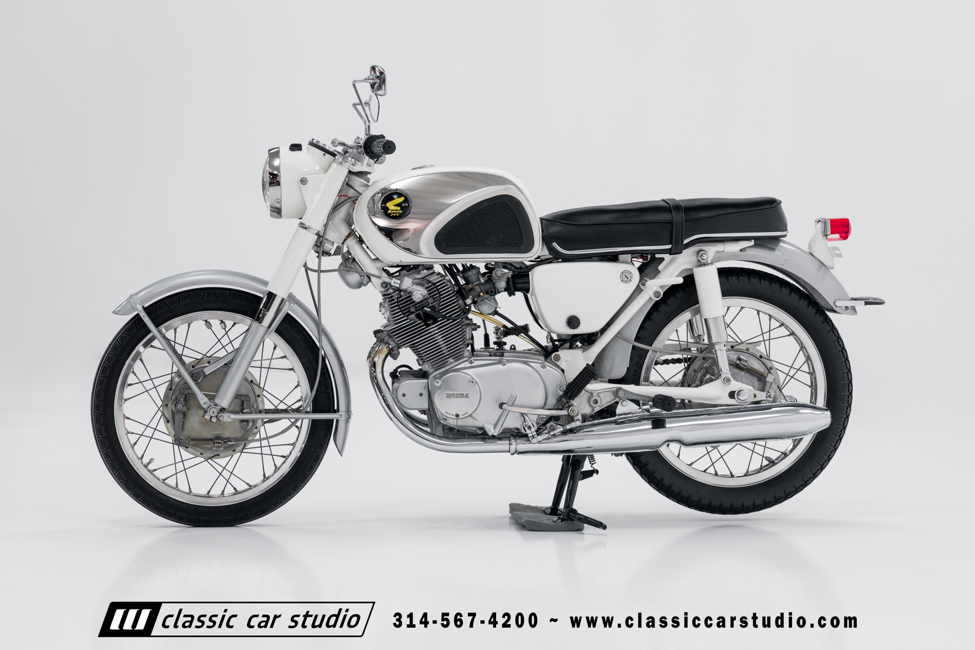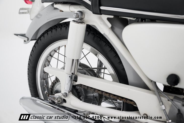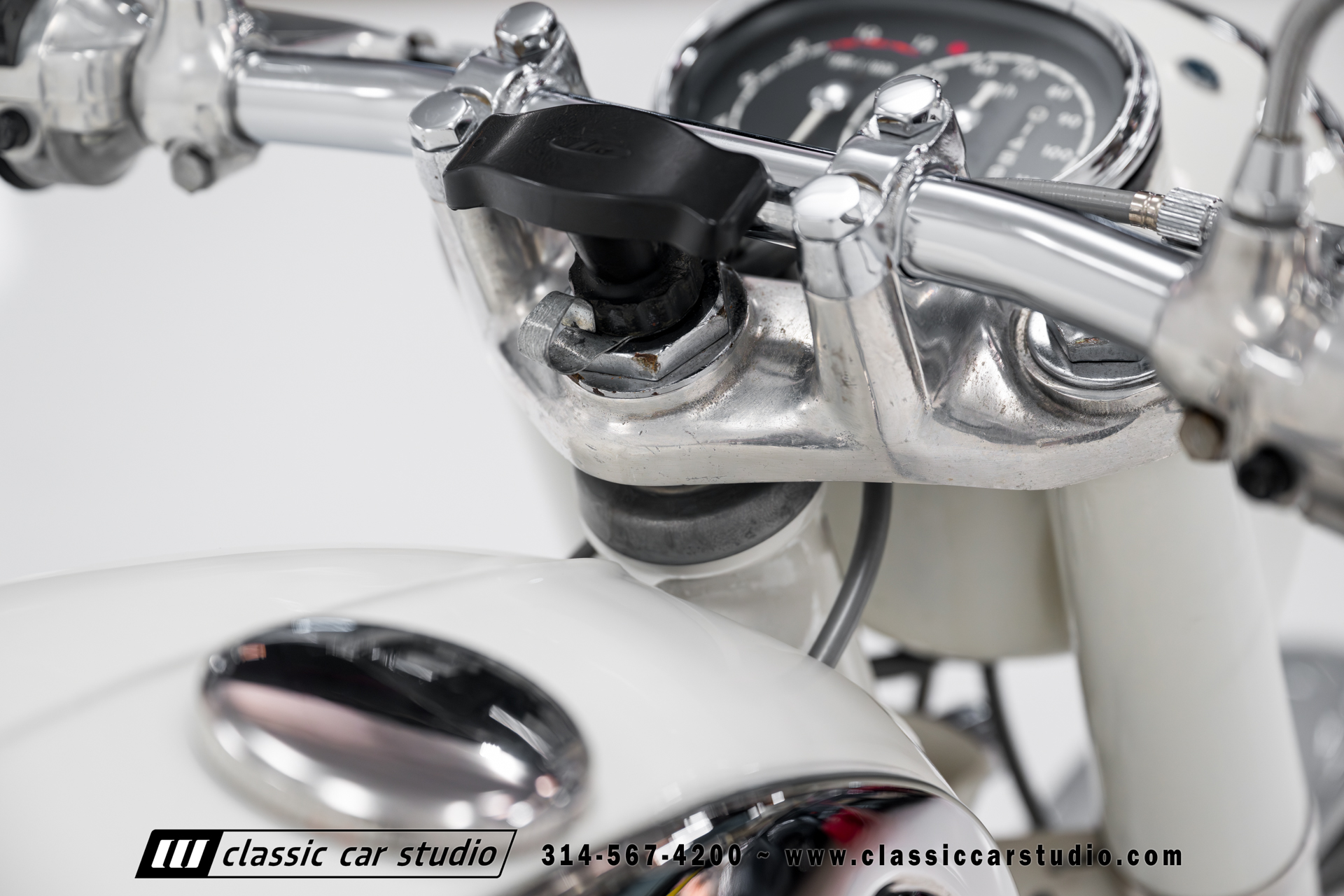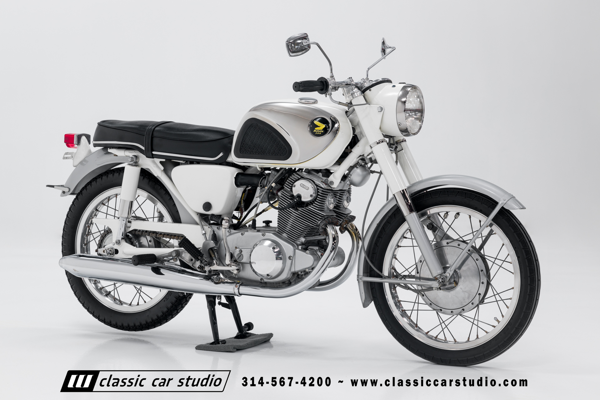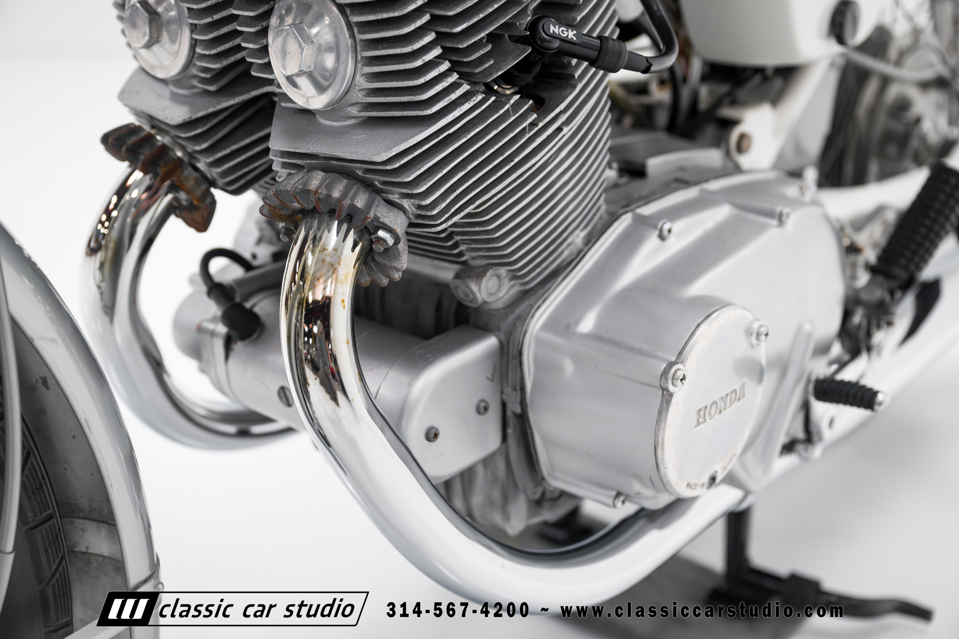 This 1966 Honda CB77 Super Hawk was the subject of a 2013 refurbishment that included repainting the chassis and bodywork in white, resealing the 305cc SOHC parallel twin, and re-plating the brightwork along with reupholstering the two-up seat, overhauling the brakes and suspension, and replacing the wiring, hoses, and mufflers. Additional equipment includes a four-speed transmission, 18″ alloy rims, drum brakes, and both electric and kick starters as well as electronic ignition, a dual exhaust system, a center stand, and front and rear lighting. The selling dealer acquired the bike in 2023 and reports an oil change and carburetor tune in preparation for the sale. This CB77 Super Hawk is now offered at no reserve in Missouri with records and a clean North Carolina title.