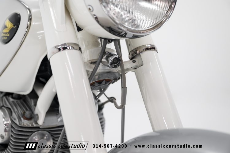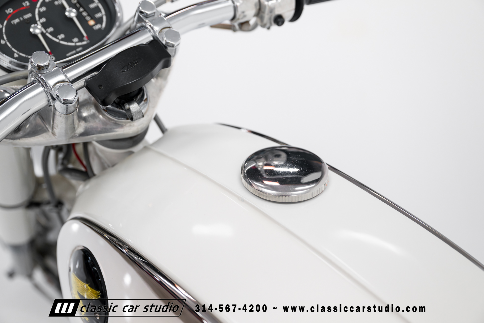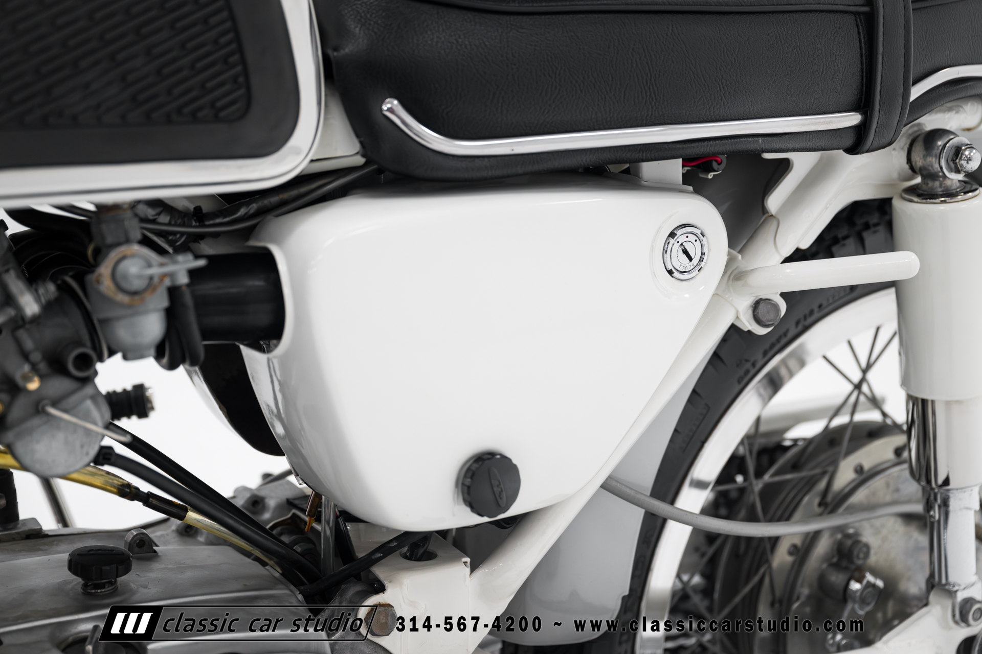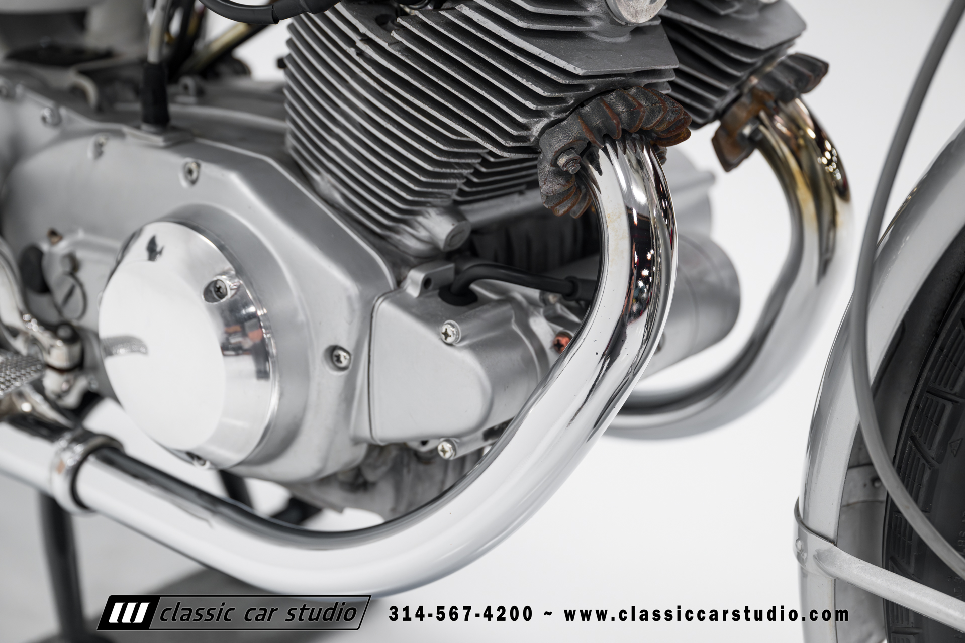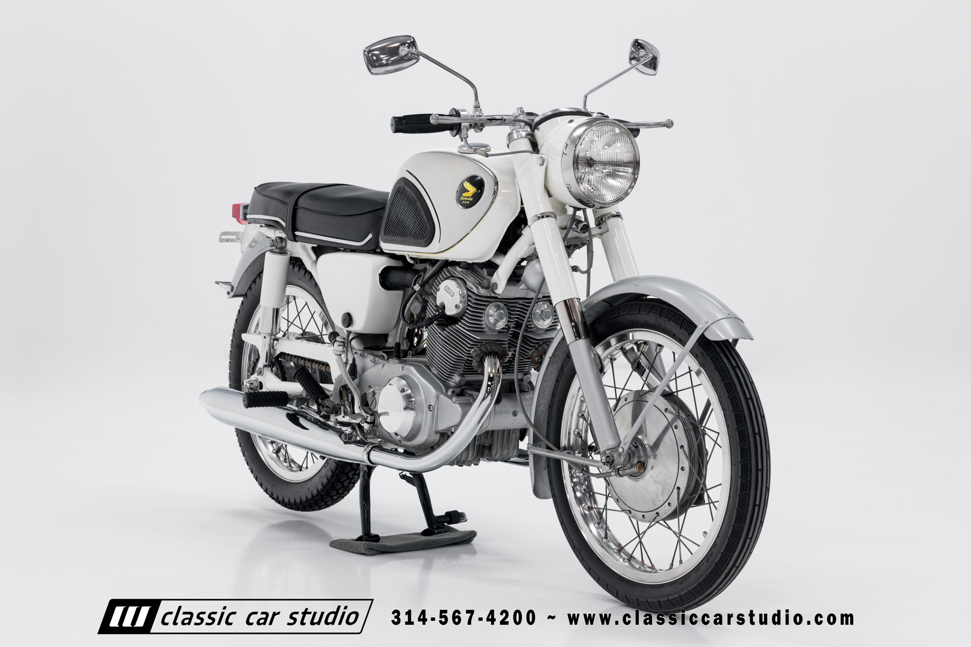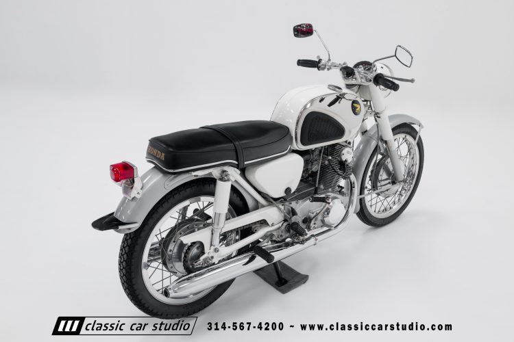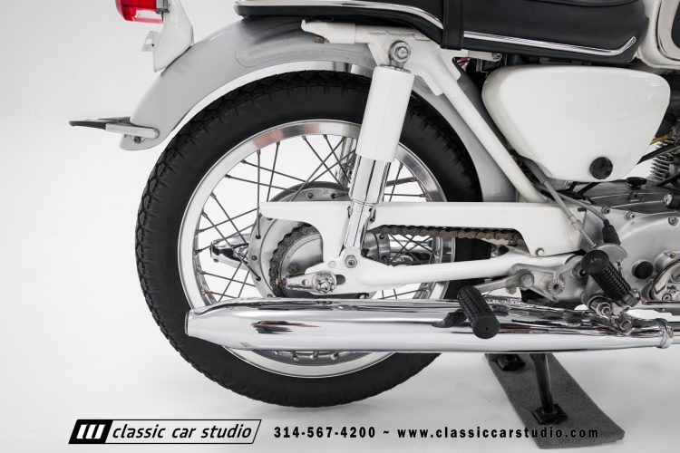 This 1966 Honda CB77 Super Hawk was the subject of a 2013 refurbishment that included repainting the chassis and bodywork in white, resealing the 305cc SOHC parallel twin, and re-plating the brightwork along with reupholstering the two-up seat, overhauling the brakes and suspension, and replacing the wiring, hoses, and mufflers. Additional equipment includes a four-speed transmission, 18″ alloy rims, drum brakes, and both electric and kick starters as well as electronic ignition, a dual exhaust system, a center stand, and front and rear lighting. The selling dealer acquired the bike in 2023 and reports an oil change and carburetor tune in preparation for the sale. This CB77 Super Hawk is now offered at no reserve in Missouri with records and a clean North Carolina title.