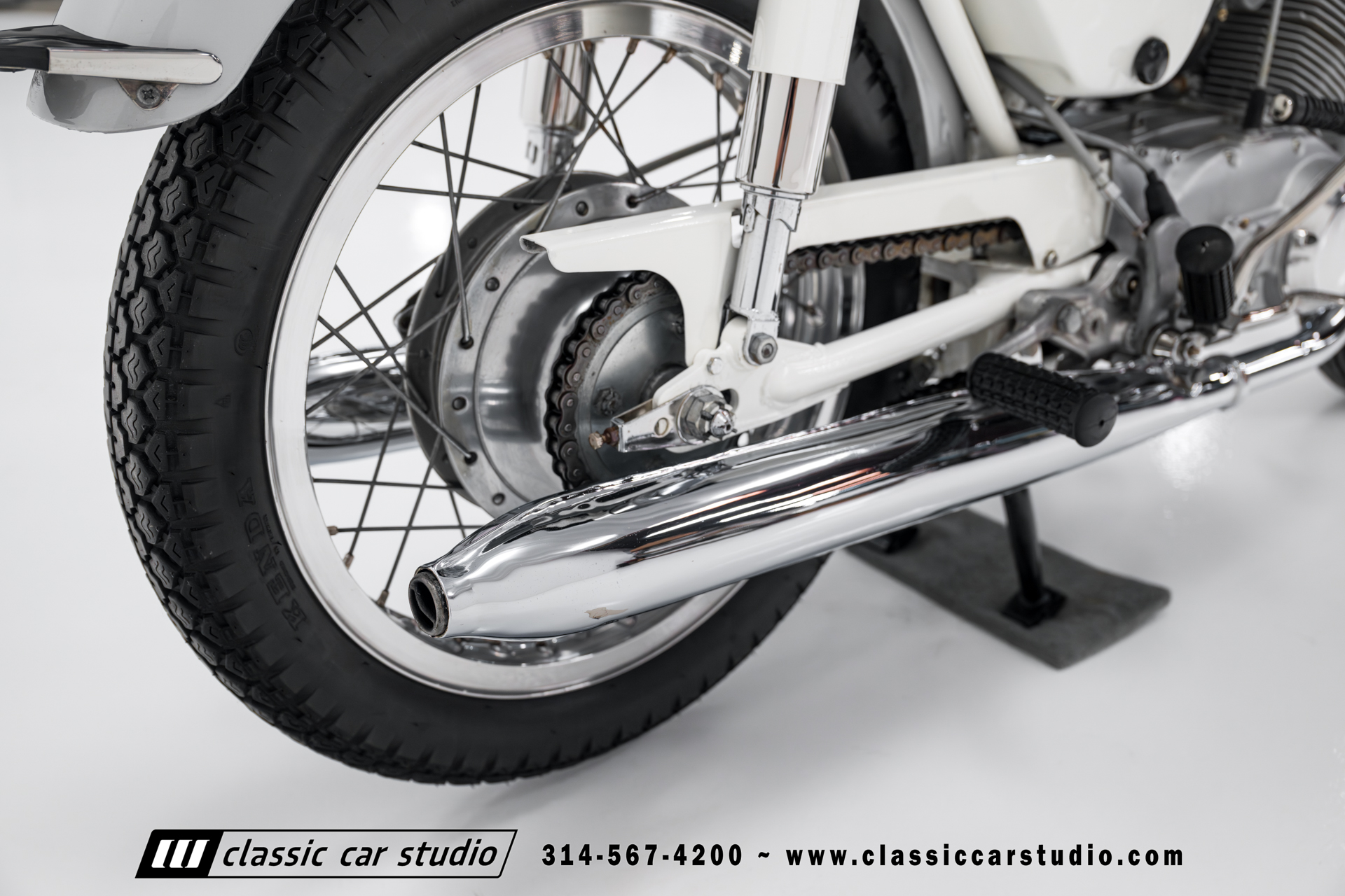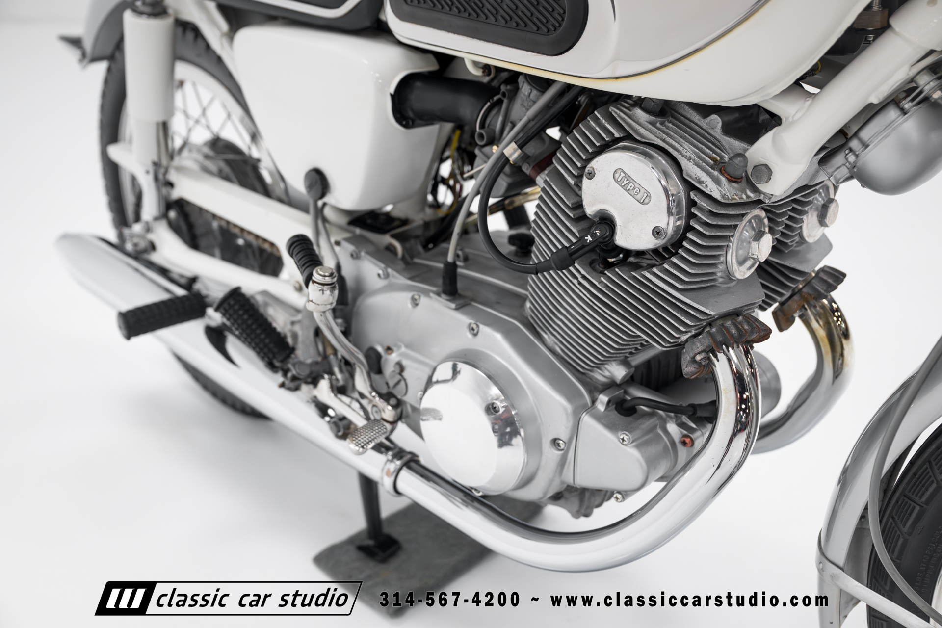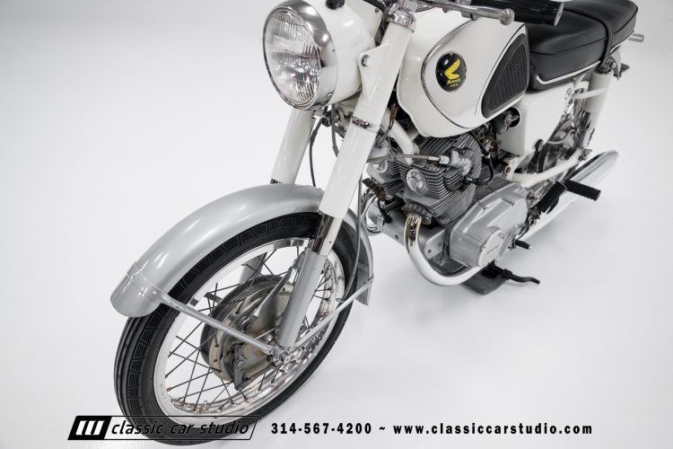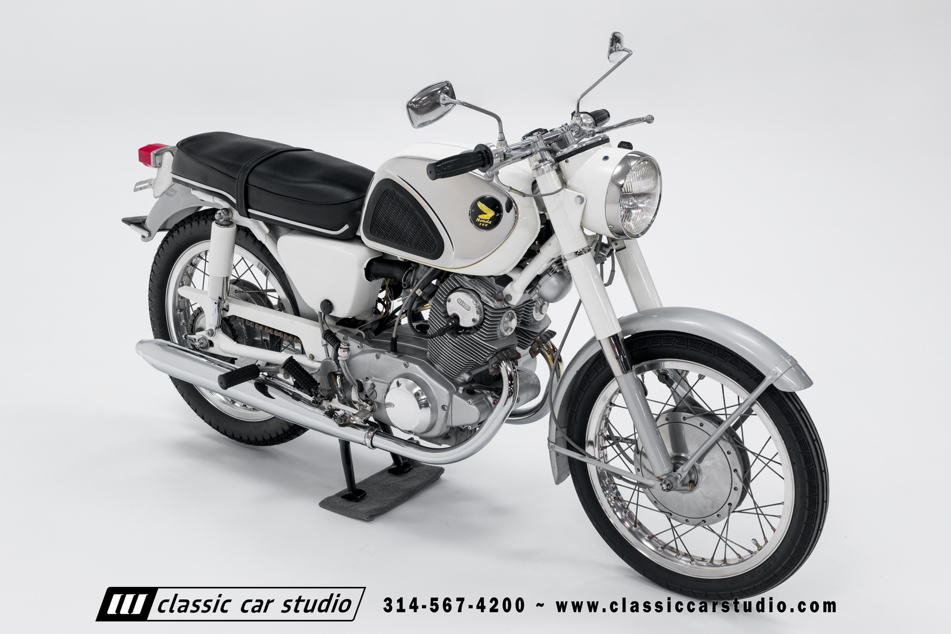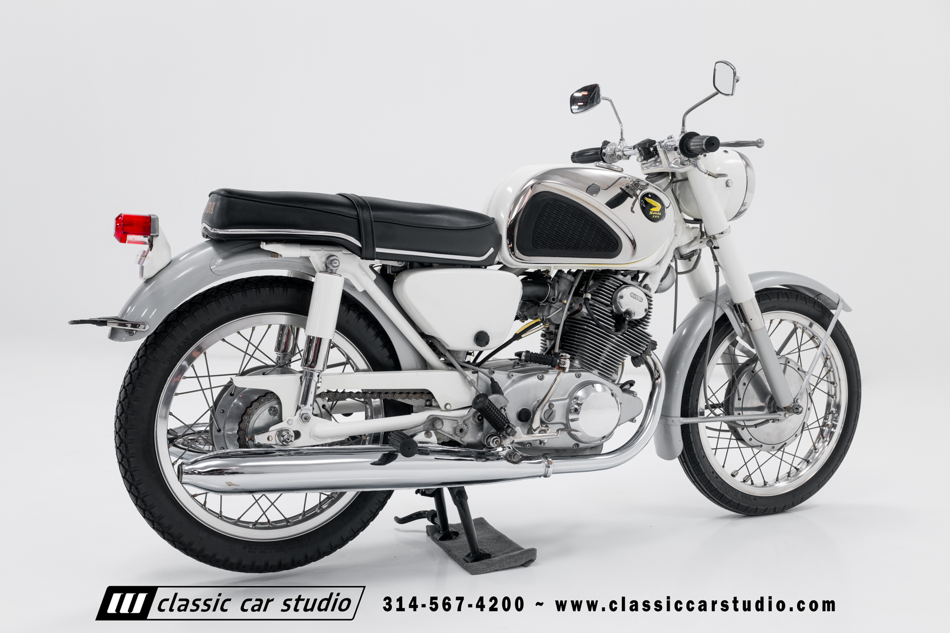 This 1966 Honda CB77 Super Hawk was the subject of a 2013 refurbishment that included repainting the chassis and bodywork in white, resealing the 305cc SOHC parallel twin, and re-plating the brightwork along with reupholstering the two-up seat, overhauling the brakes and suspension, and replacing the wiring, hoses, and mufflers. Additional equipment includes a four-speed transmission, 18″ alloy rims, drum brakes, and both electric and kick starters as well as electronic ignition, a dual exhaust system, a center stand, and front and rear lighting. The selling dealer acquired the bike in 2023 and reports an oil change and carburetor tune in preparation for the sale. This CB77 Super Hawk is now offered at no reserve in Missouri with records and a clean North Carolina title.