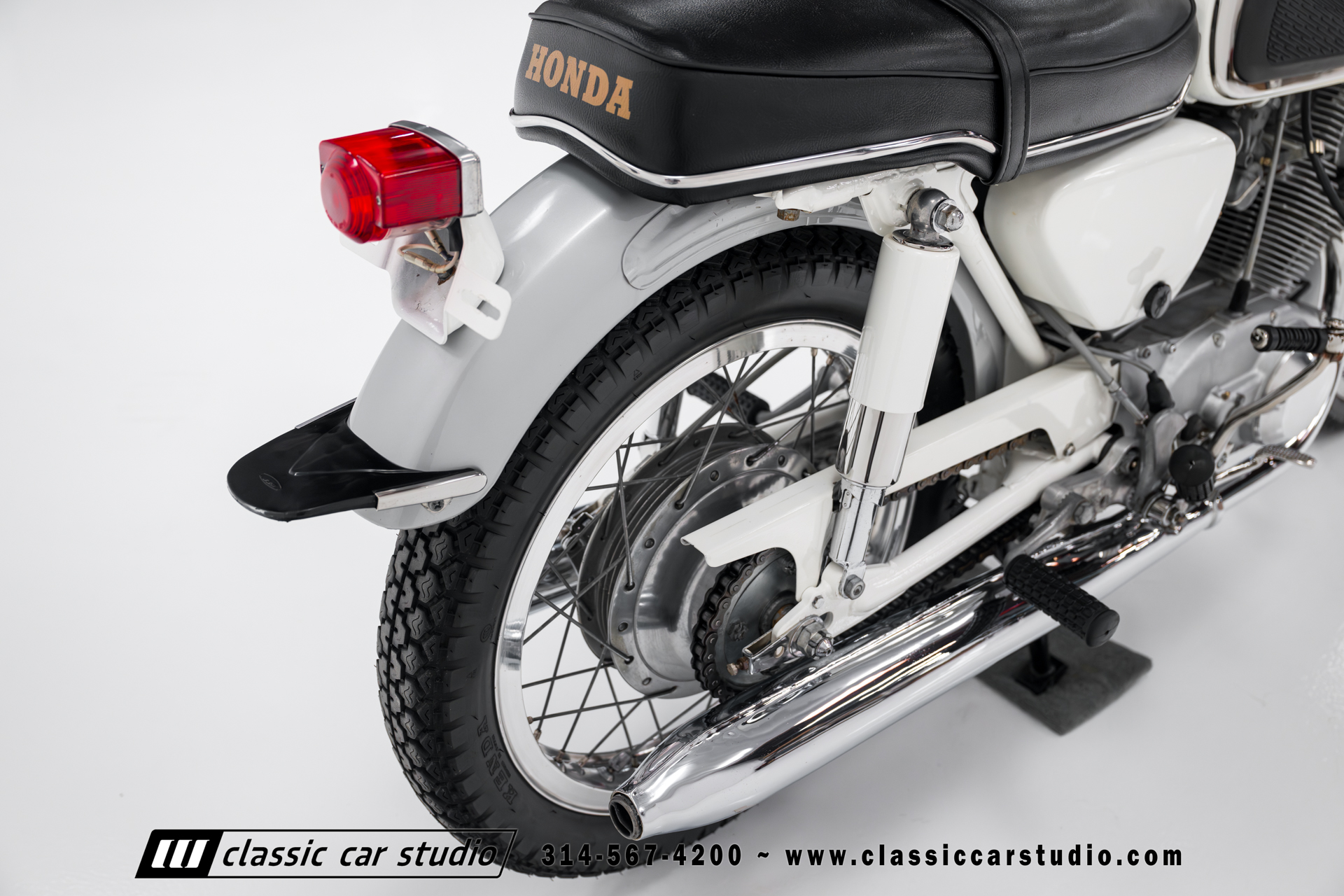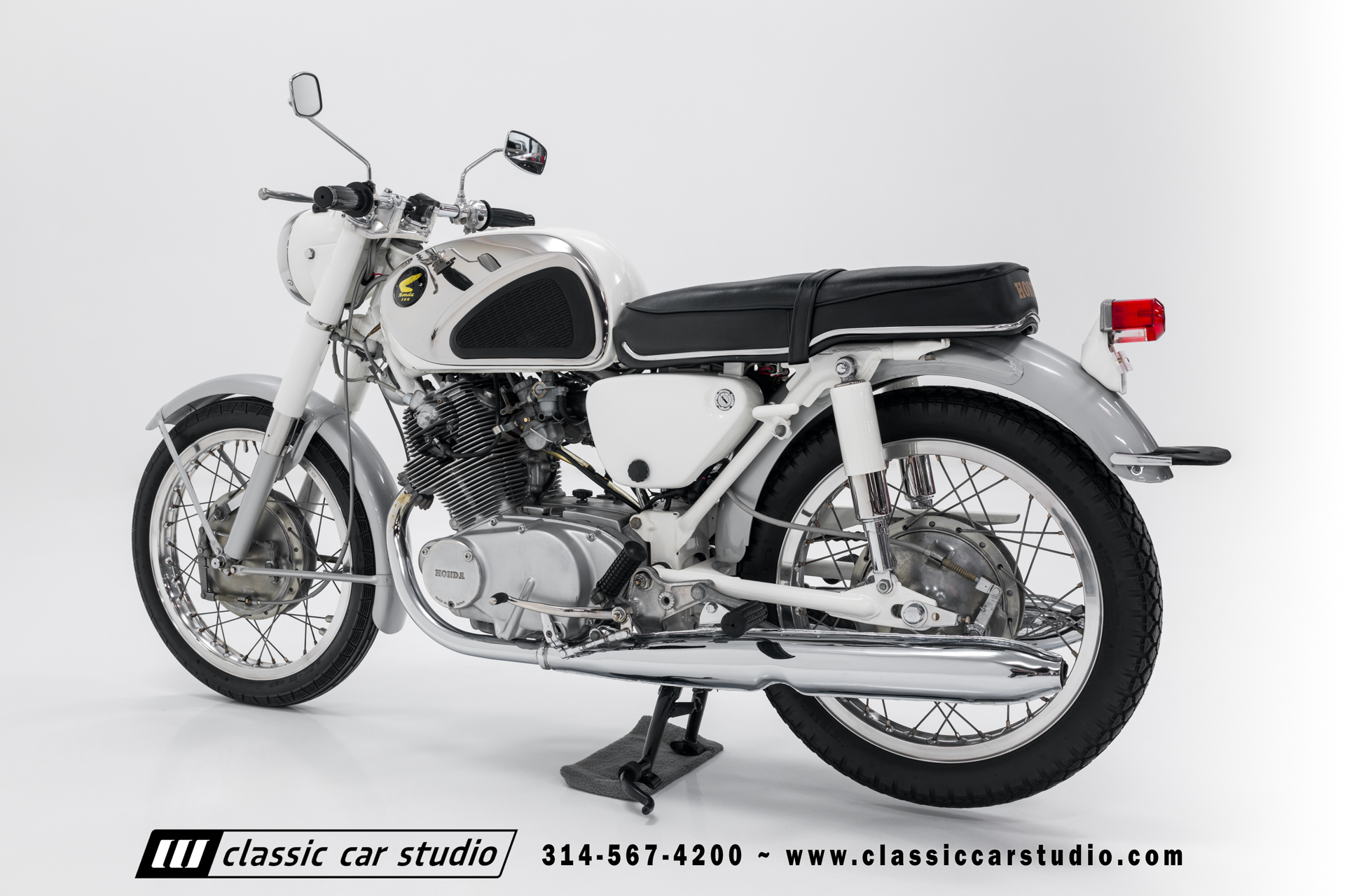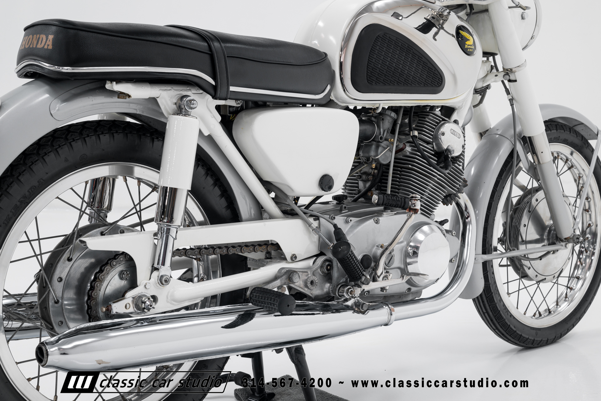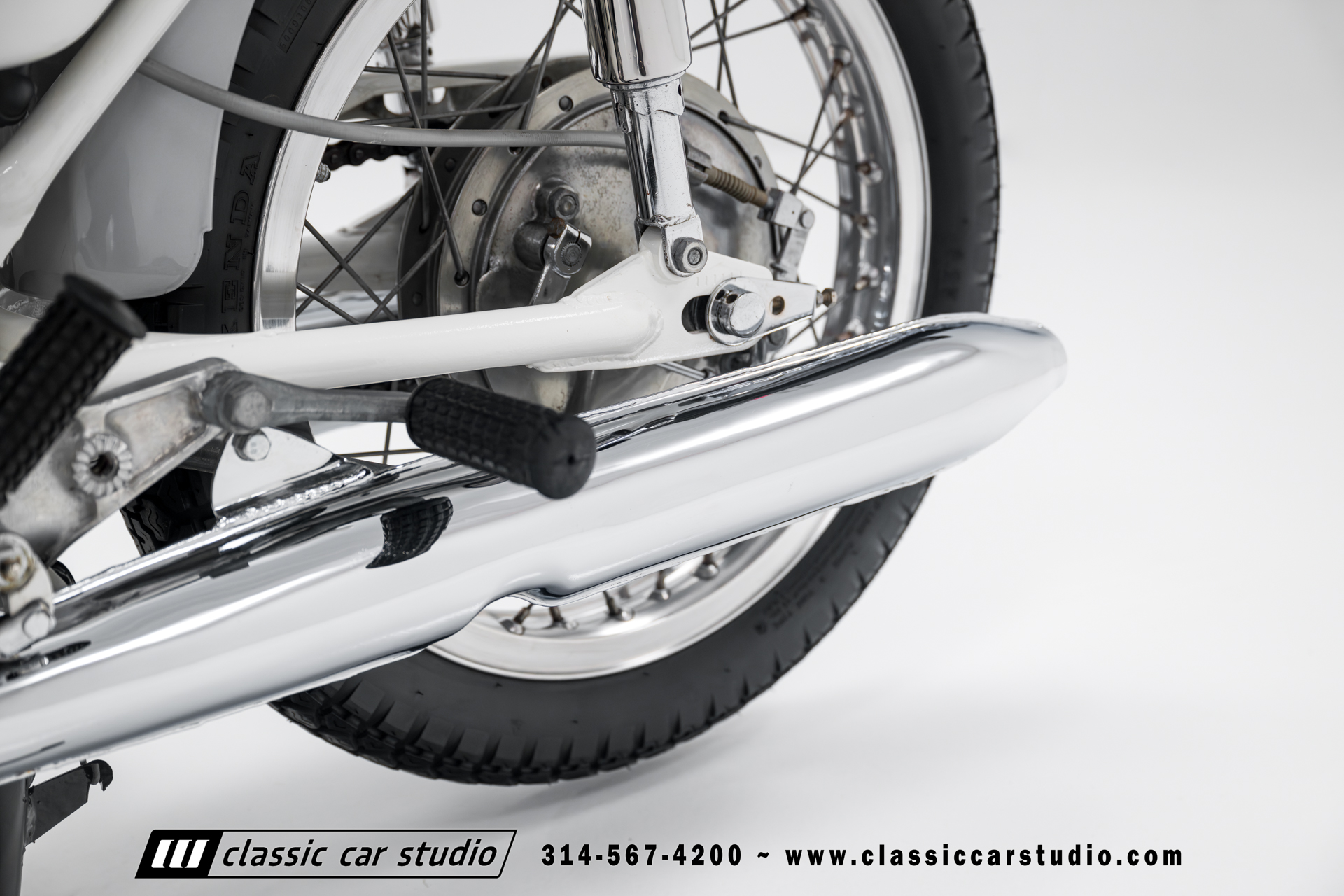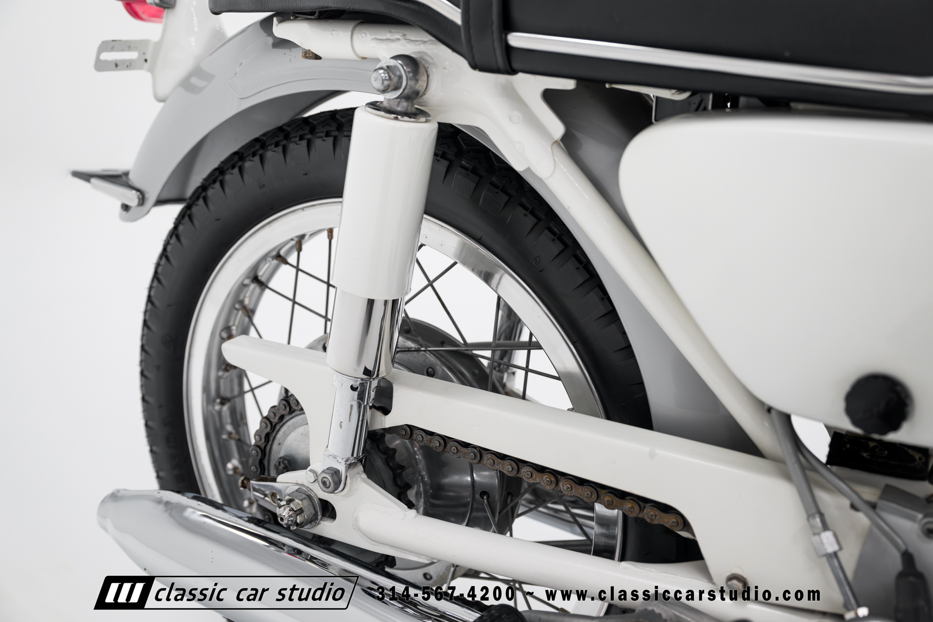 This 1966 Honda CB77 Super Hawk was the subject of a 2013 refurbishment that included repainting the chassis and bodywork in white, resealing the 305cc SOHC parallel twin, and re-plating the brightwork along with reupholstering the two-up seat, overhauling the brakes and suspension, and replacing the wiring, hoses, and mufflers. Additional equipment includes a four-speed transmission, 18″ alloy rims, drum brakes, and both electric and kick starters as well as electronic ignition, a dual exhaust system, a center stand, and front and rear lighting. The selling dealer acquired the bike in 2023 and reports an oil change and carburetor tune in preparation for the sale. This CB77 Super Hawk is now offered at no reserve in Missouri with records and a clean North Carolina title.