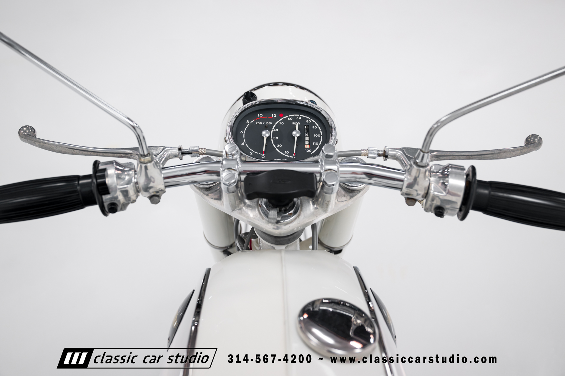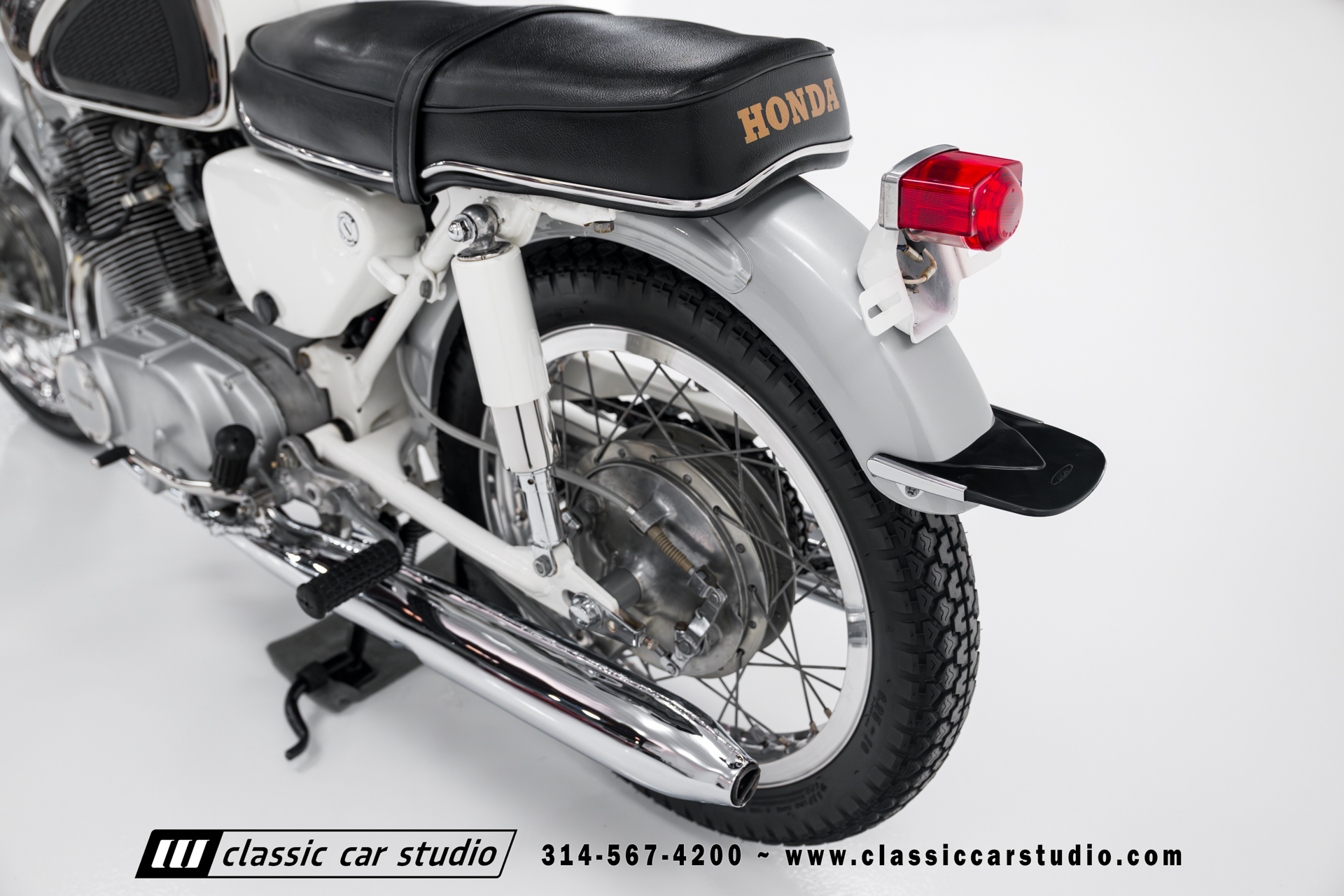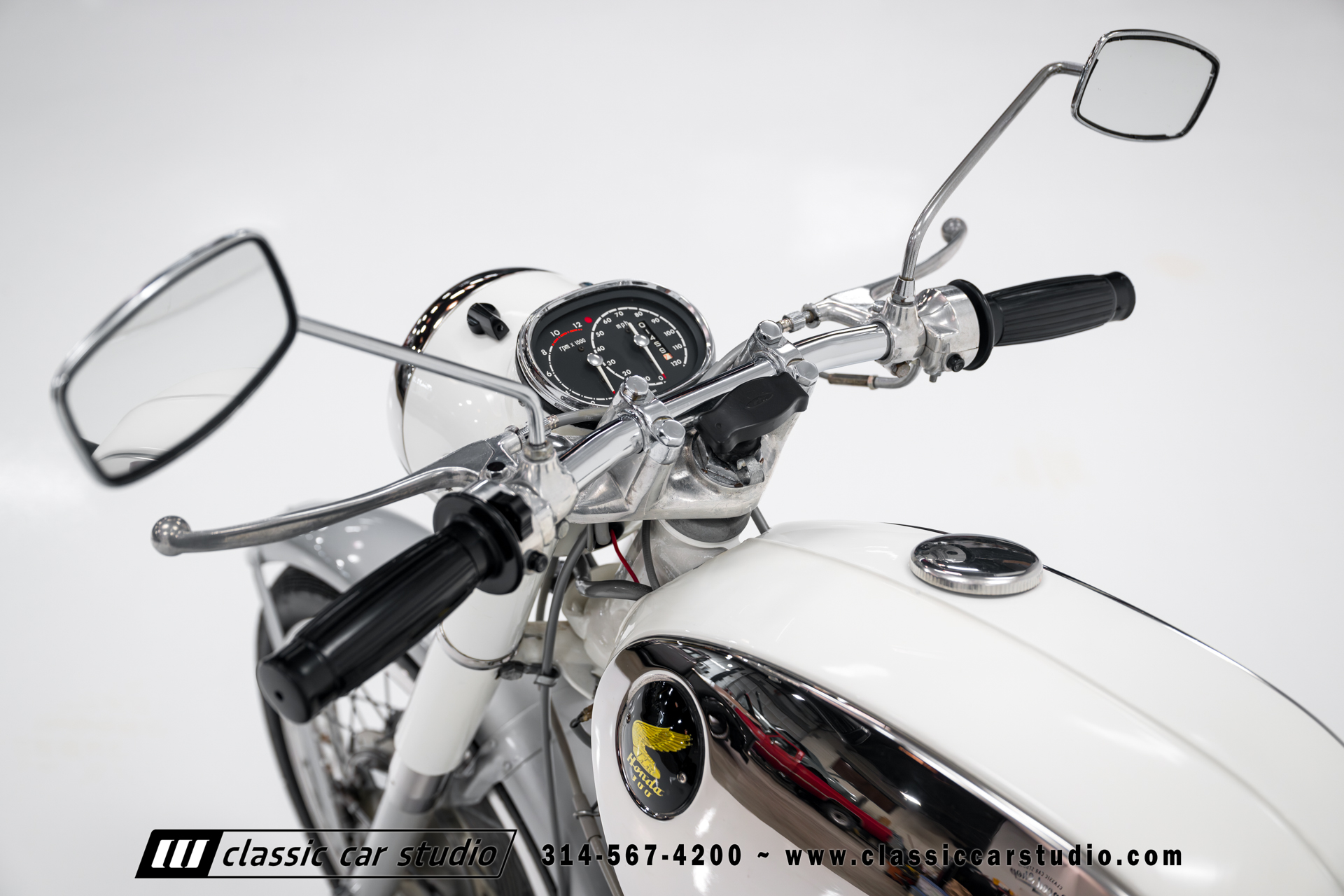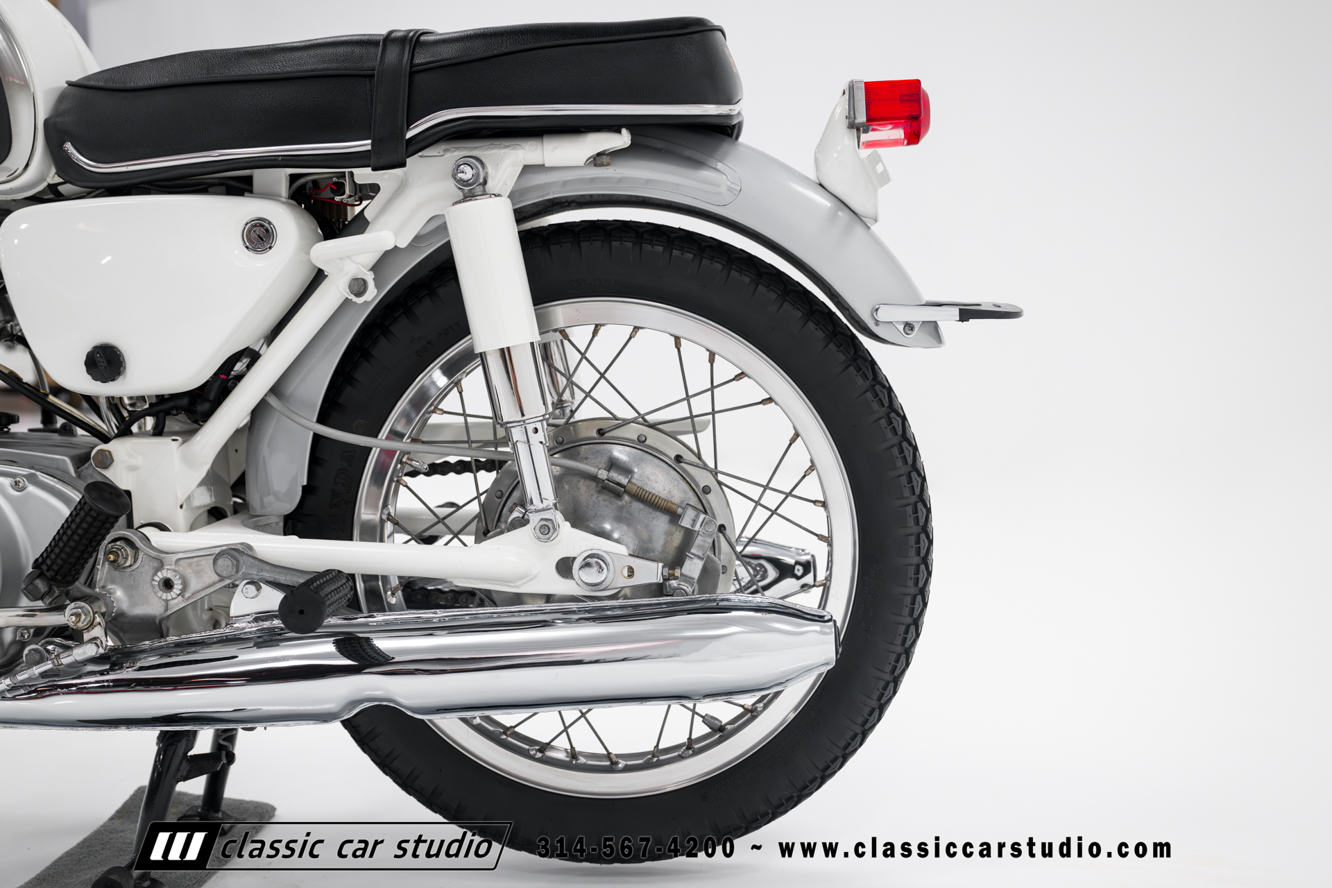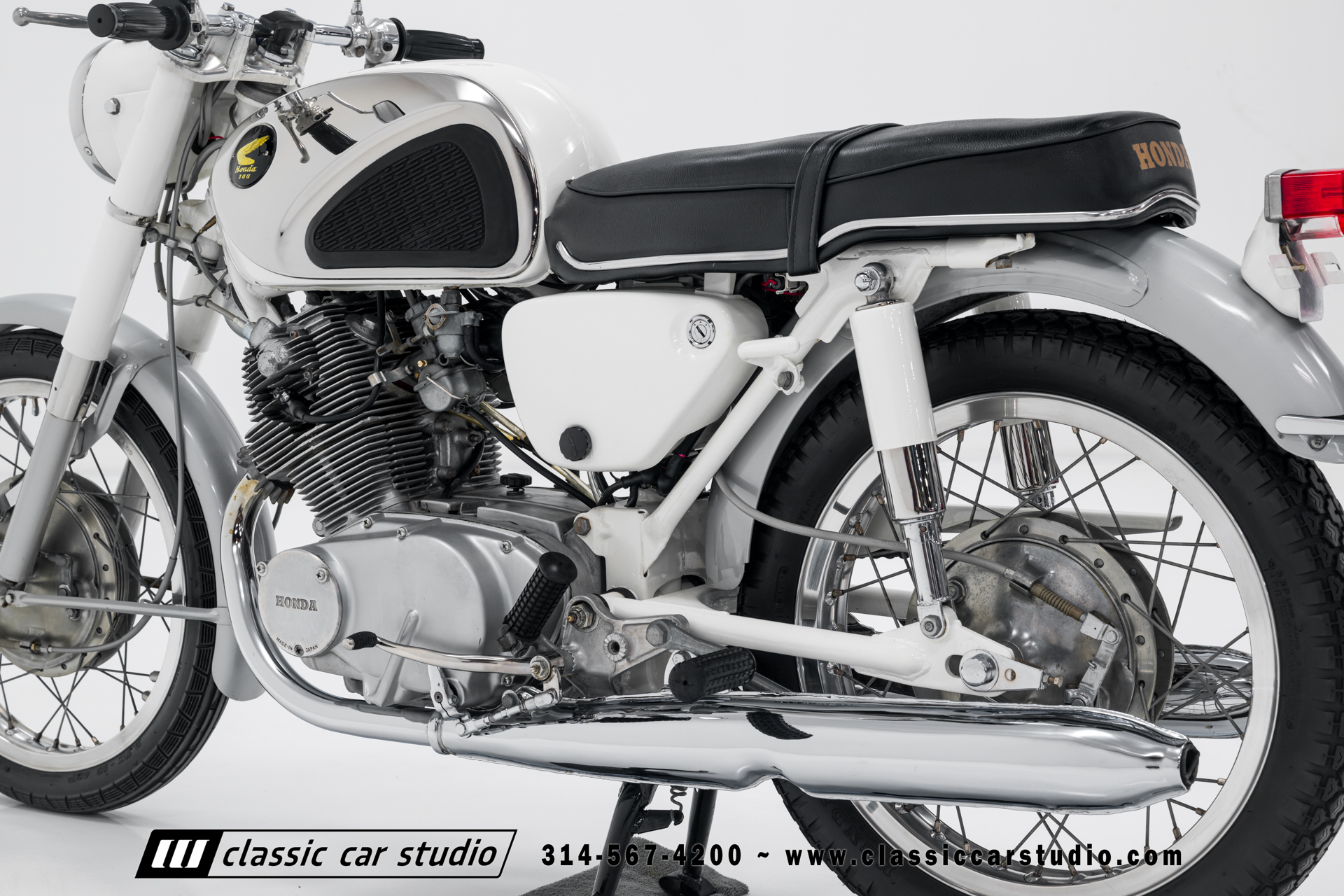 This 1966 Honda CB77 Super Hawk was the subject of a 2013 refurbishment that included repainting the chassis and bodywork in white, resealing the 305cc SOHC parallel twin, and re-plating the brightwork along with reupholstering the two-up seat, overhauling the brakes and suspension, and replacing the wiring, hoses, and mufflers. Additional equipment includes a four-speed transmission, 18″ alloy rims, drum brakes, and both electric and kick starters as well as electronic ignition, a dual exhaust system, a center stand, and front and rear lighting. The selling dealer acquired the bike in 2023 and reports an oil change and carburetor tune in preparation for the sale. This CB77 Super Hawk is now offered at no reserve in Missouri with records and a clean North Carolina title.
