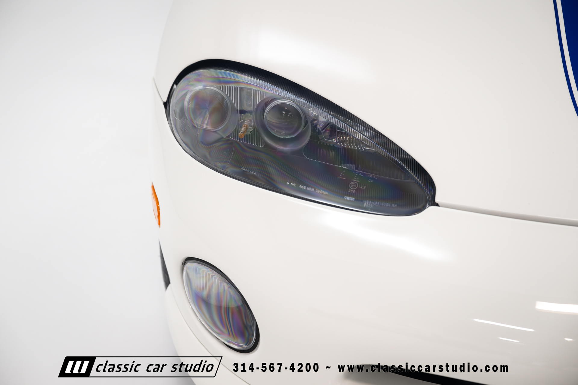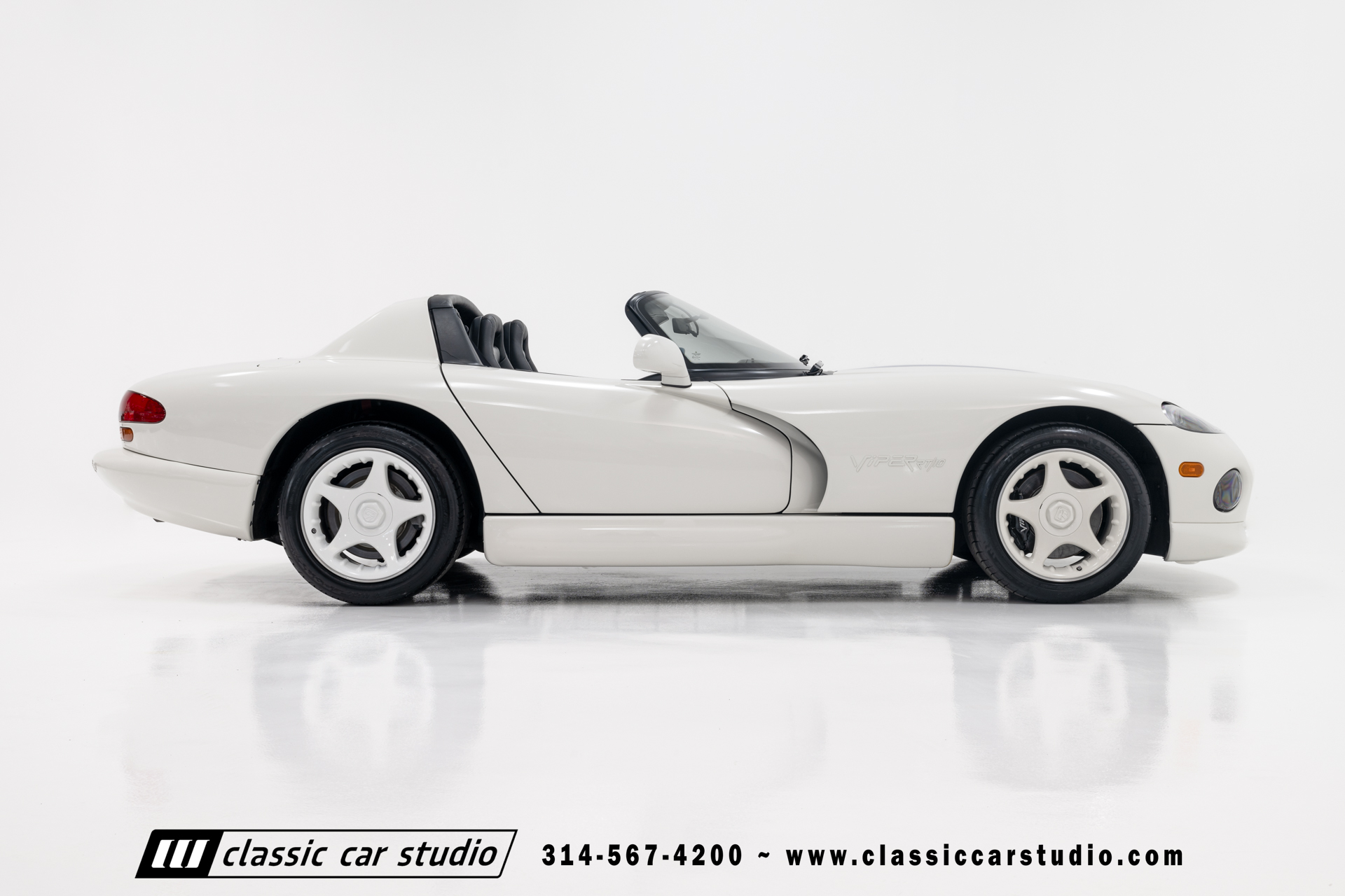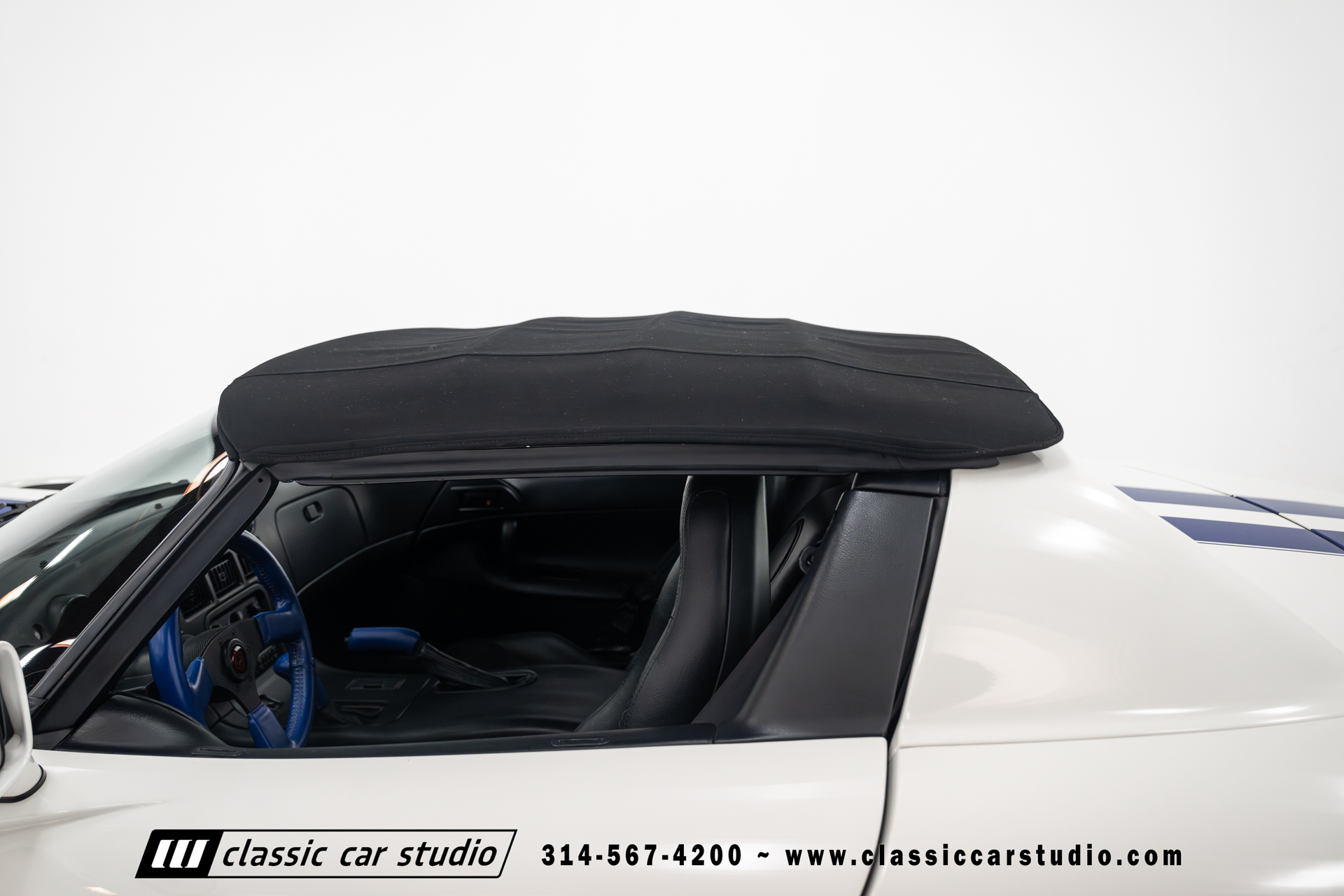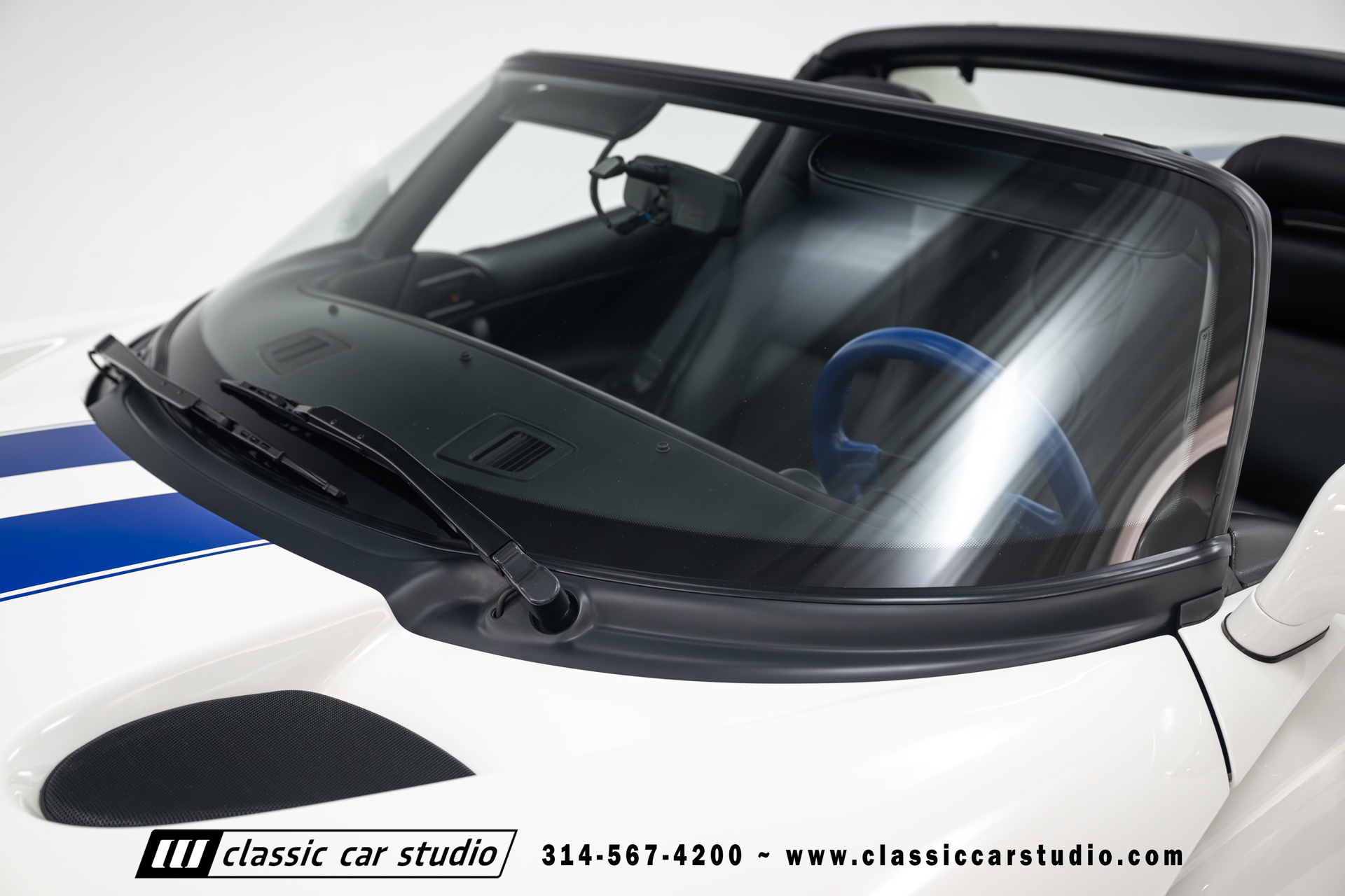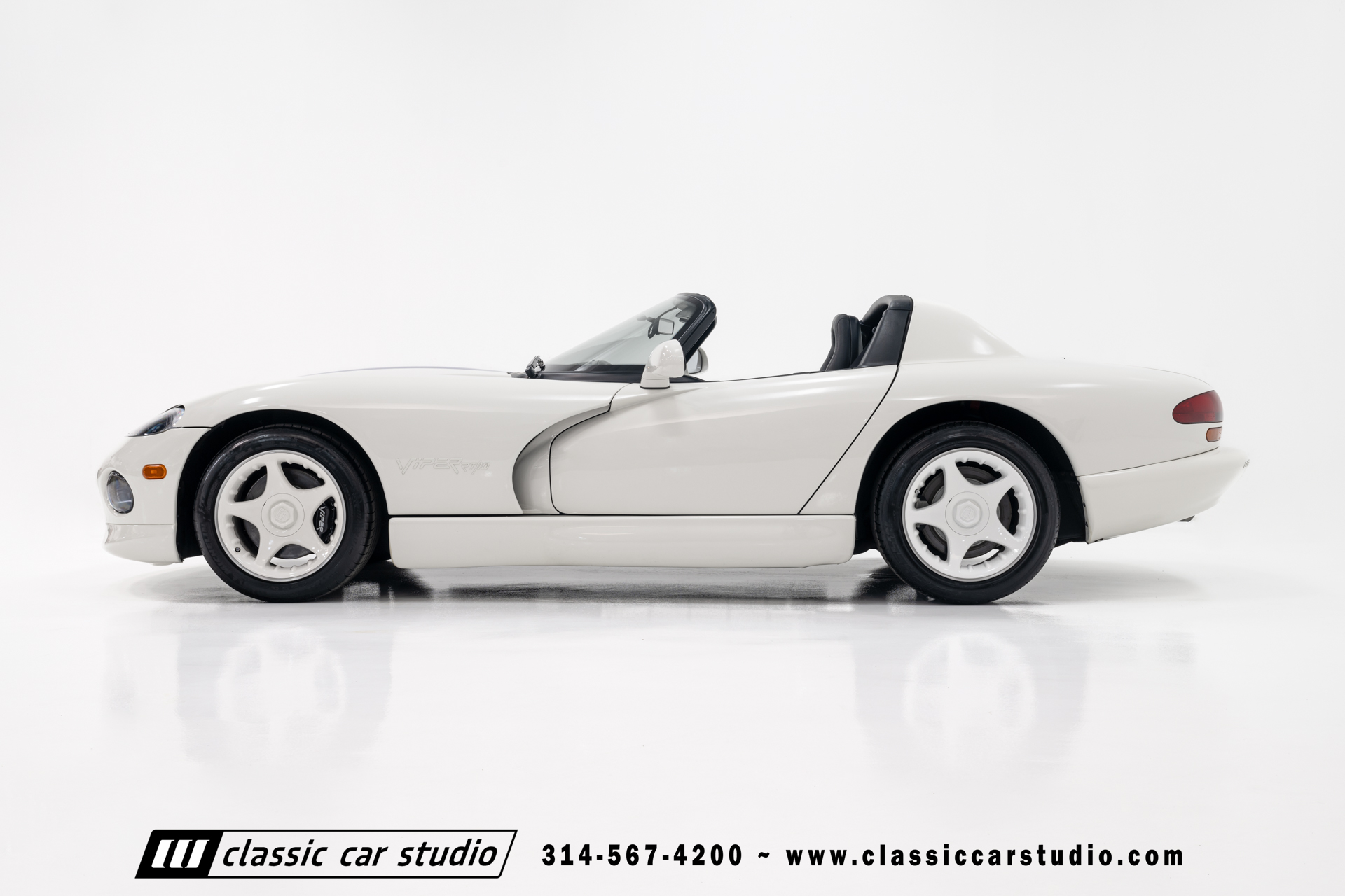 This Viper comes equipped with a host of factory features, including pristine 17-inch wheels in white, a limited-slip differential for superior handling, and a soft top and side windows. The luxurious interior boasts leather upholstery with custom blue accents on the steering wheel, gear shifter, and hand brake, along with sporty white-faced dials.
