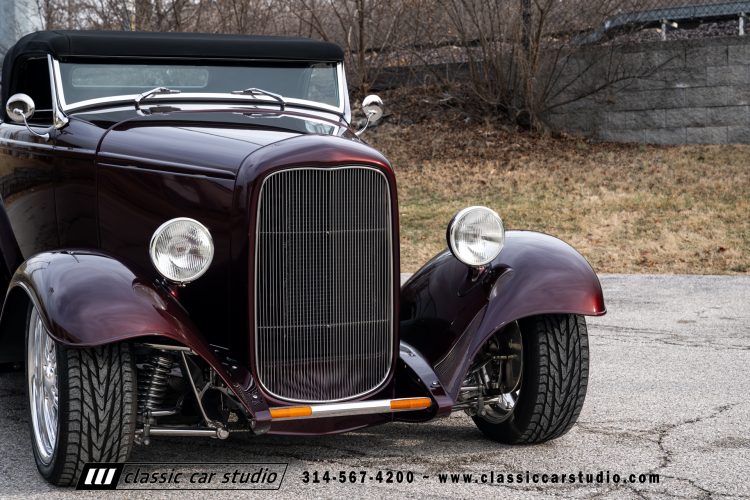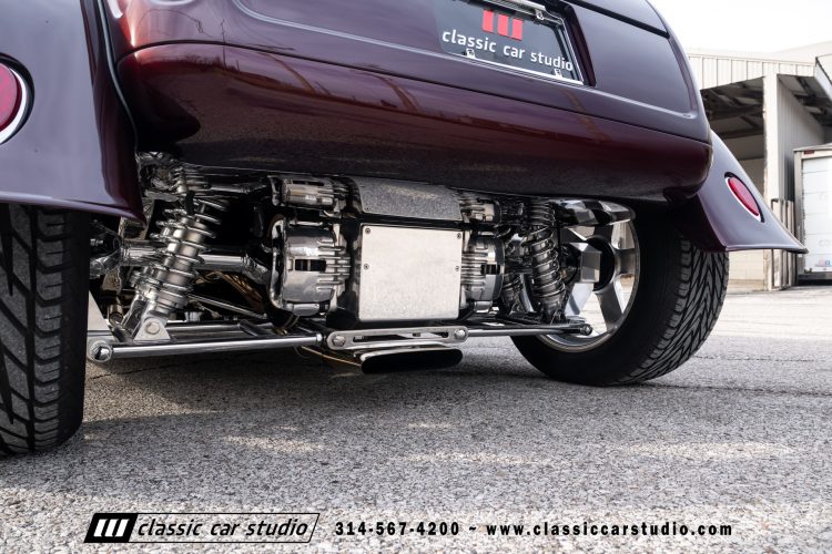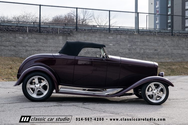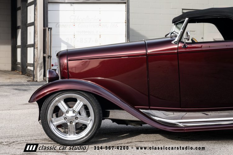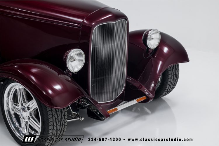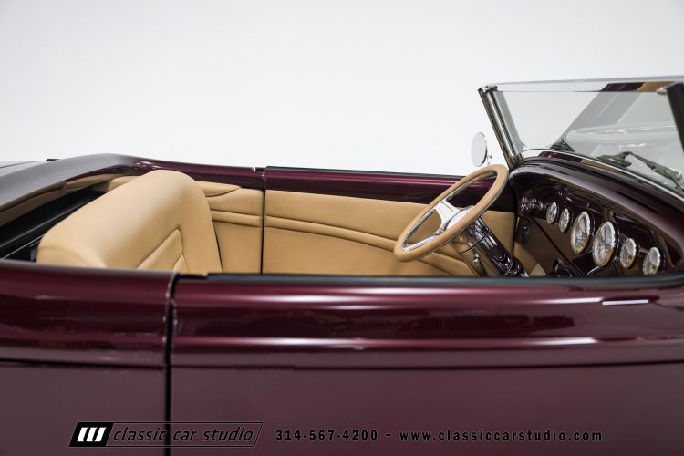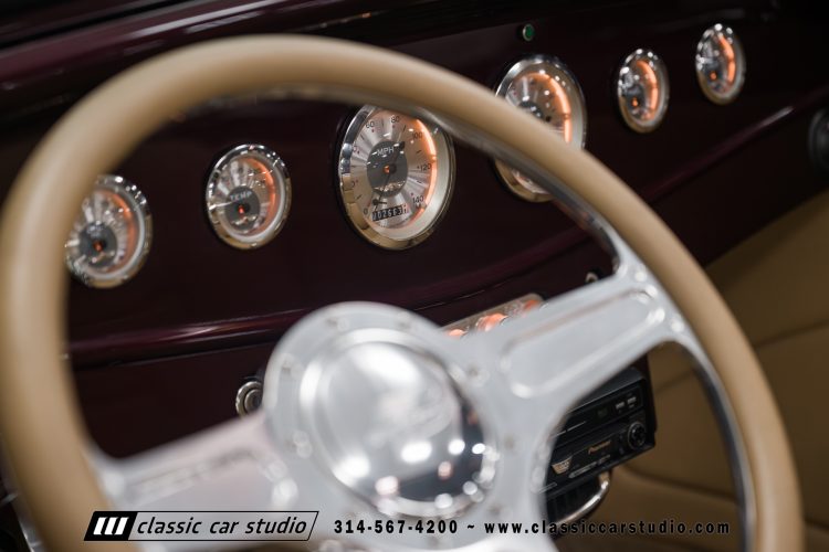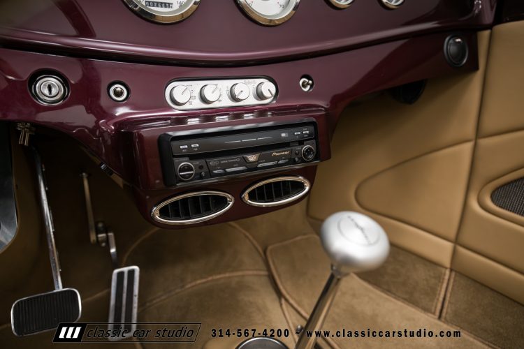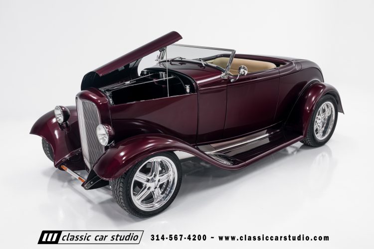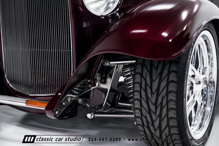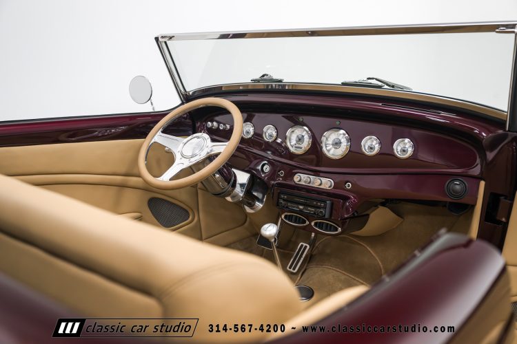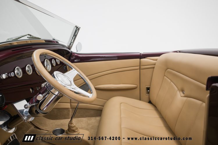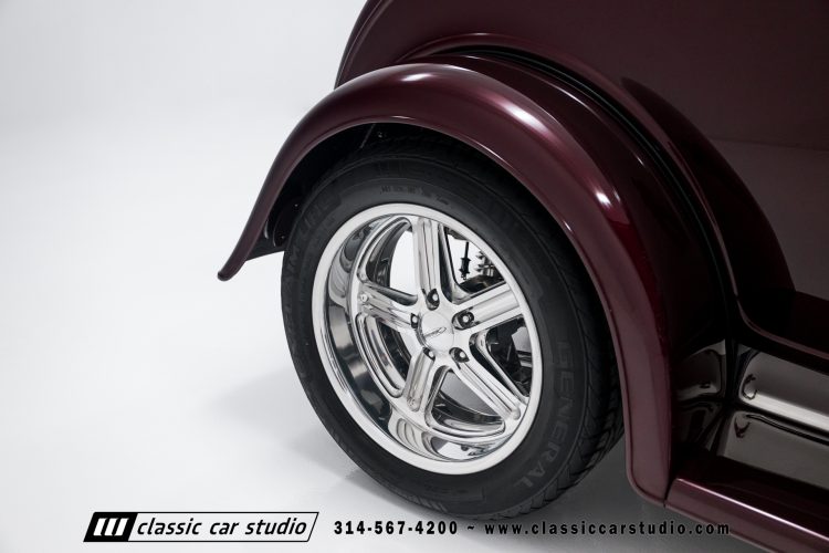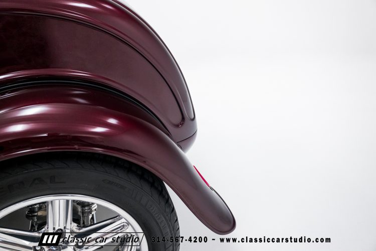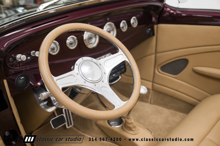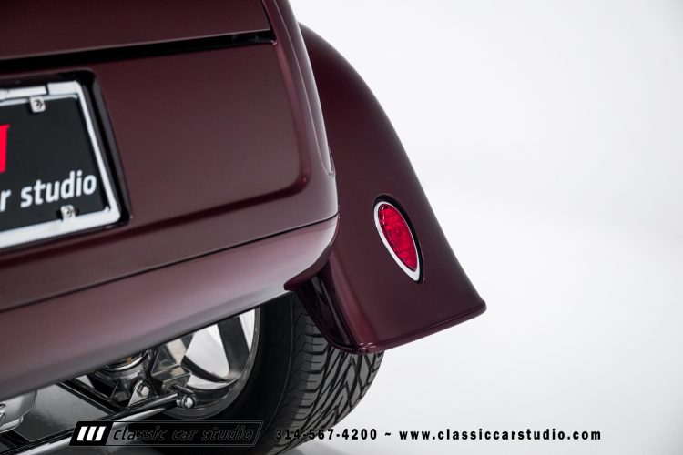 Manufactured in a partnership between ASC in Detroit and Hot Rods and Horsepower in Connecticut, the 1932 Dearborn Deuce is one of best designed and manufactured 32 Ford replicas ever created. They were built using modern design, engineering and manufacturing technologies and it shows! Structural analysis of the original bodies and CAD led to the development of a birdcage structure to which all of the steel body panels attach. The doors are about 3.0” longer and utilize power windows that roll up smoothly to meet the top. The thick, padded top has a chopped look and utilizes a glass rear window. The modern convertible top is self contained and nests underneath the rear folding metal panel. The development and production was handled in Detroit by ASC, a tier 1 OEM manufacturer. Due to increased rigidity and structure, these cars have the best fitting, most solid construction you will find on any ‘32.
