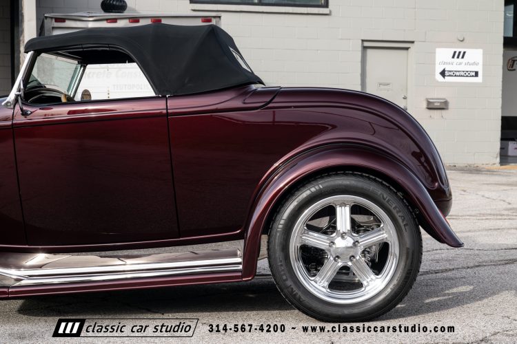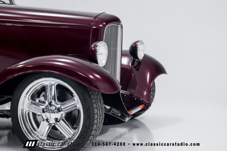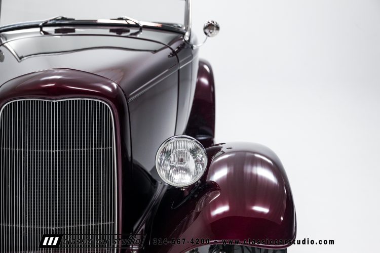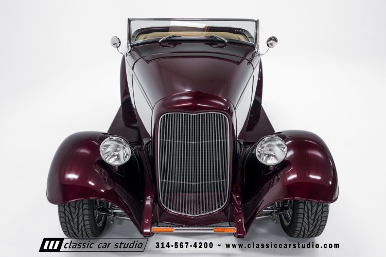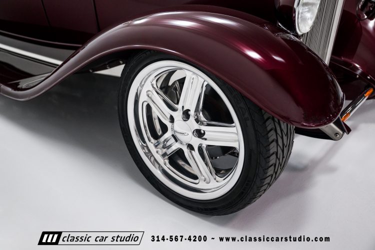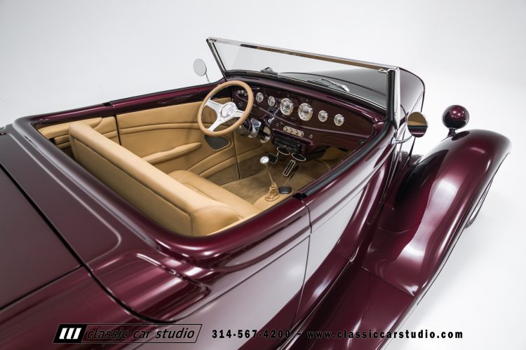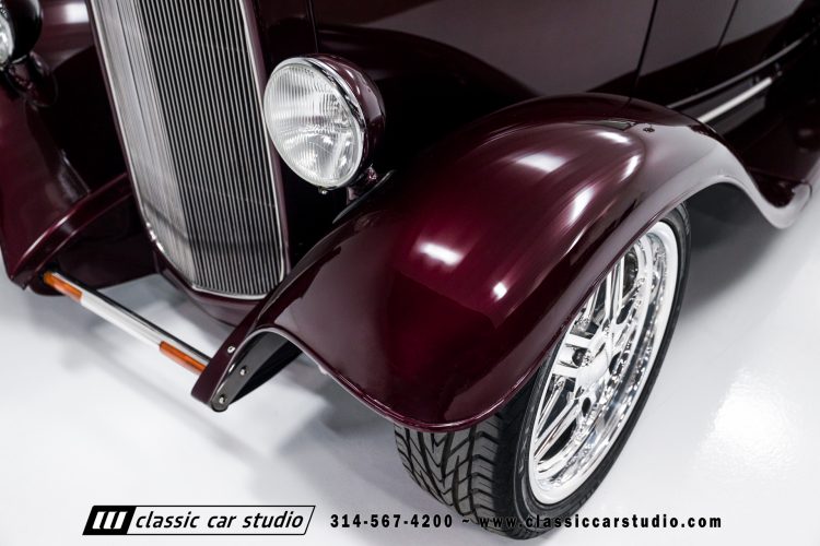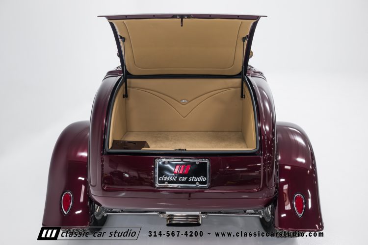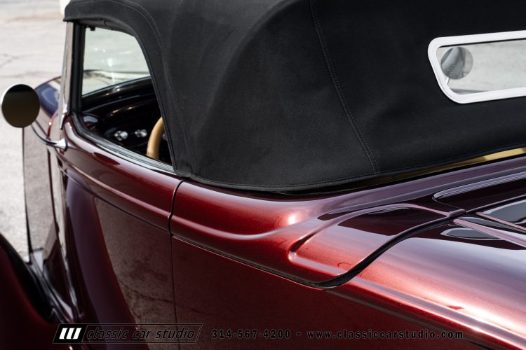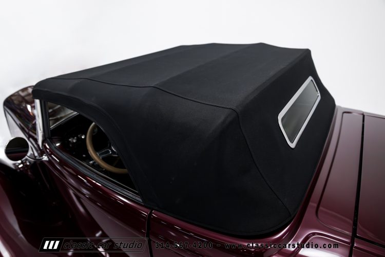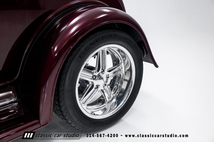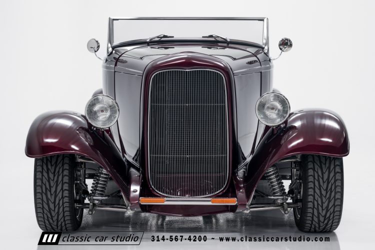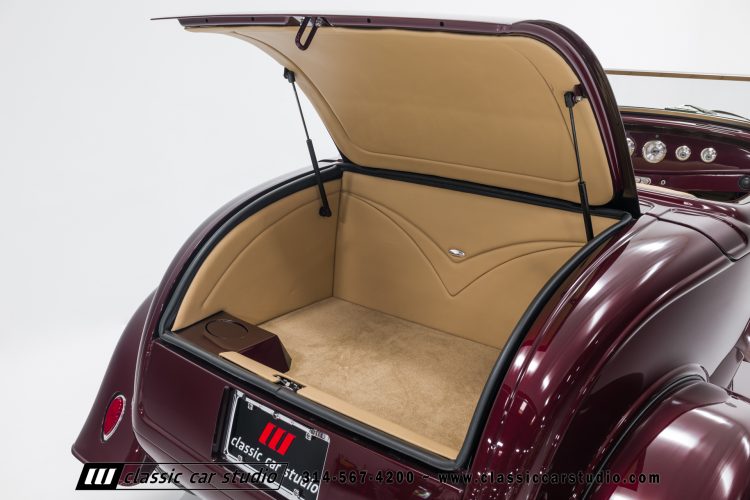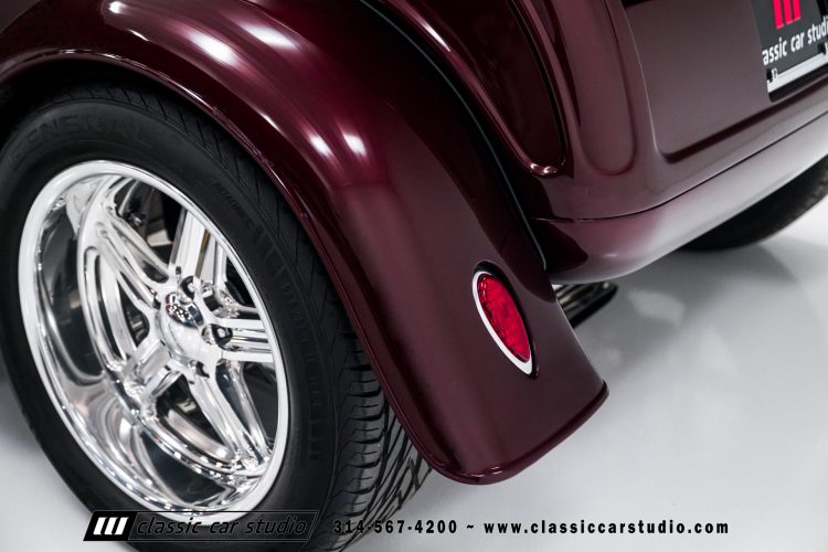 Manufactured in a partnership between ASC in Detroit and Hot Rods and Horsepower in Connecticut, the 1932 Dearborn Deuce is one of best designed and manufactured 32 Ford replicas ever created. They were built using modern design, engineering and manufacturing technologies and it shows! Structural analysis of the original bodies and CAD led to the development of a birdcage structure to which all of the steel body panels attach. The doors are about 3.0” longer and utilize power windows that roll up smoothly to meet the top. The thick, padded top has a chopped look and utilizes a glass rear window. The modern convertible top is self contained and nests underneath the rear folding metal panel. The development and production was handled in Detroit by ASC, a tier 1 OEM manufacturer. Due to increased rigidity and structure, these cars have the best fitting, most solid construction you will find on any ‘32.