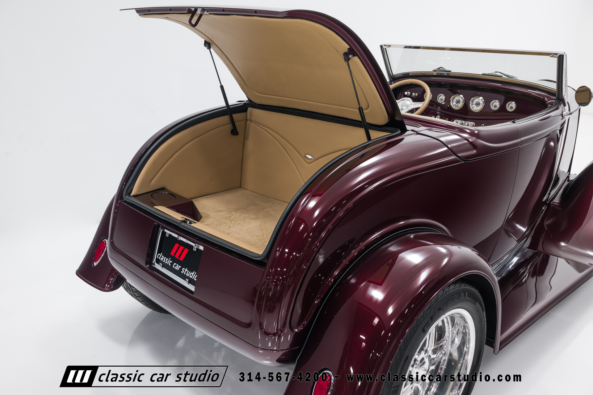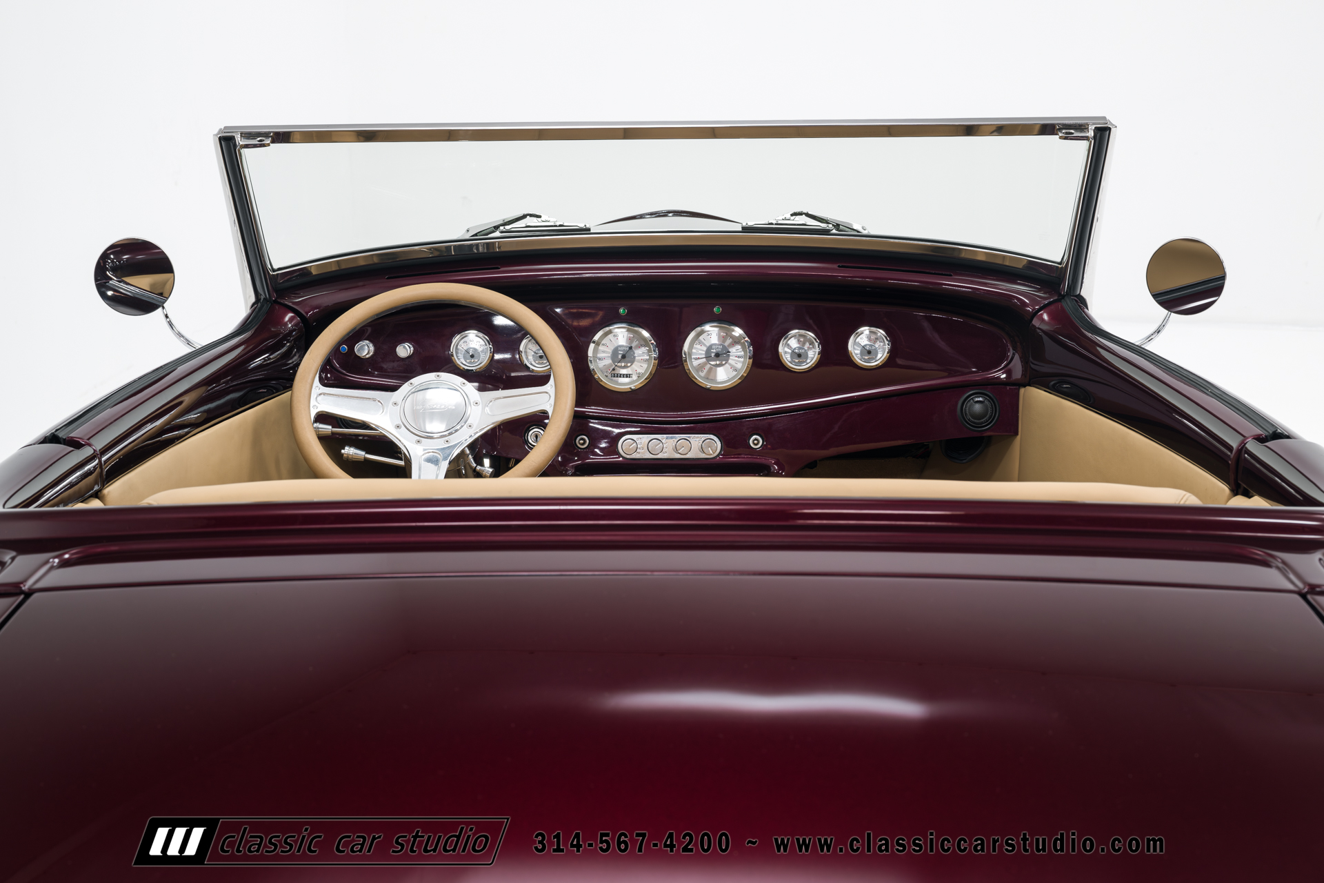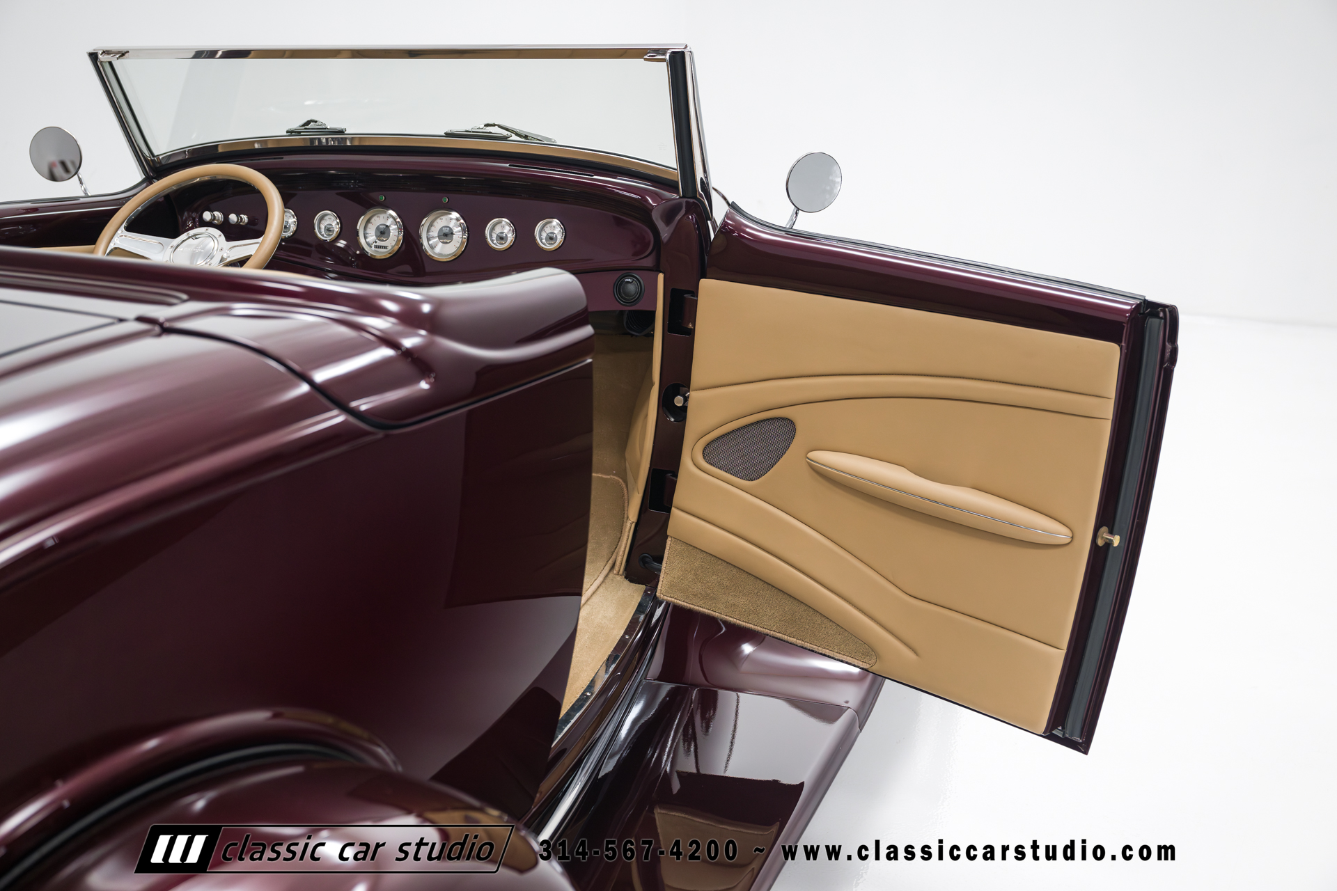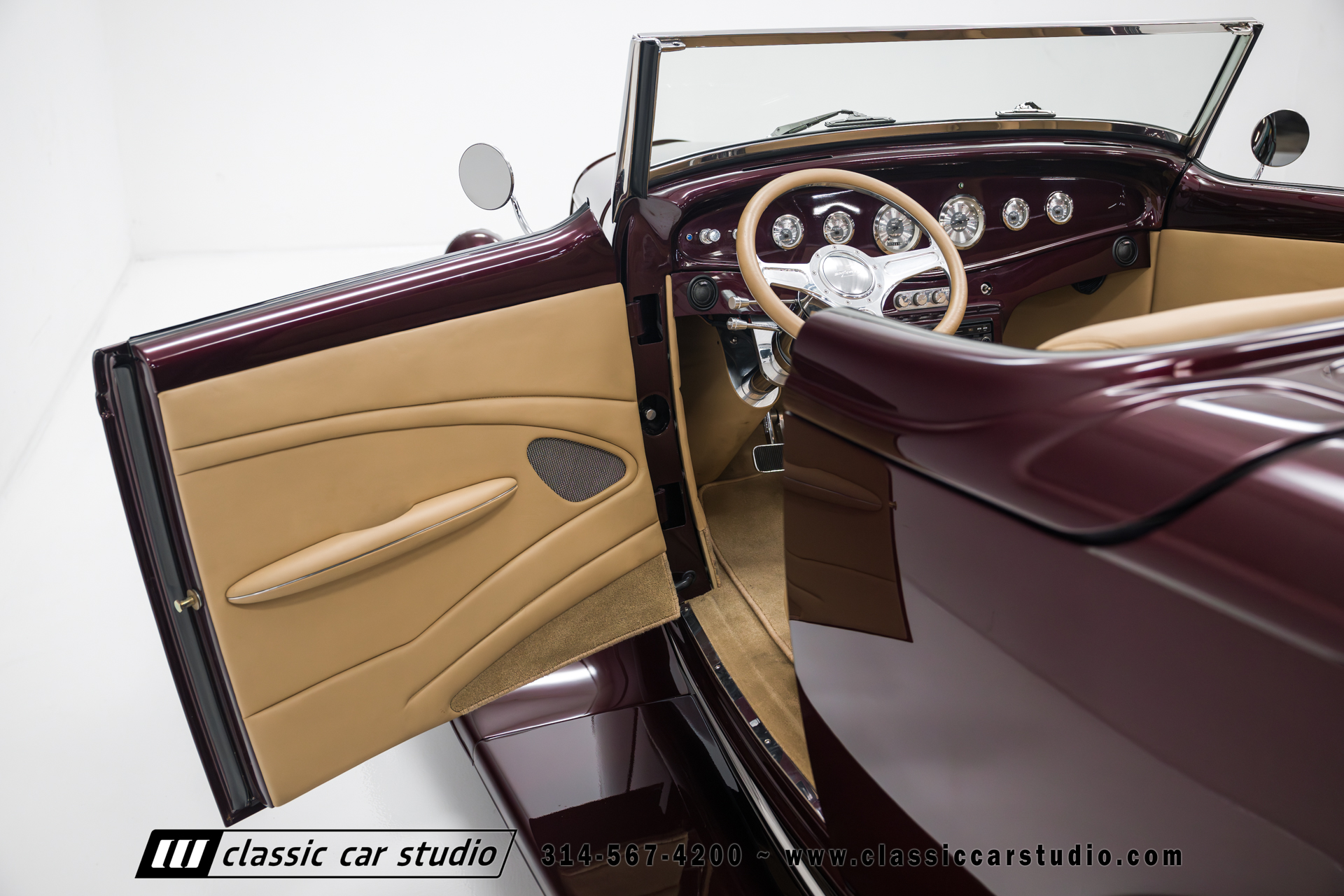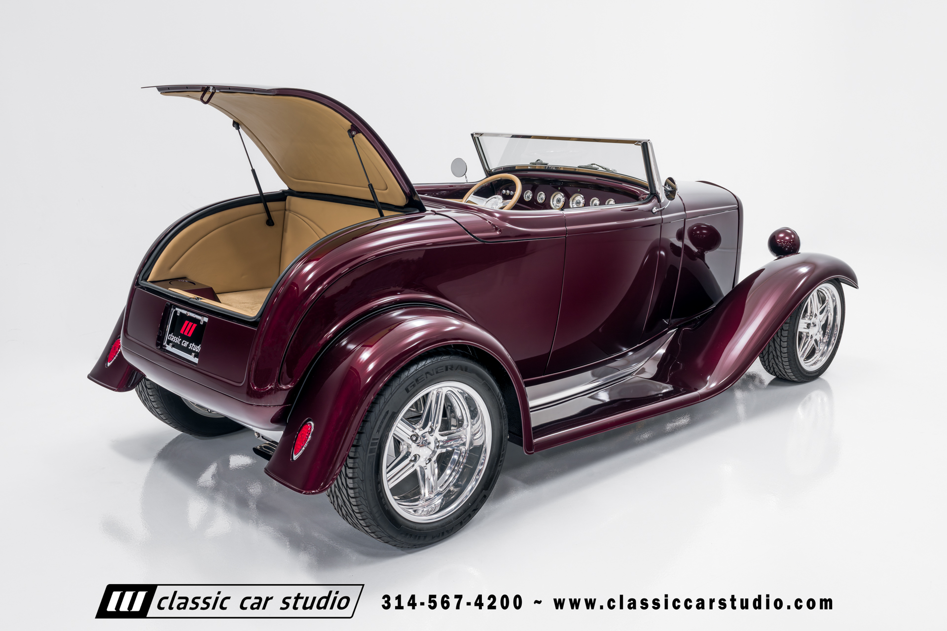 Manufactured in a partnership between ASC in Detroit and Hot Rods and Horsepower in Connecticut, the 1932 Dearborn Deuce is one of best designed and manufactured 32 Ford replicas ever created. They were built using modern design, engineering and manufacturing technologies and it shows! Structural analysis of the original bodies and CAD led to the development of a birdcage structure to which all of the steel body panels attach. The doors are about 3.0” longer and utilize power windows that roll up smoothly to meet the top. The thick, padded top has a chopped look and utilizes a glass rear window. The modern convertible top is self contained and nests underneath the rear folding metal panel. The development and production was handled in Detroit by ASC, a tier 1 OEM manufacturer. Due to increased rigidity and structure, these cars have the best fitting, most solid construction you will find on any ‘32.
