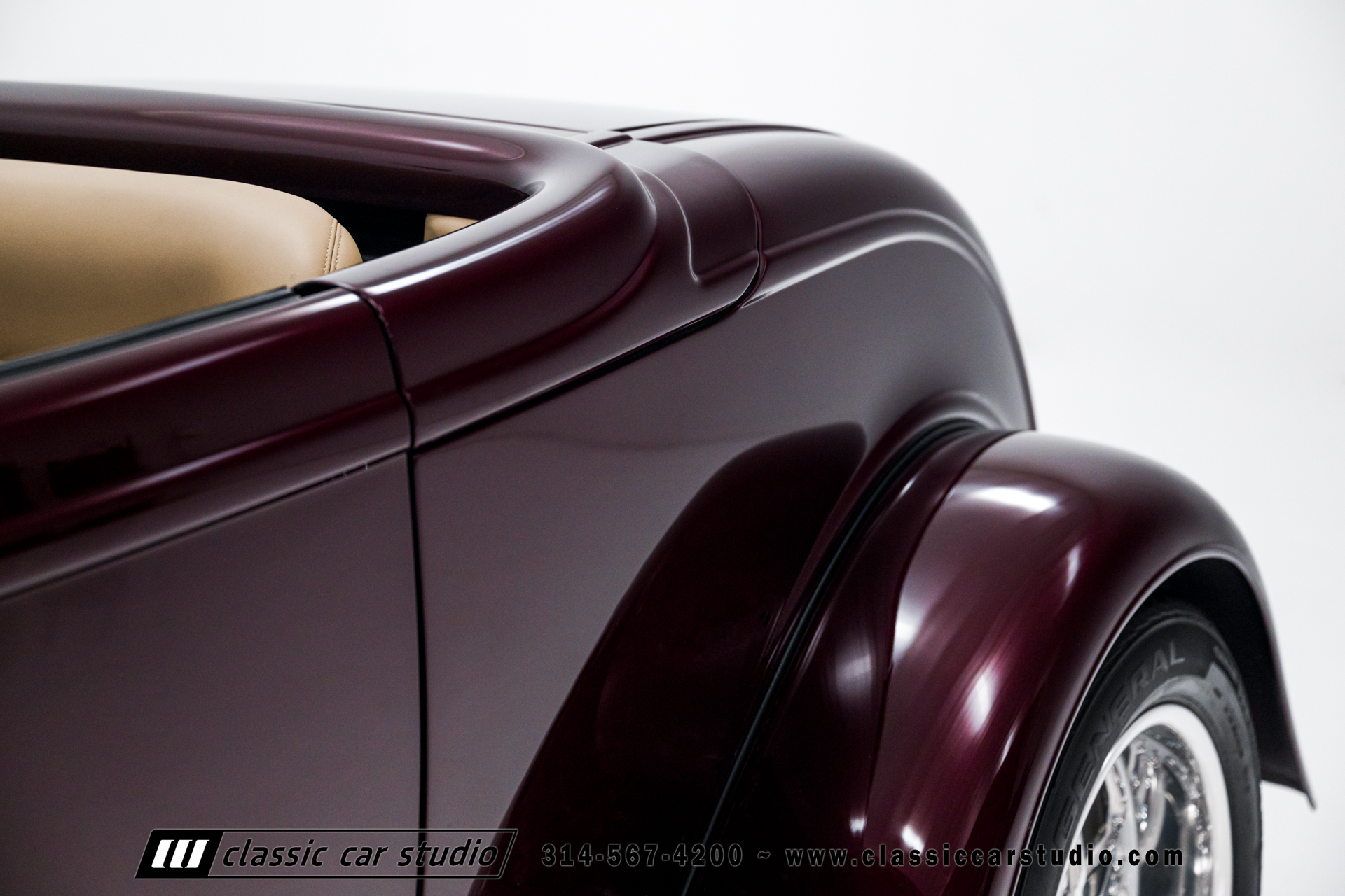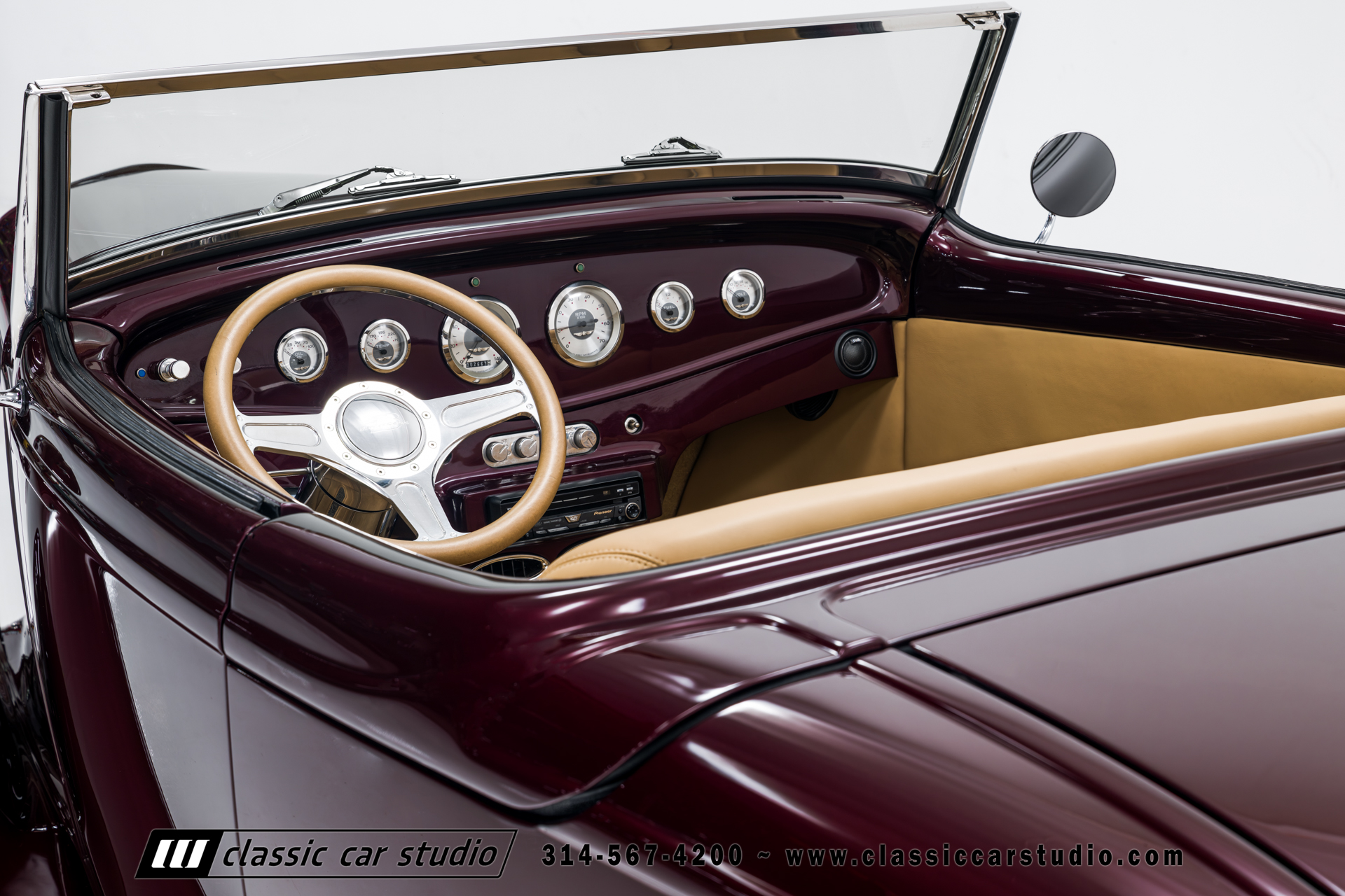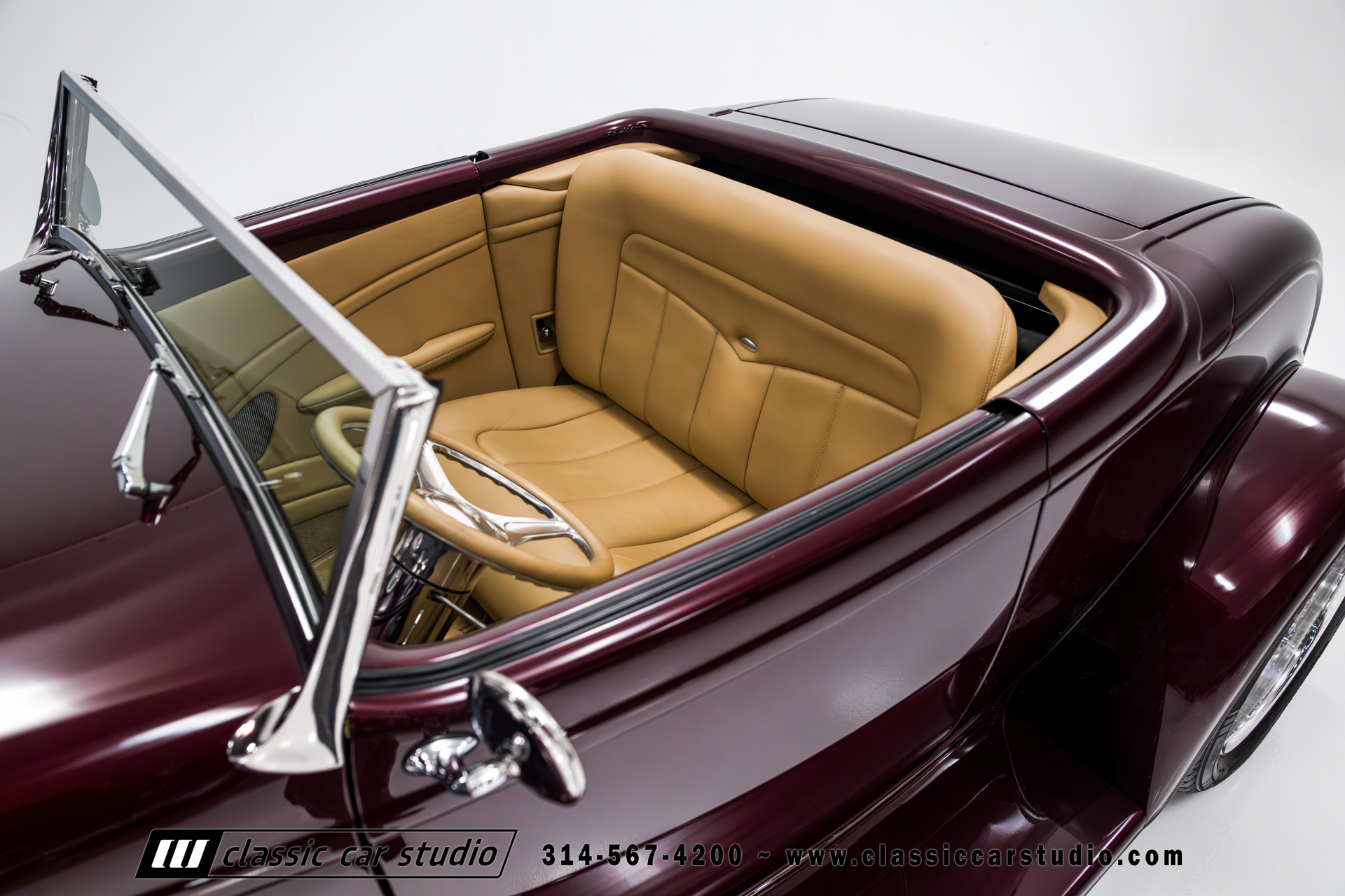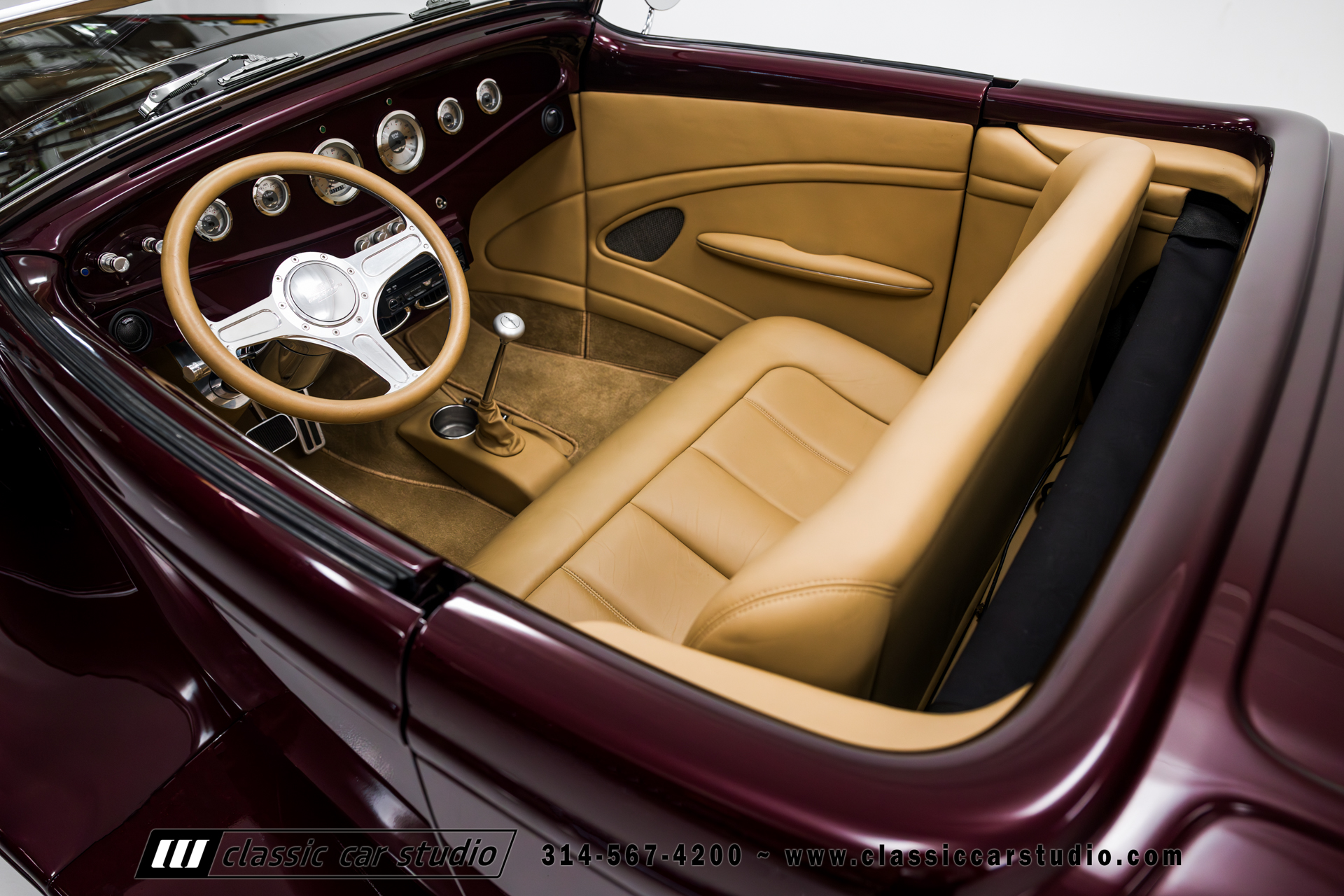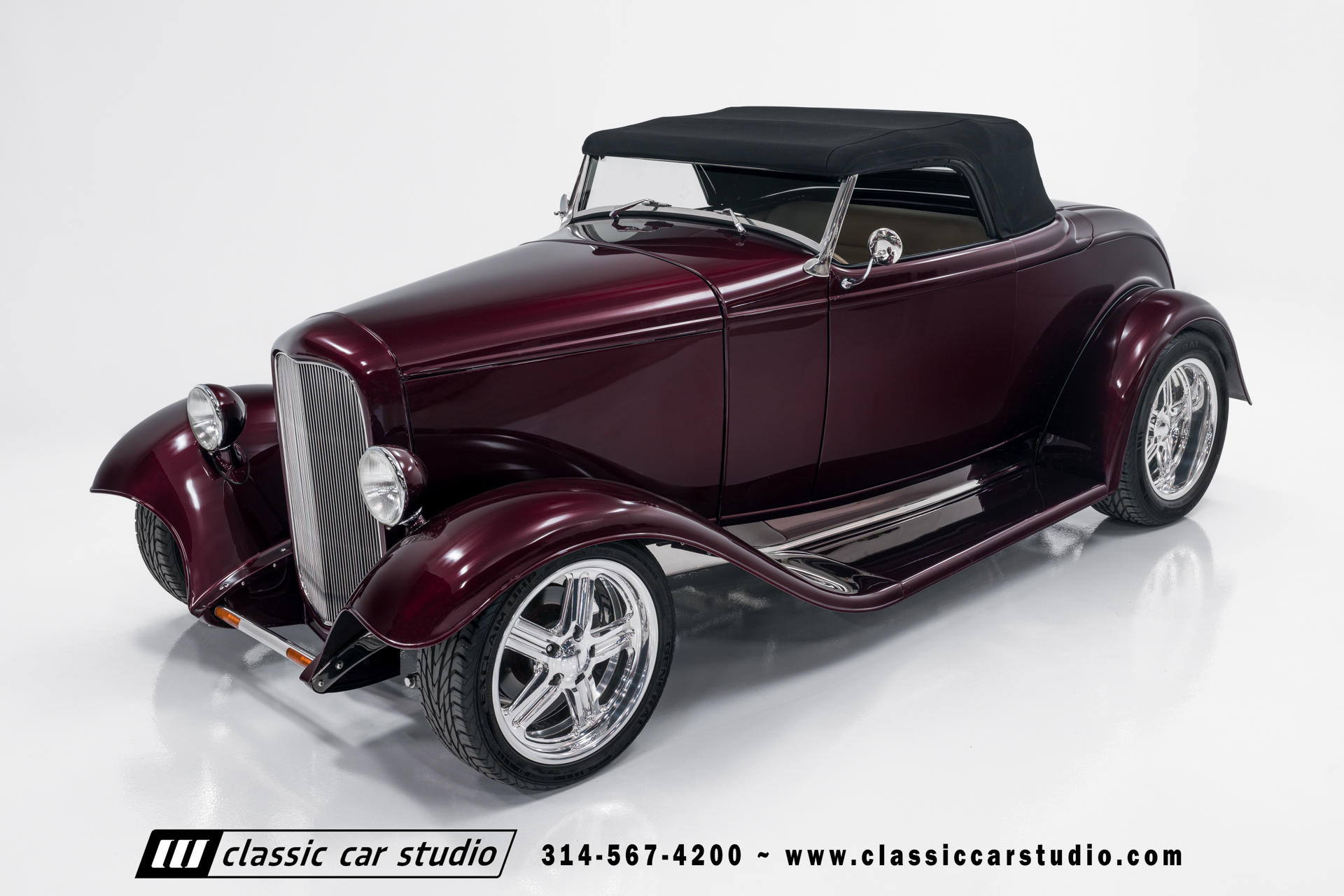 Manufactured in a partnership between ASC in Detroit and Hot Rods and Horsepower in Connecticut, the 1932 Dearborn Deuce is one of best designed and manufactured 32 Ford replicas ever created. They were built using modern design, engineering and manufacturing technologies and it shows! Structural analysis of the original bodies and CAD led to the development of a birdcage structure to which all of the steel body panels attach. The doors are about 3.0” longer and utilize power windows that roll up smoothly to meet the top. The thick, padded top has a chopped look and utilizes a glass rear window. The modern convertible top is self contained and nests underneath the rear folding metal panel. The development and production was handled in Detroit by ASC, a tier 1 OEM manufacturer. Due to increased rigidity and structure, these cars have the best fitting, most solid construction you will find on any ‘32.