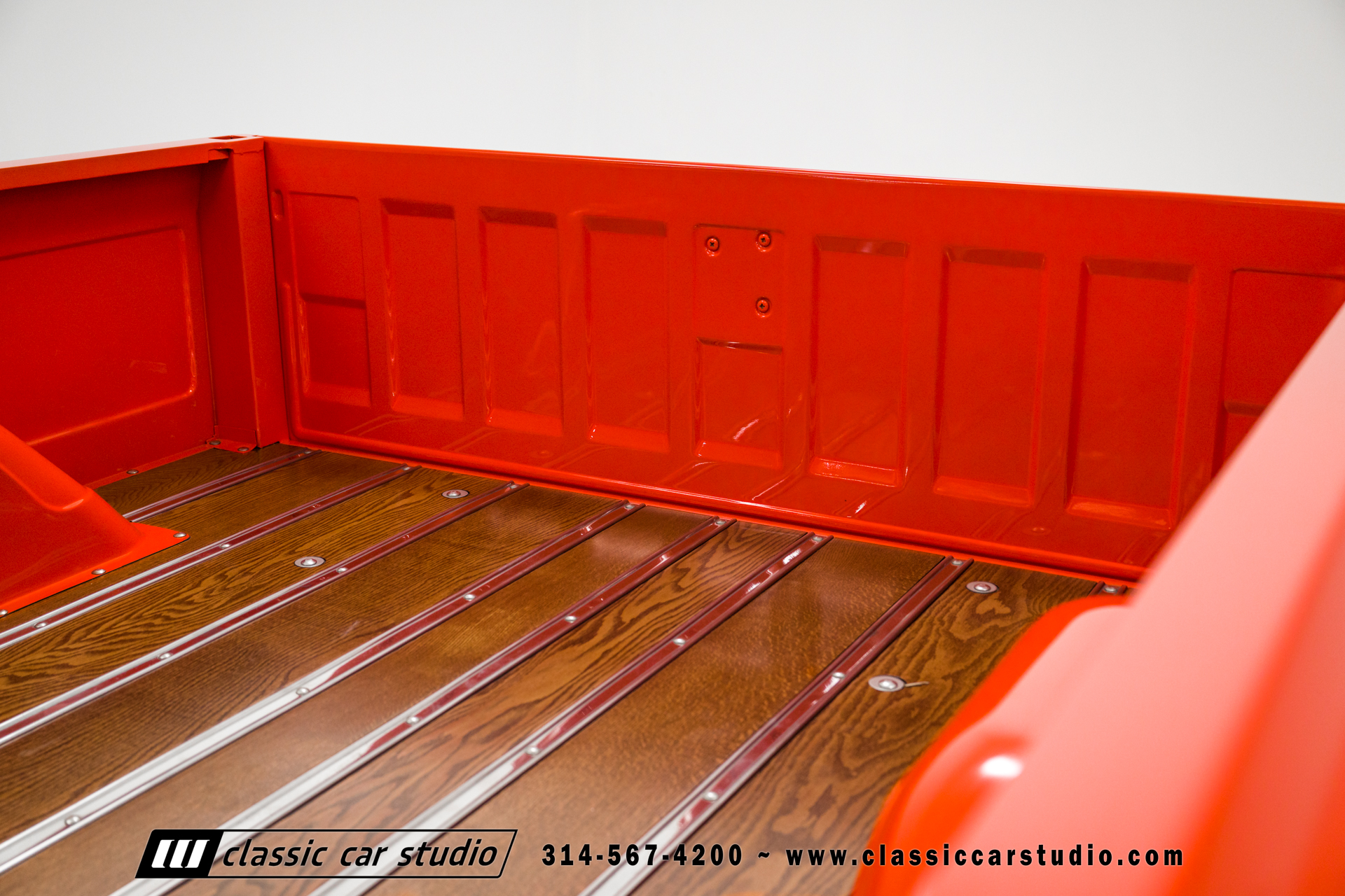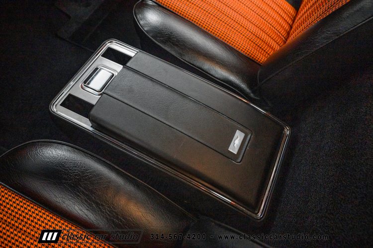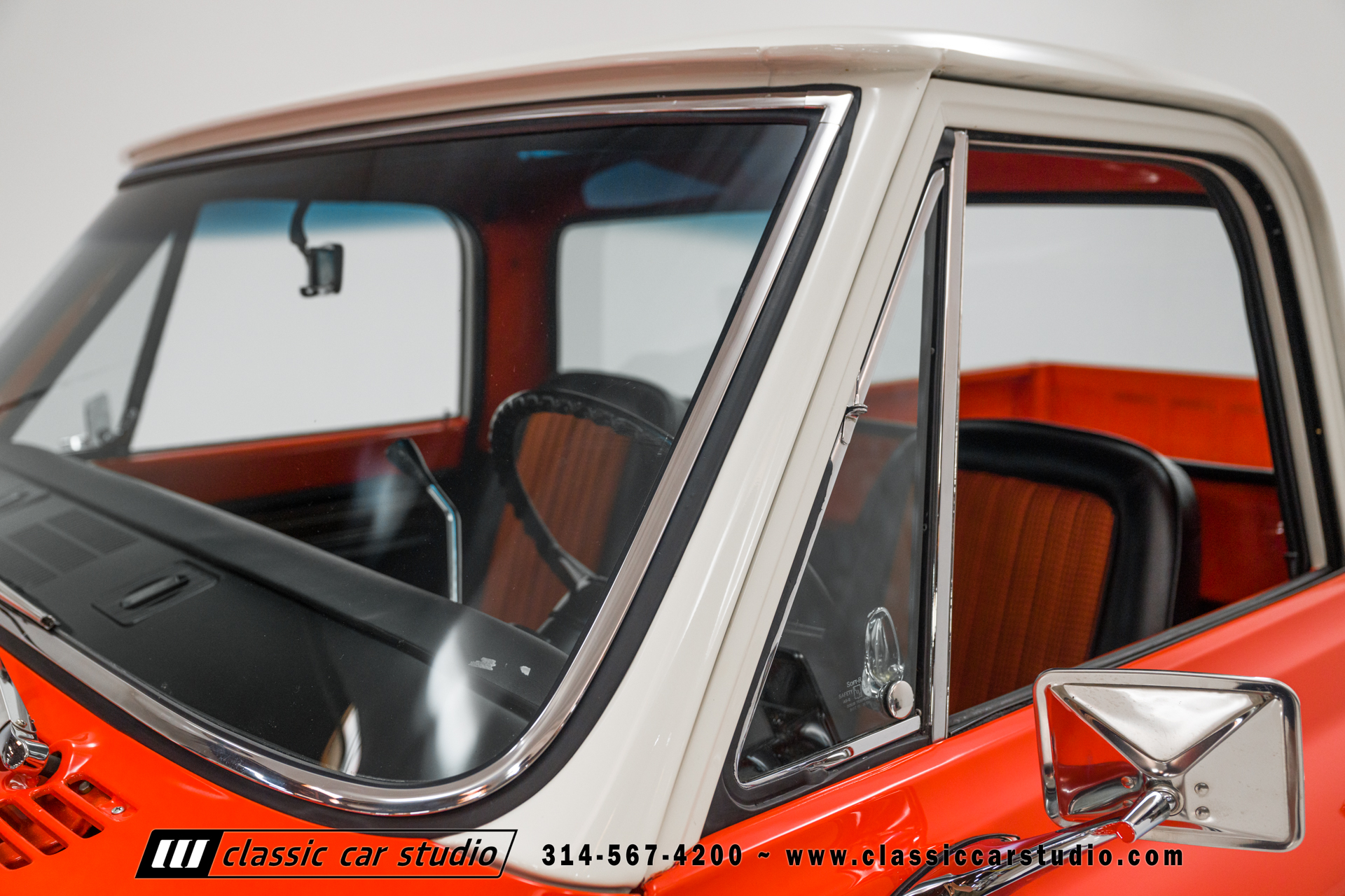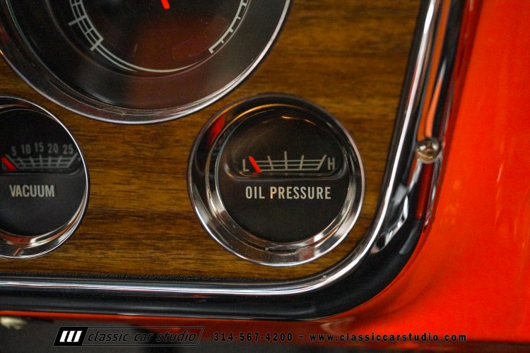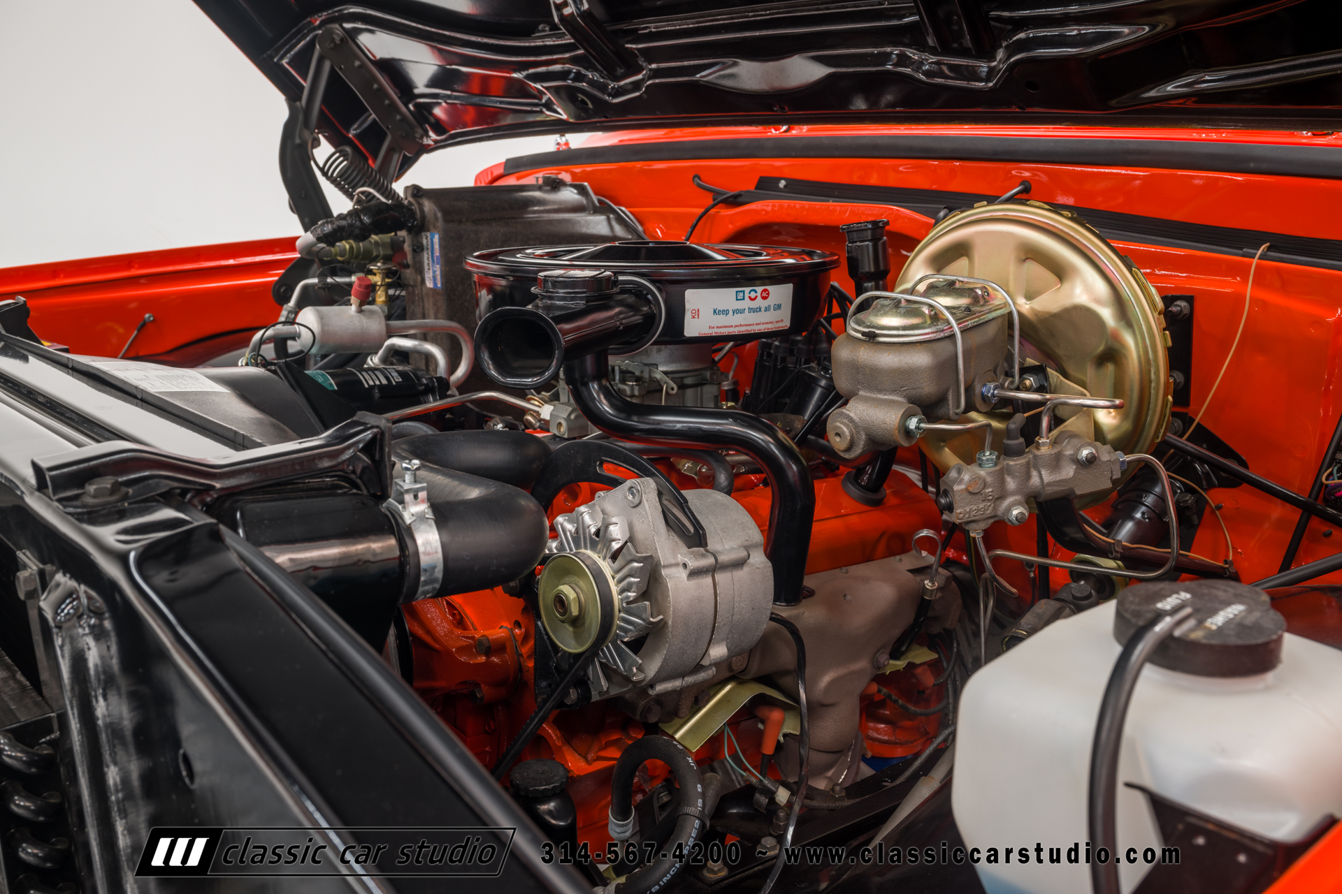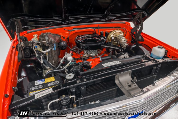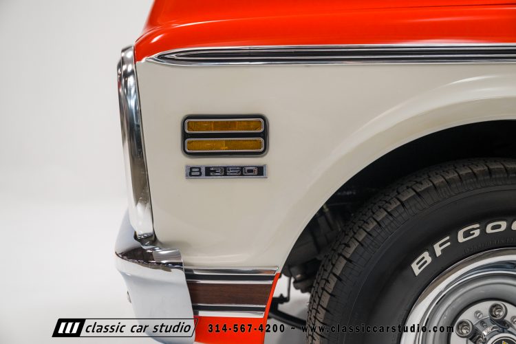 This 1972 Chevrolet C10 is a Fleetside pickup that was refurbished under prior ownership and is finished in orange and white over black vinyl and orange houndstooth cloth upholstery. Power is supplied by a 350ci V8 linked with a TH350 three-speed automatic transmission and a 12-bolt rear axle. Additional equipment includes Cheyenne Super badging, a wood-lined bed floor, air conditioning, power steering, power front disc brakes, 15″ Rally-style wheels, woodgrain trim accents, and a push-button AM/FM radio. This C10 was acquired by the selling dealer in June 2023 and is now offered in Missouri with a clean Kentucky title.