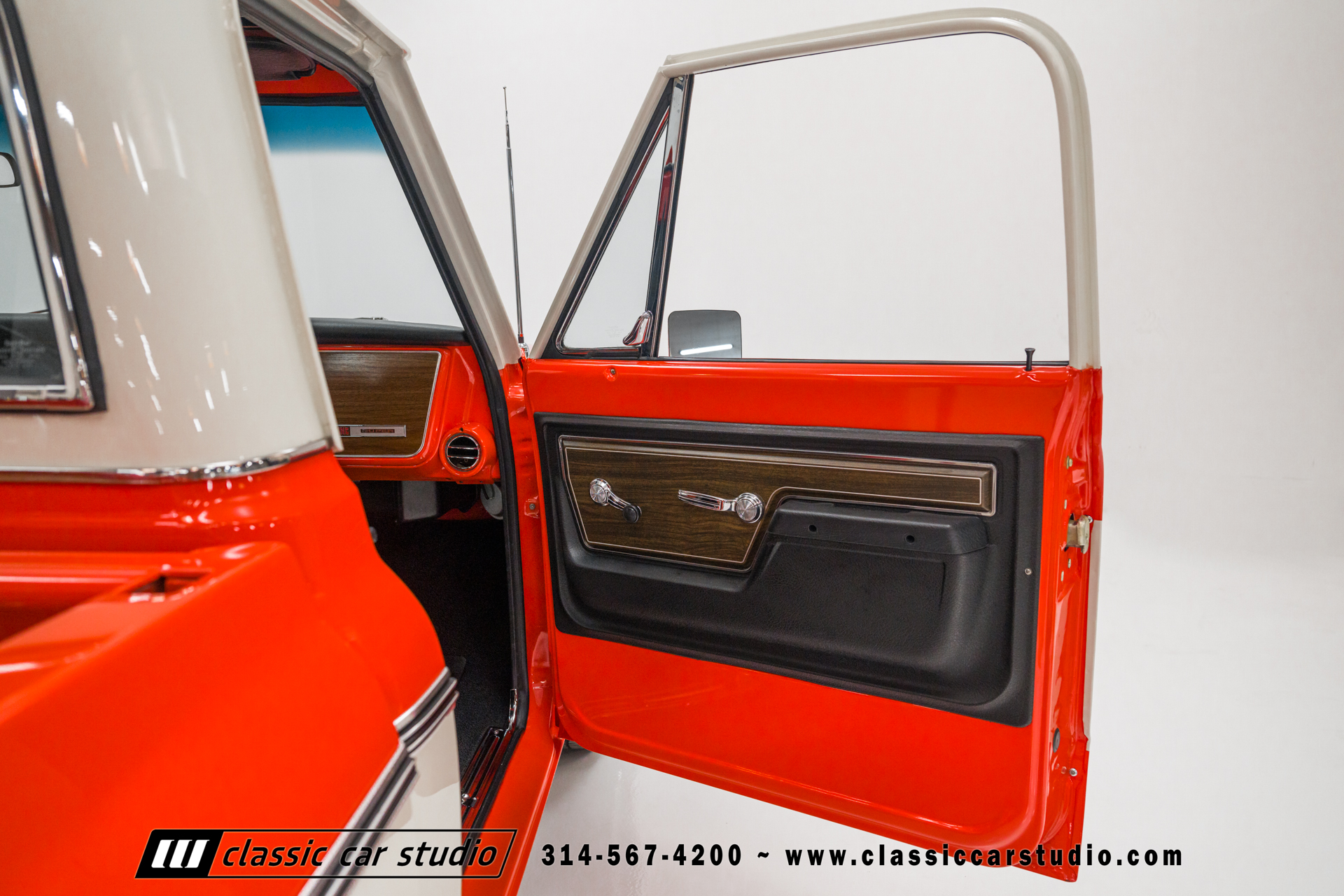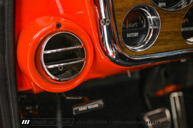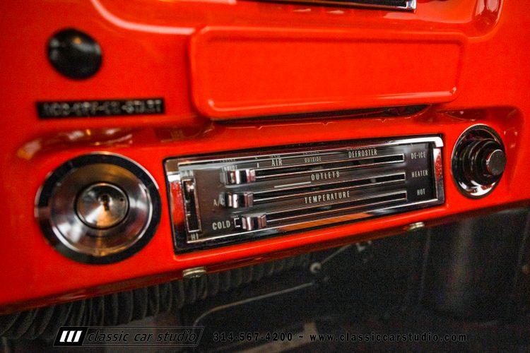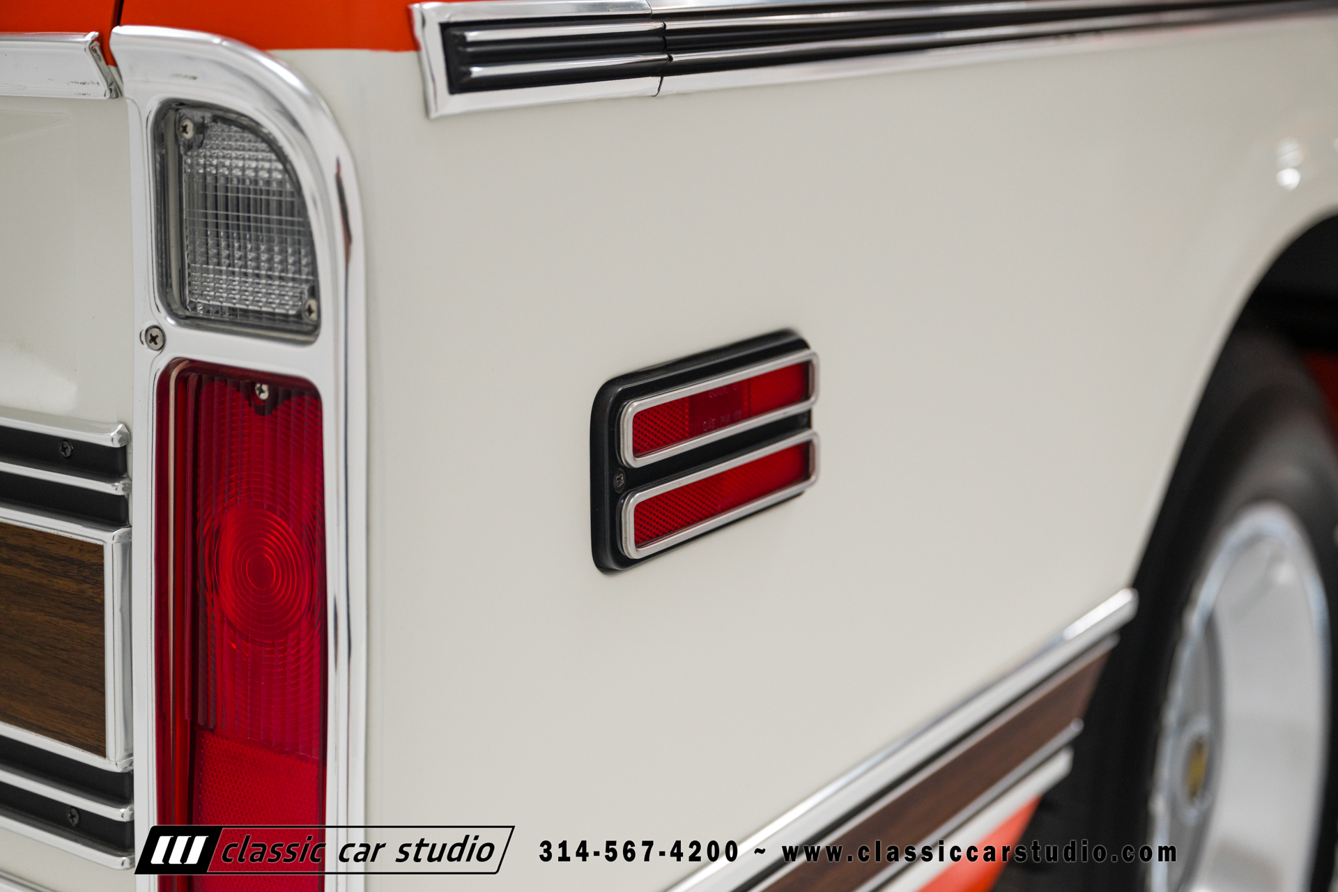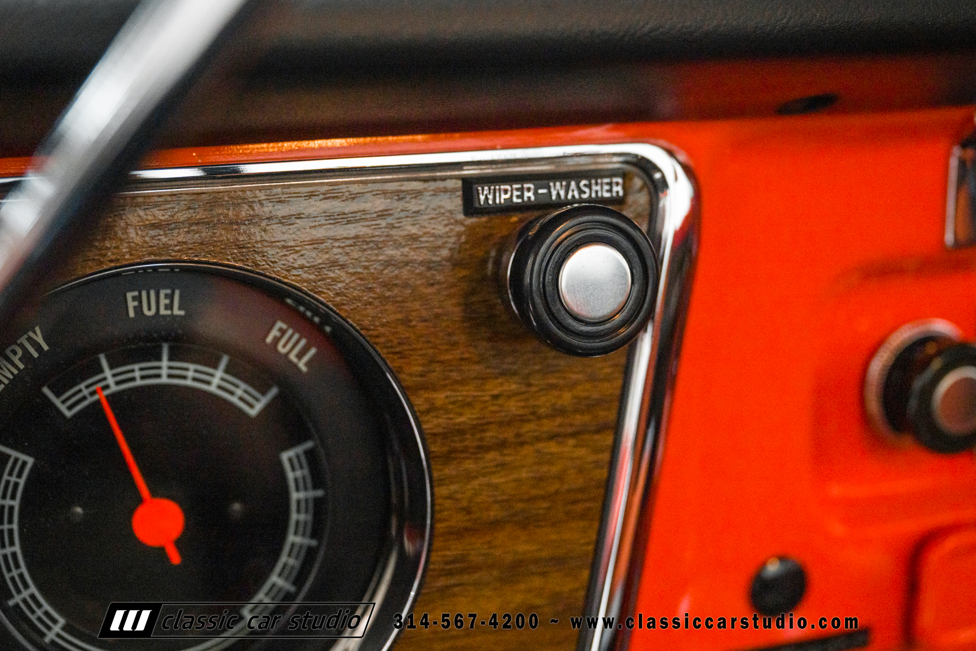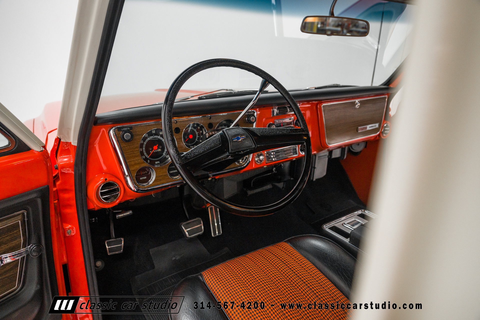 This 1972 Chevrolet C10 is a Fleetside pickup that was refurbished under prior ownership and is finished in orange and white over black vinyl and orange houndstooth cloth upholstery. Power is supplied by a 350ci V8 linked with a TH350 three-speed automatic transmission and a 12-bolt rear axle. Additional equipment includes Cheyenne Super badging, a wood-lined bed floor, air conditioning, power steering, power front disc brakes, 15″ Rally-style wheels, woodgrain trim accents, and a push-button AM/FM radio. This C10 was acquired by the selling dealer in June 2023 and is now offered in Missouri with a clean Kentucky title.