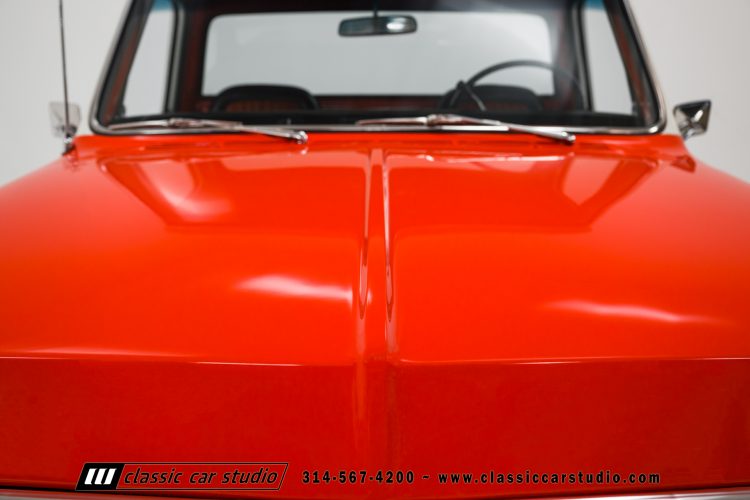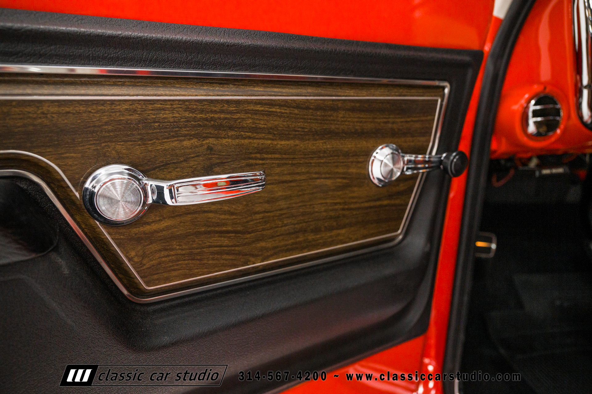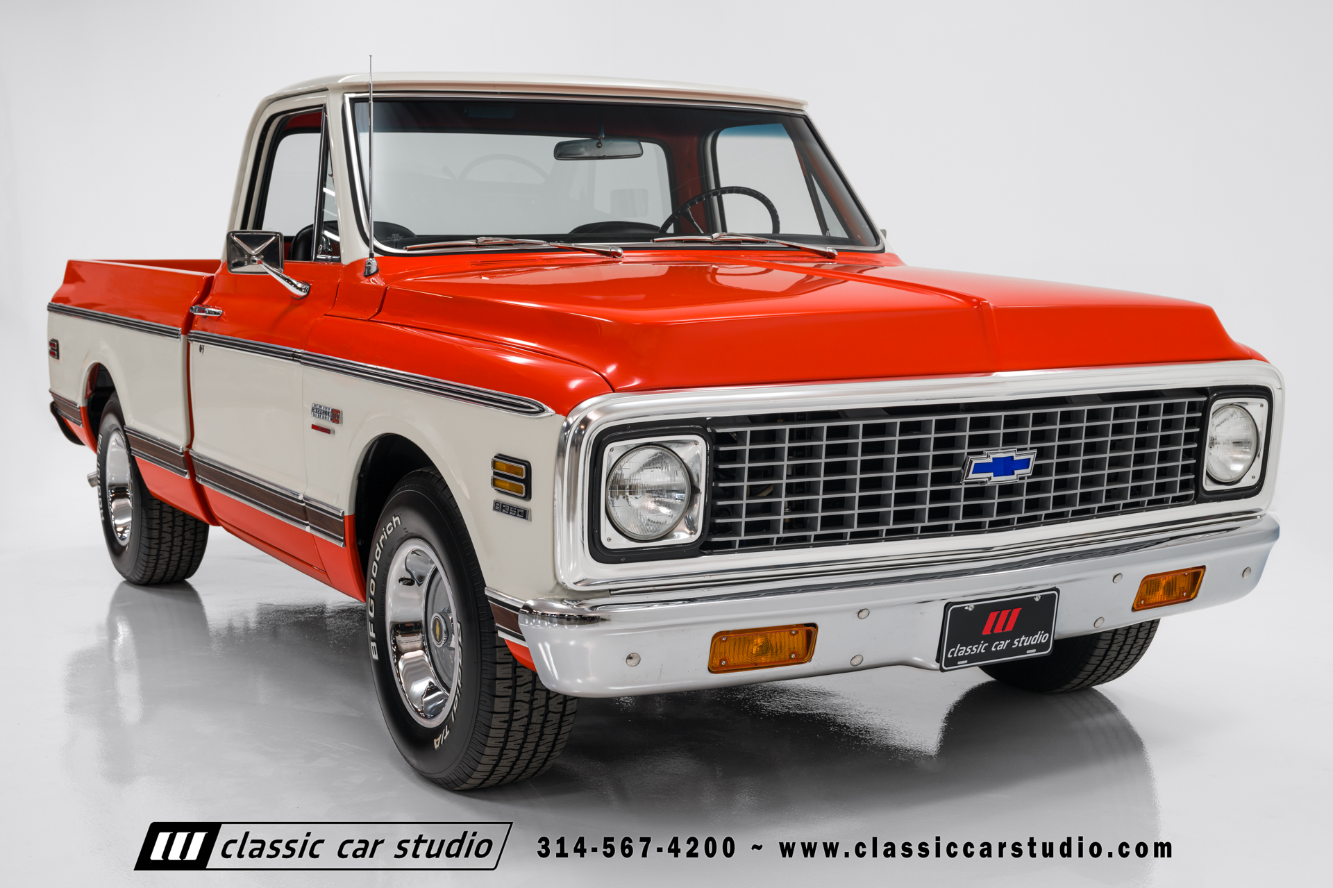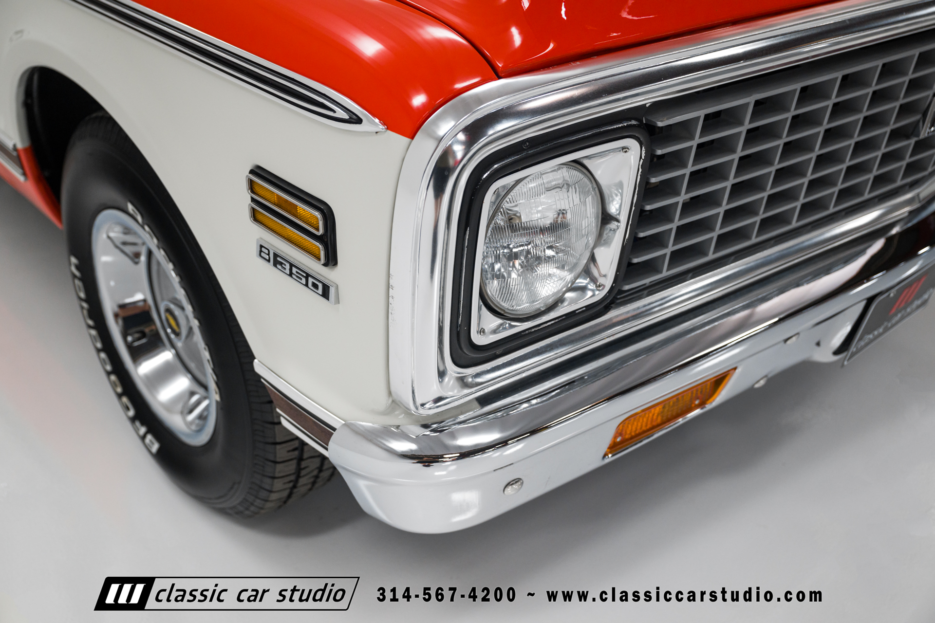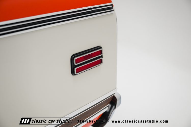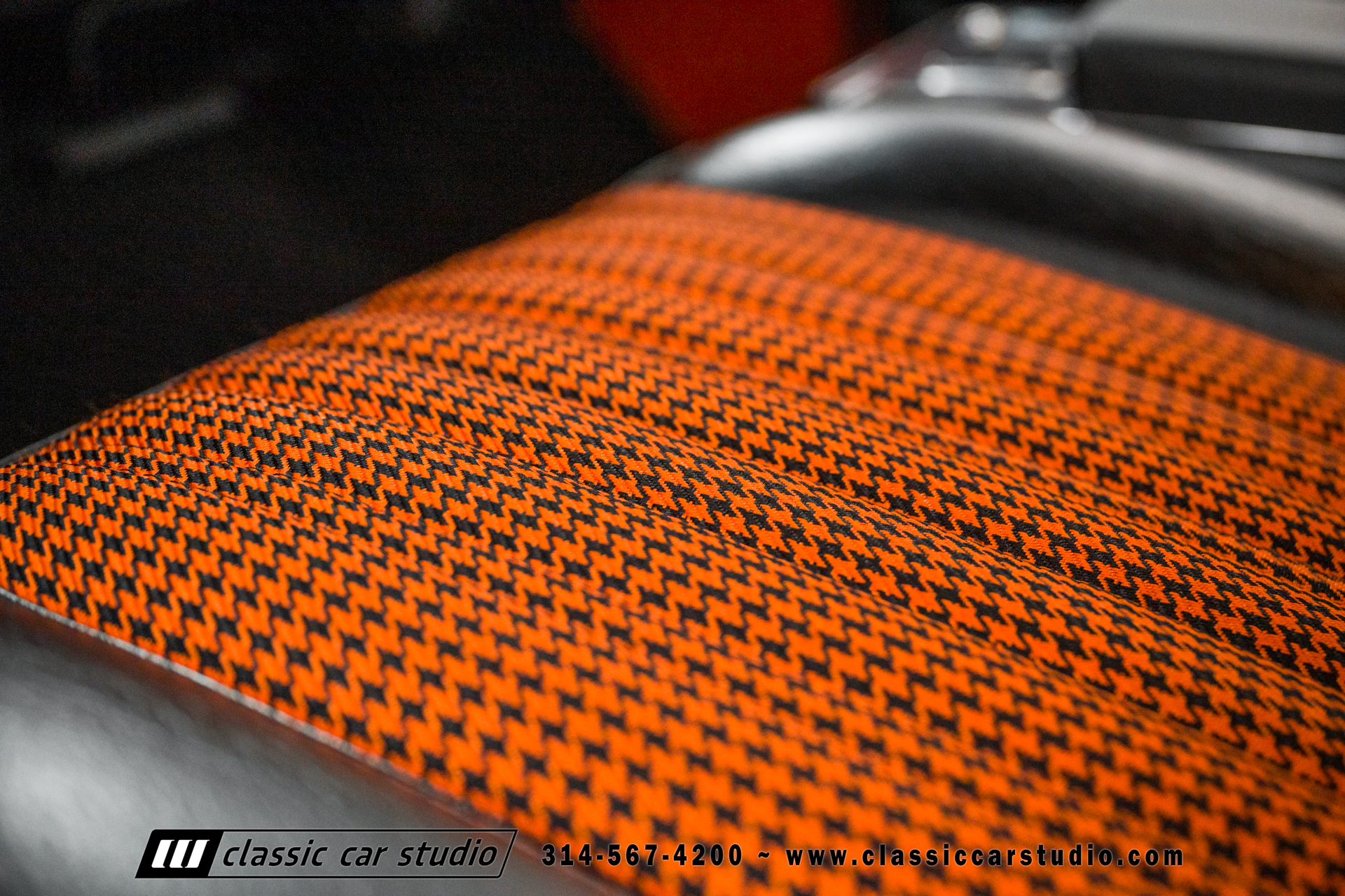 This 1972 Chevrolet C10 is a Fleetside pickup that was refurbished under prior ownership and is finished in orange and white over black vinyl and orange houndstooth cloth upholstery. Power is supplied by a 350ci V8 linked with a TH350 three-speed automatic transmission and a 12-bolt rear axle. Additional equipment includes Cheyenne Super badging, a wood-lined bed floor, air conditioning, power steering, power front disc brakes, 15″ Rally-style wheels, woodgrain trim accents, and a push-button AM/FM radio. This C10 was acquired by the selling dealer in June 2023 and is now offered in Missouri with a clean Kentucky title.