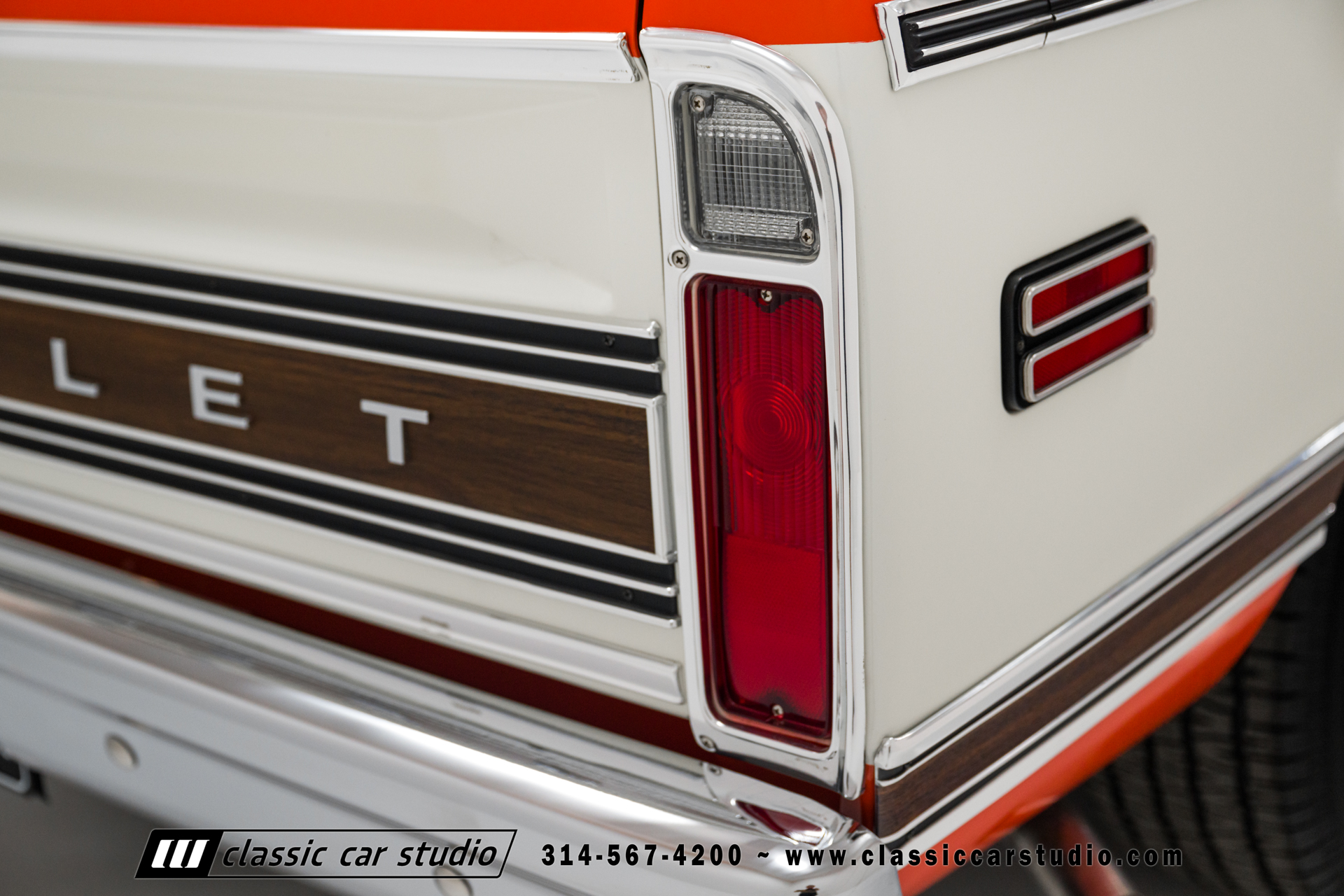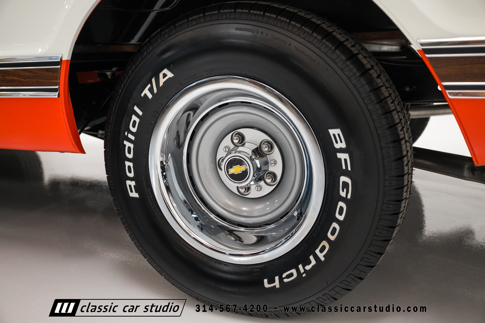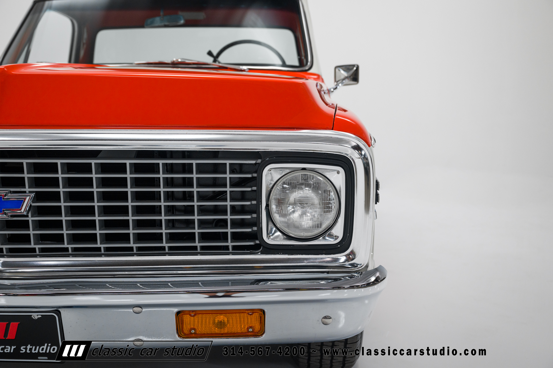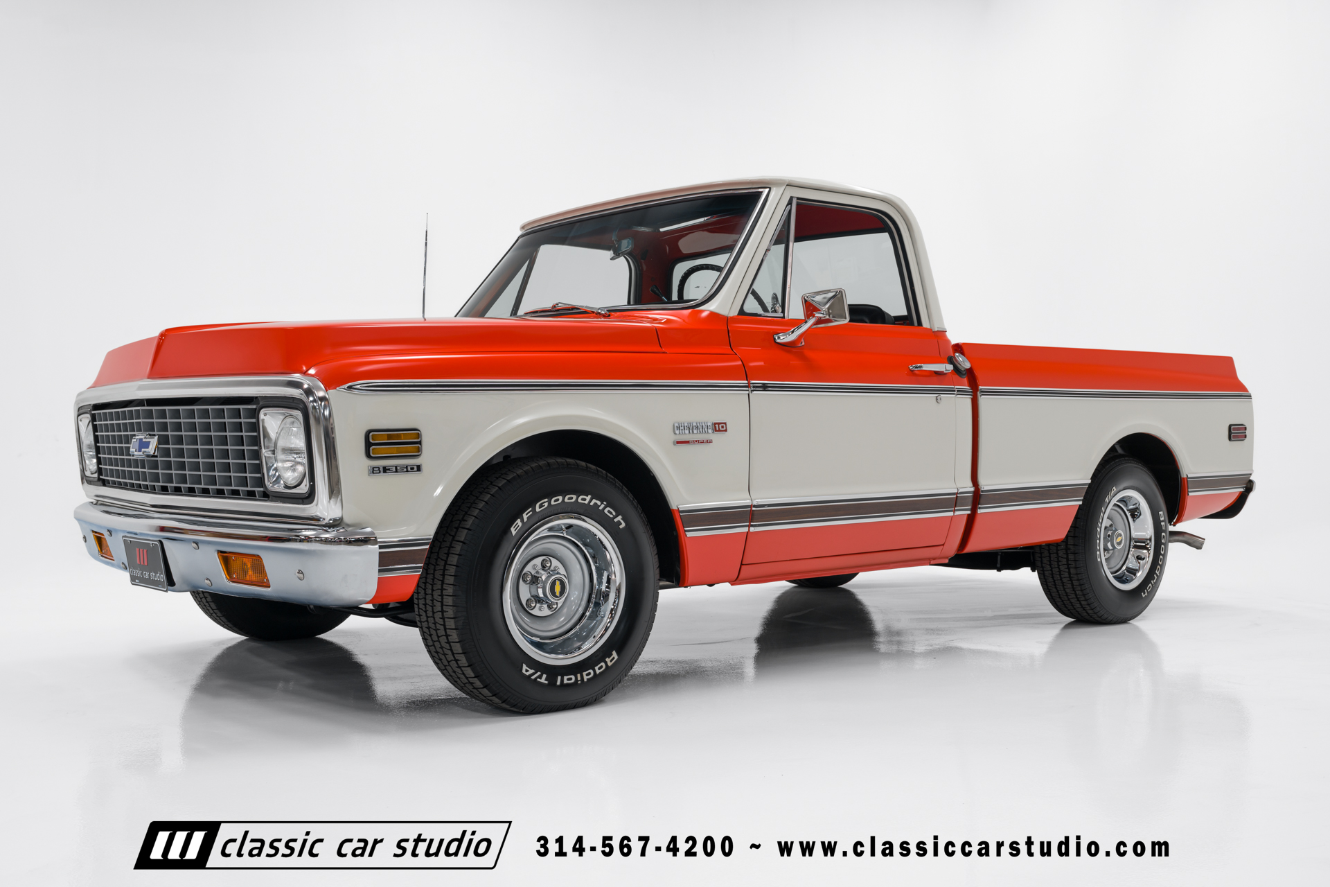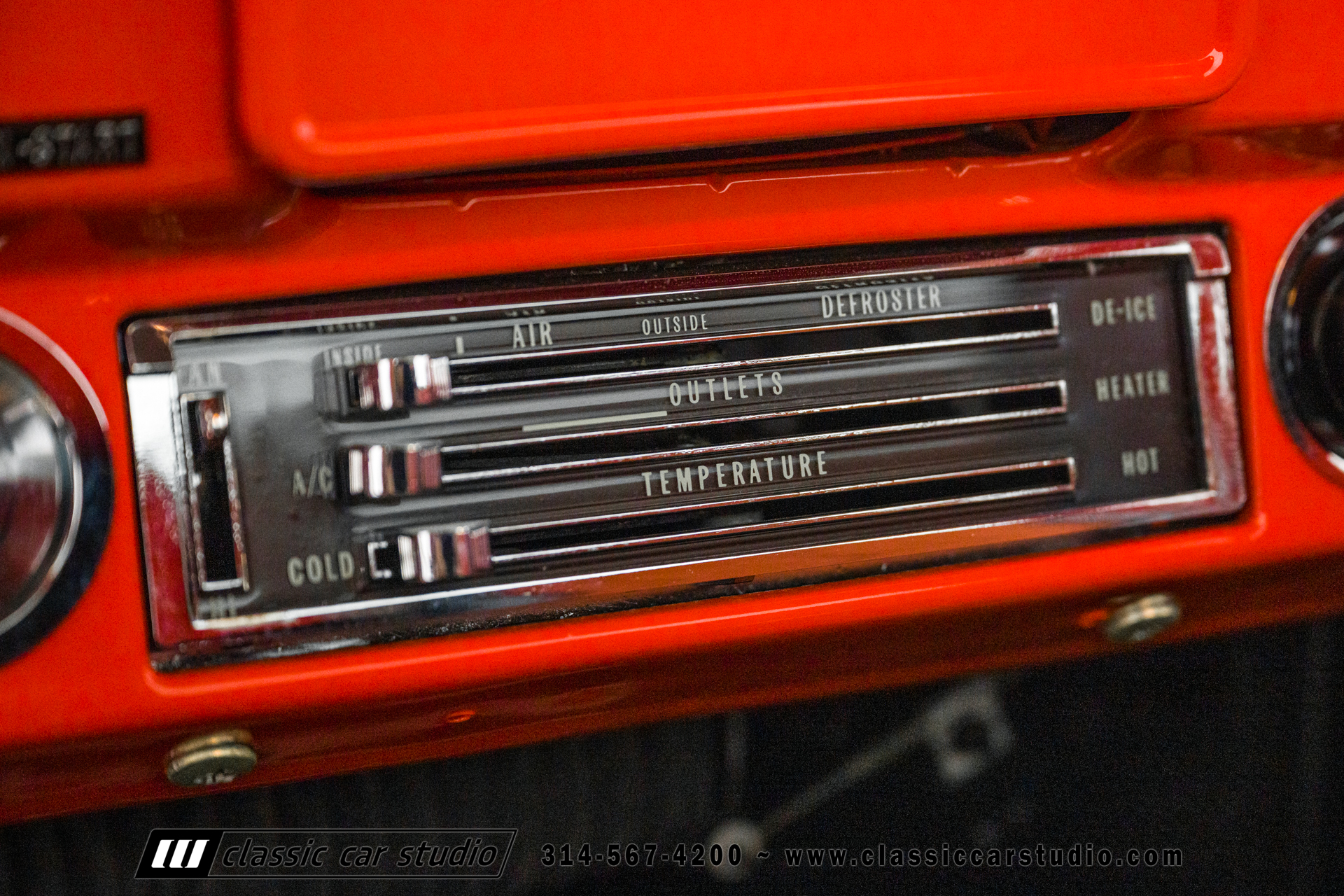 This 1972 Chevrolet C10 is a Fleetside pickup that was refurbished under prior ownership and is finished in orange and white over black vinyl and orange houndstooth cloth upholstery. Power is supplied by a 350ci V8 linked with a TH350 three-speed automatic transmission and a 12-bolt rear axle. Additional equipment includes Cheyenne Super badging, a wood-lined bed floor, air conditioning, power steering, power front disc brakes, 15″ Rally-style wheels, woodgrain trim accents, and a push-button AM/FM radio. This C10 was acquired by the selling dealer in June 2023 and is now offered in Missouri with a clean Kentucky title.