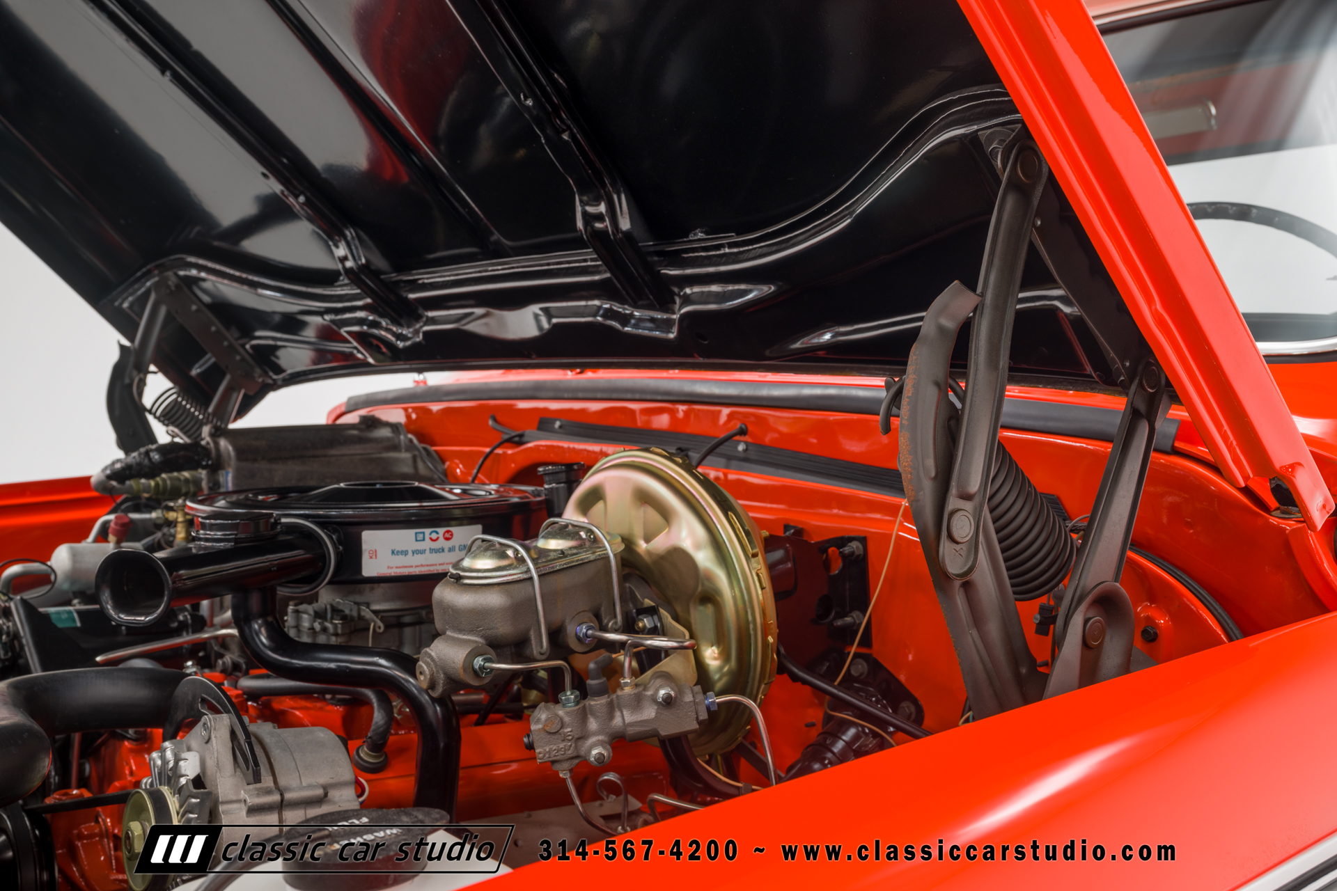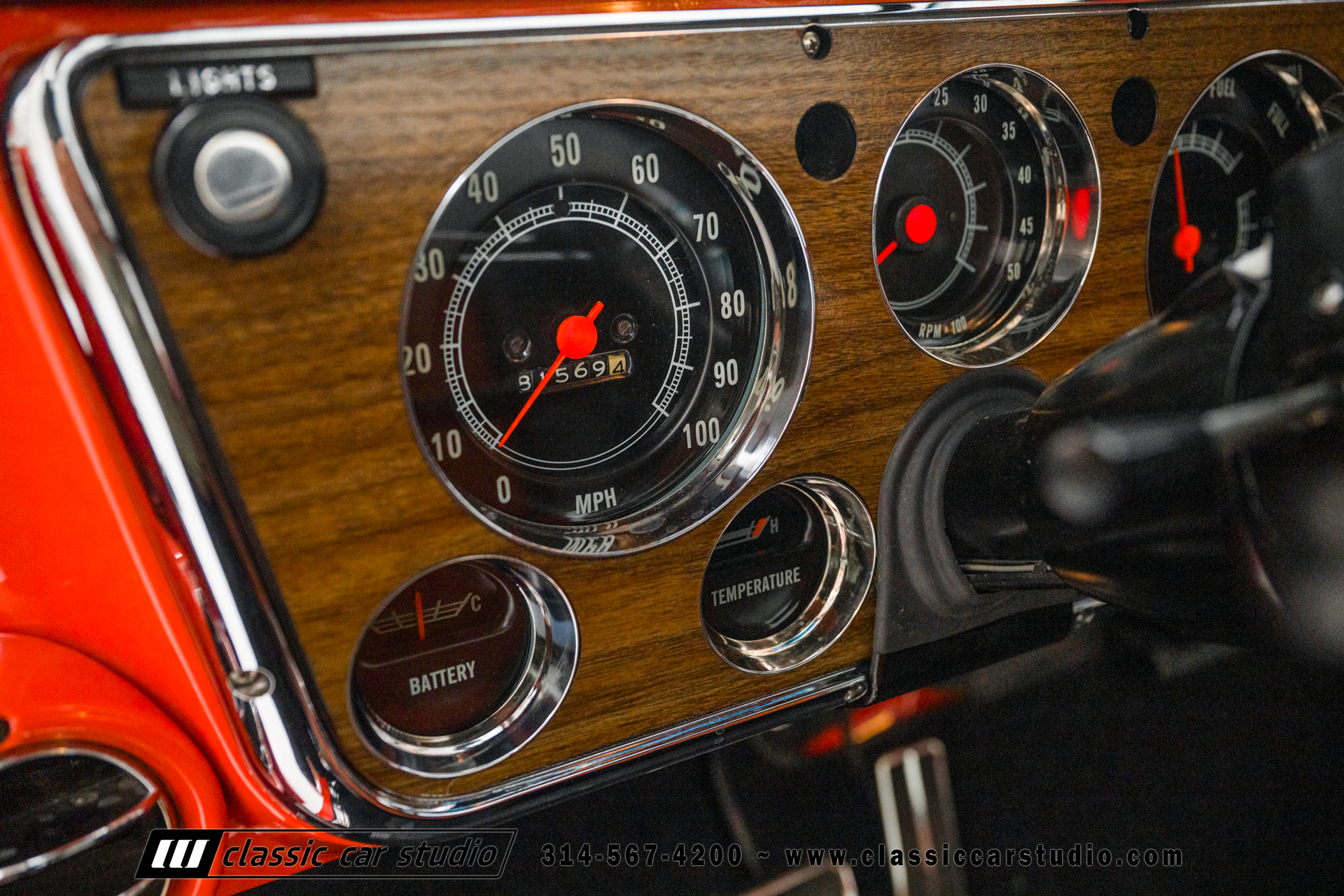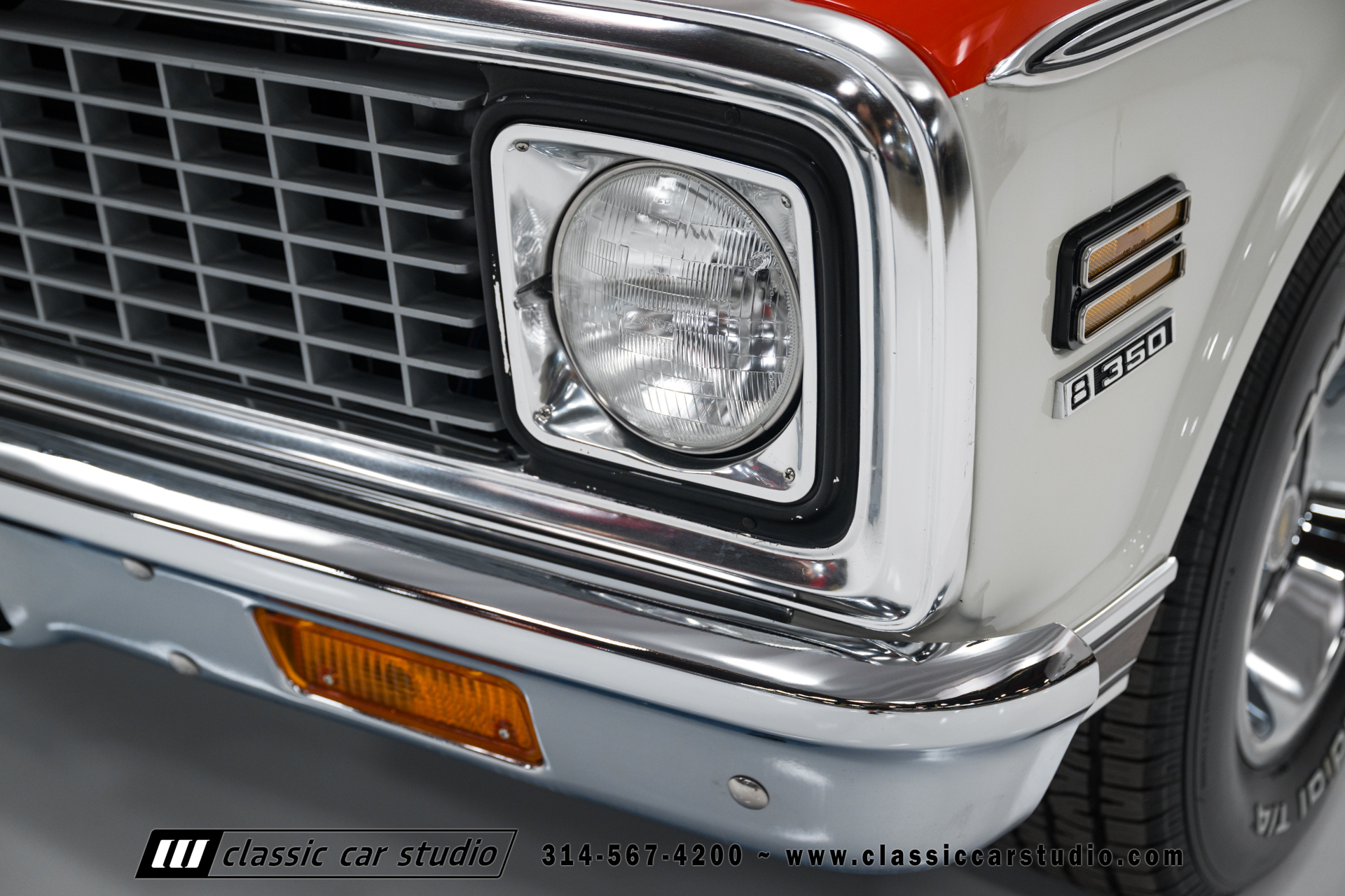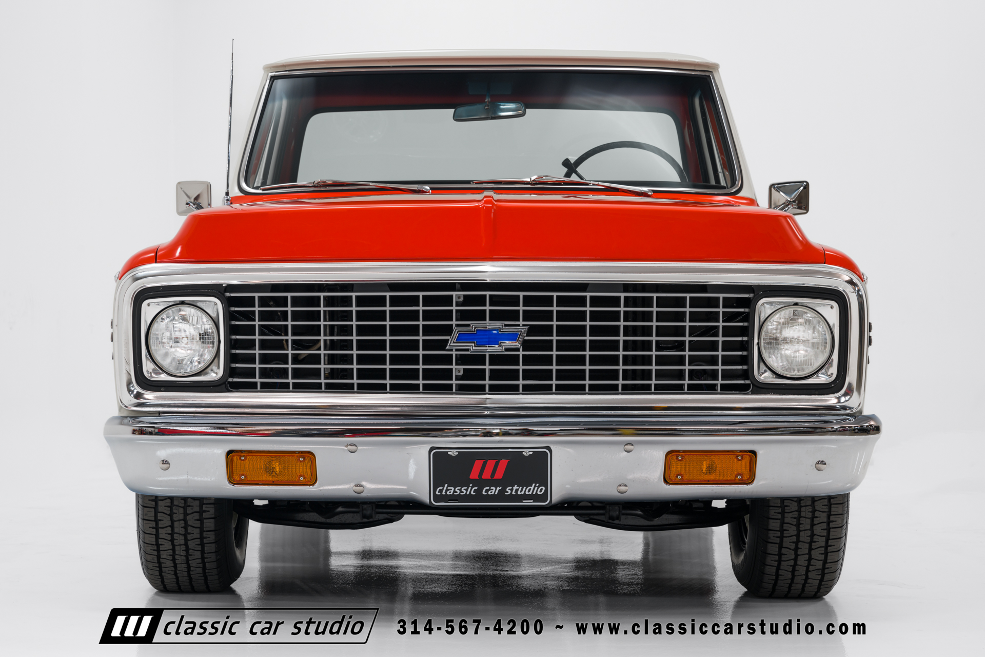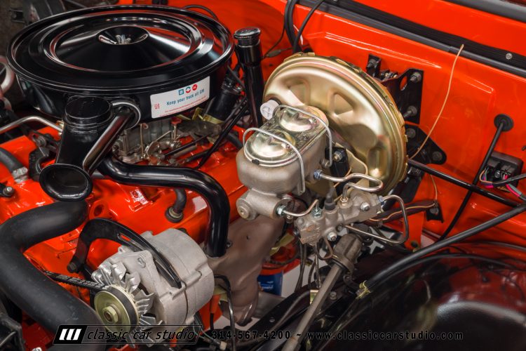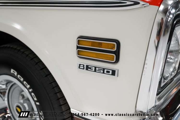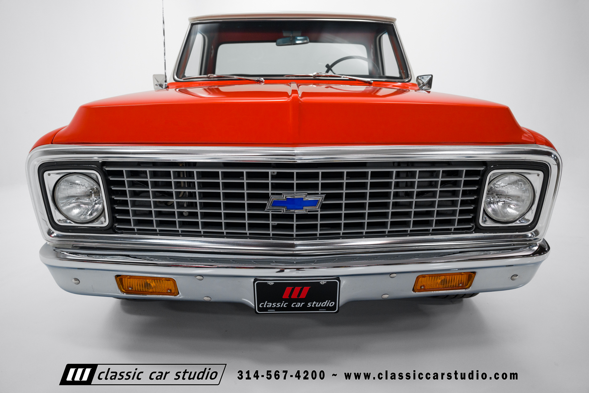 This 1972 Chevrolet C10 is a Fleetside pickup that was refurbished under prior ownership and is finished in orange and white over black vinyl and orange houndstooth cloth upholstery. Power is supplied by a 350ci V8 linked with a TH350 three-speed automatic transmission and a 12-bolt rear axle. Additional equipment includes Cheyenne Super badging, a wood-lined bed floor, air conditioning, power steering, power front disc brakes, 15″ Rally-style wheels, woodgrain trim accents, and a push-button AM/FM radio. This C10 was acquired by the selling dealer in June 2023 and is now offered in Missouri with a clean Kentucky title.
