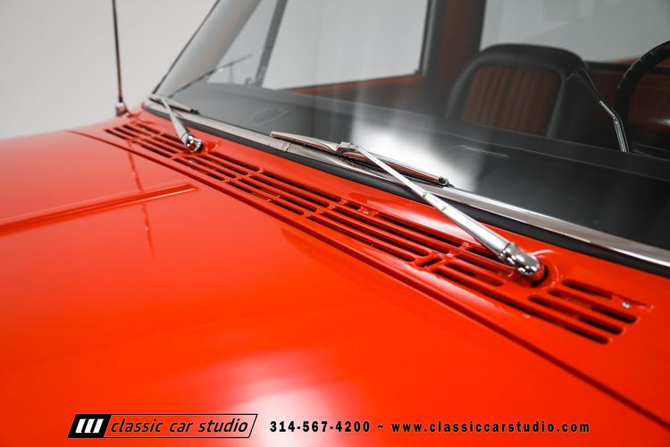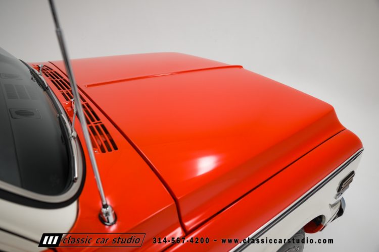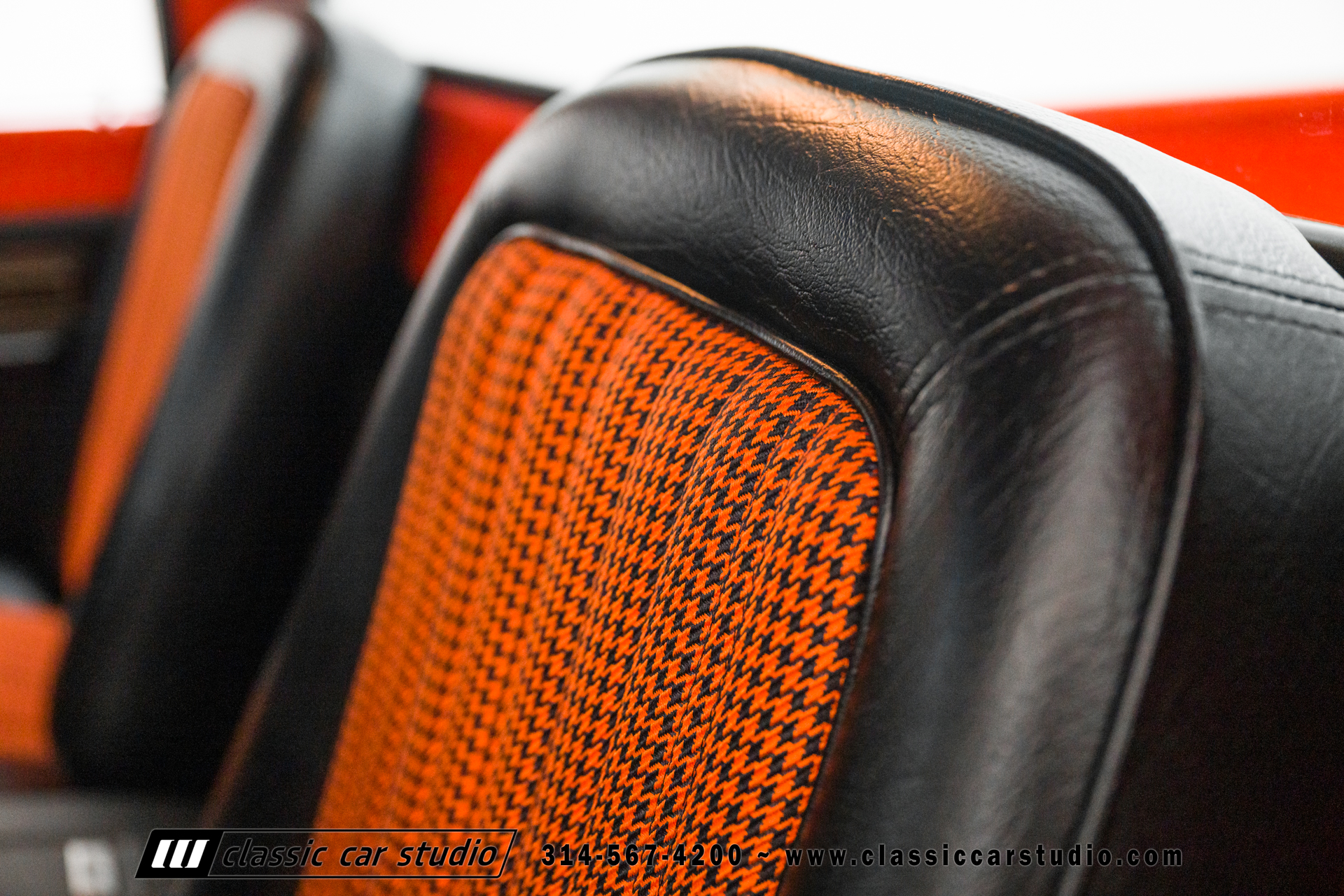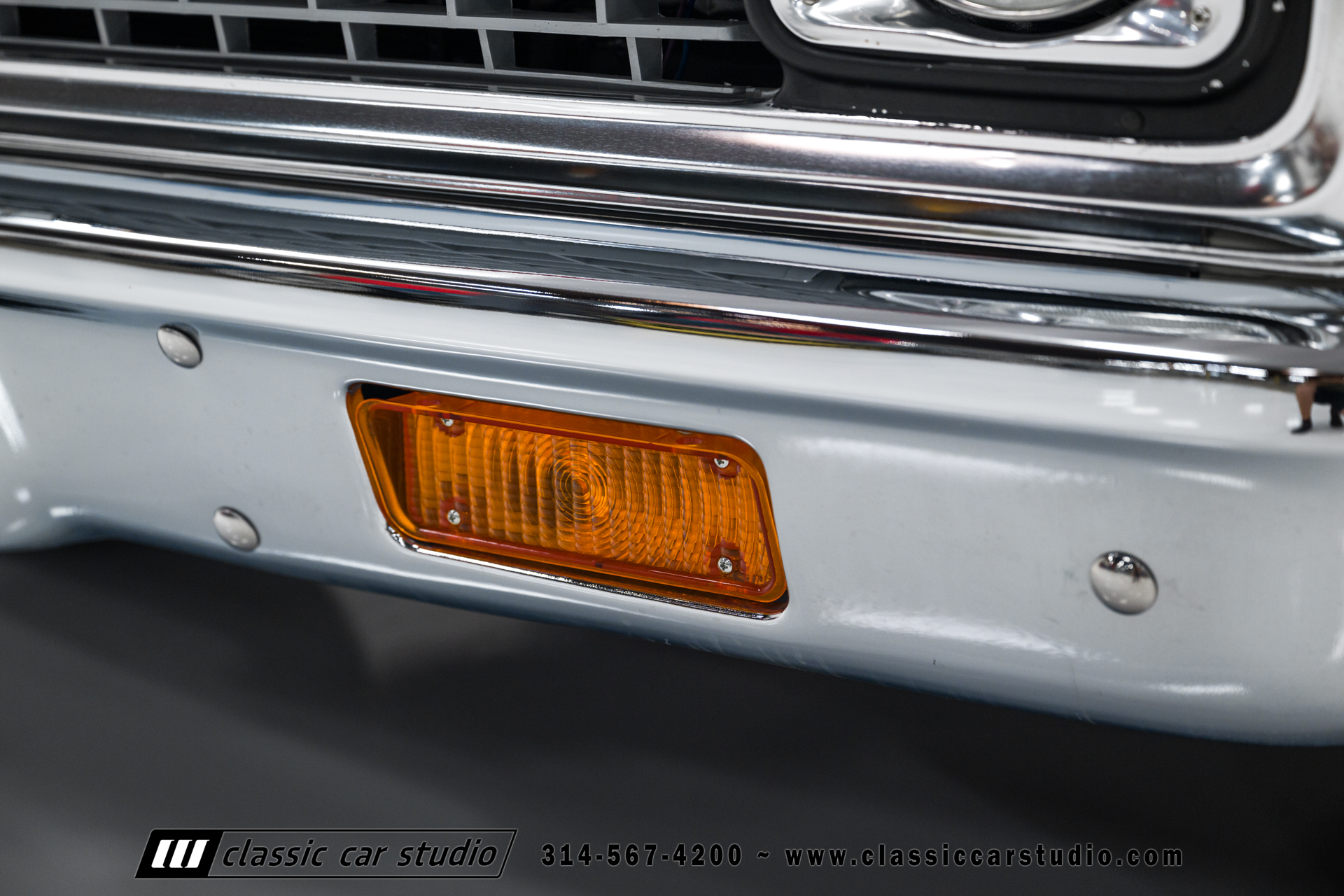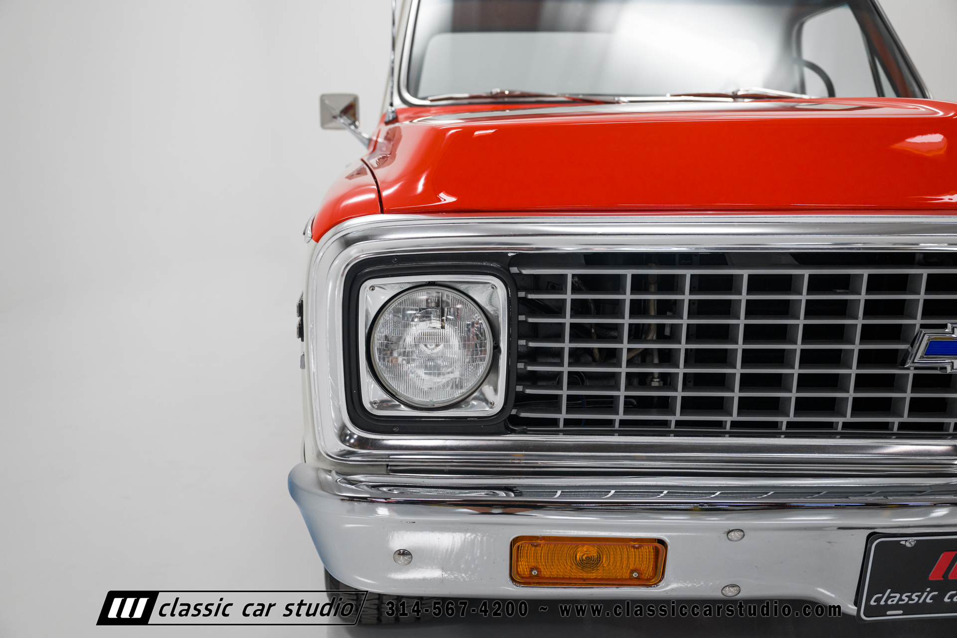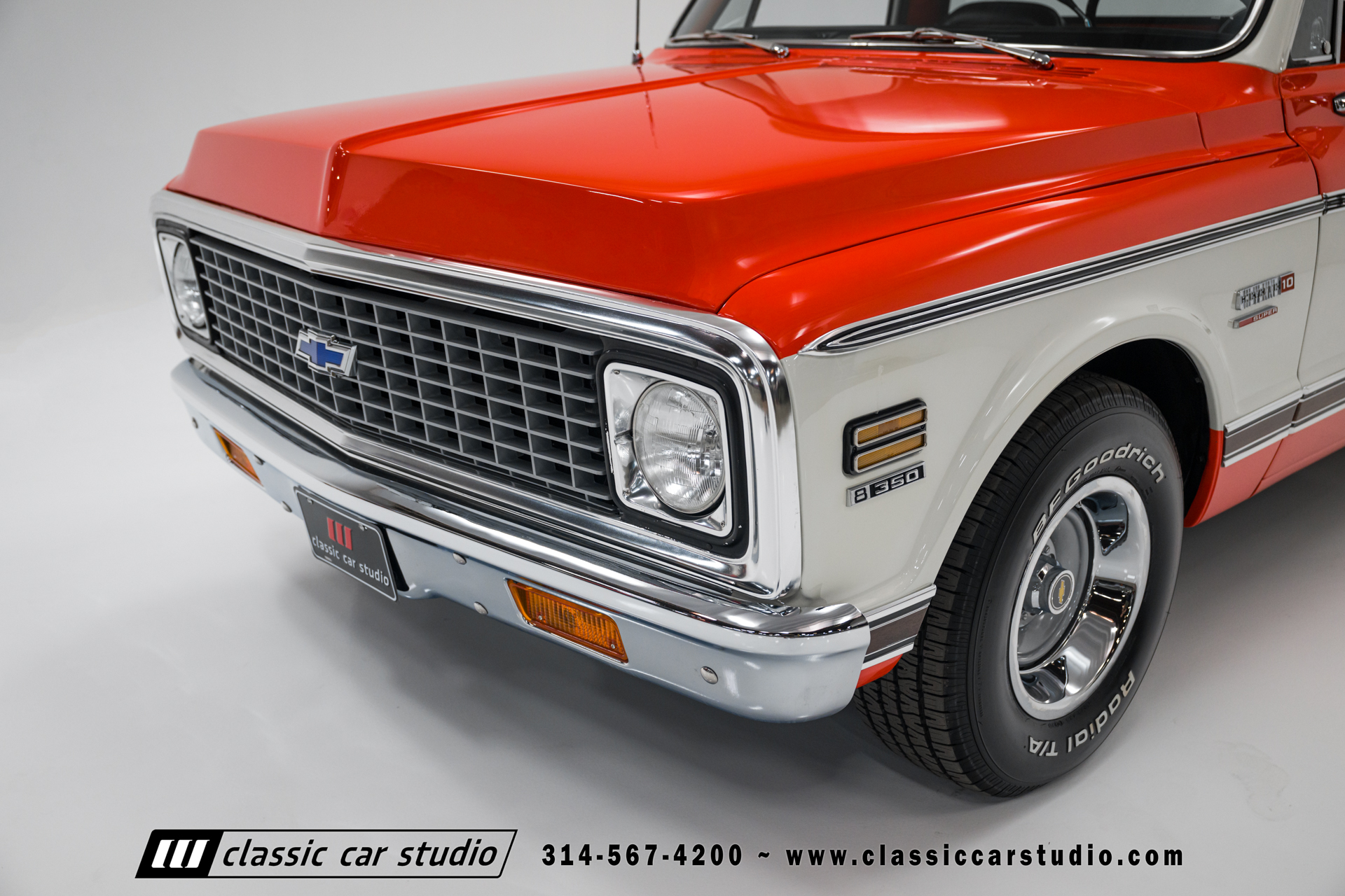 This 1972 Chevrolet C10 is a Fleetside pickup that was refurbished under prior ownership and is finished in orange and white over black vinyl and orange houndstooth cloth upholstery. Power is supplied by a 350ci V8 linked with a TH350 three-speed automatic transmission and a 12-bolt rear axle. Additional equipment includes Cheyenne Super badging, a wood-lined bed floor, air conditioning, power steering, power front disc brakes, 15″ Rally-style wheels, woodgrain trim accents, and a push-button AM/FM radio. This C10 was acquired by the selling dealer in June 2023 and is now offered in Missouri with a clean Kentucky title.