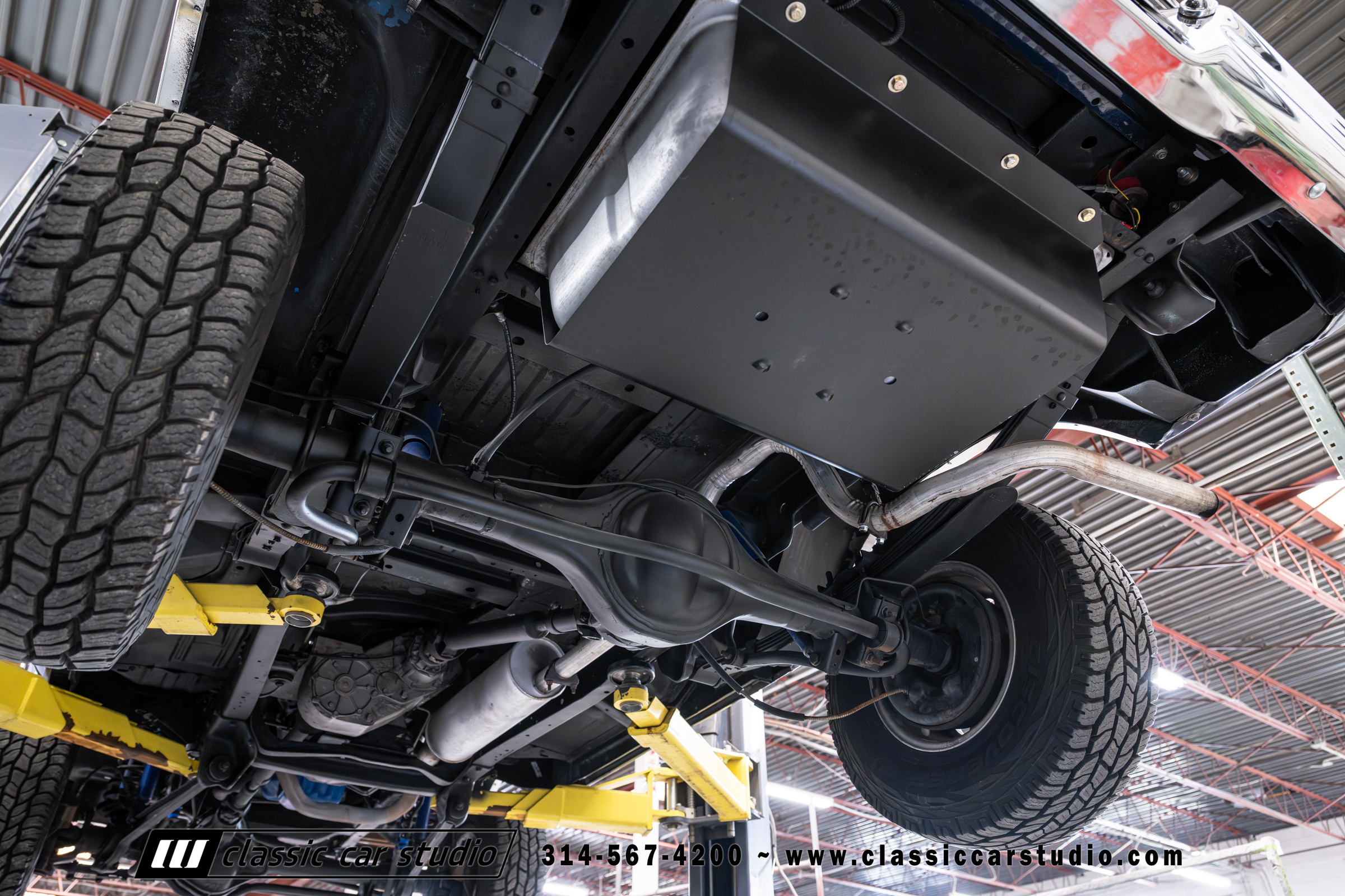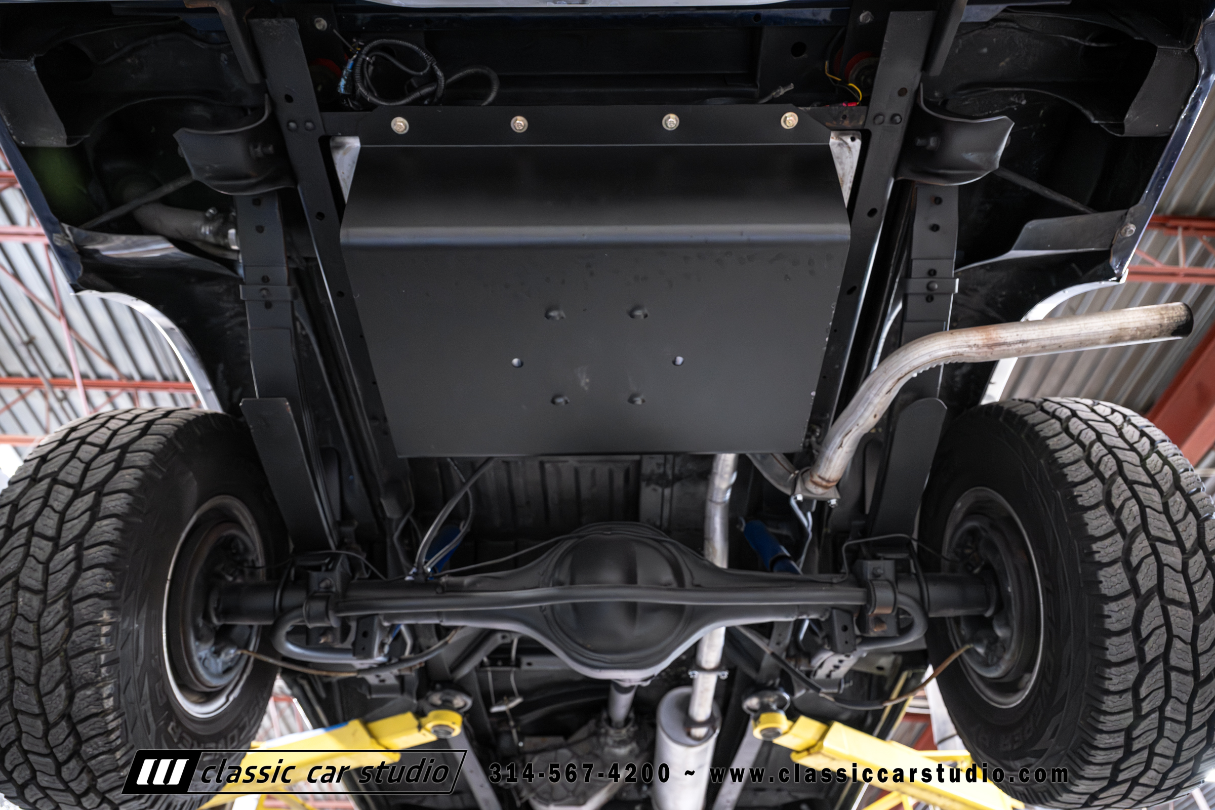 This 1979 Ford Bronco Ranger XLT was refurbished under prior ownership approximately seven years ago and is powered by a 400ci V8 linked with a three-speed automatic transmission and a dual-range transfer case. Finished in Dark Blue Metallic and gray over blue vinyl upholstery, the truck is equipped with 15″ Ion Alloy wheels, manually locking front hubs, power front disc brakes, a removable fiberglass hardtop, a maximum capacity fuel tank, chrome bumpers, air conditioning, cruise control, and an AM/FM stereo…