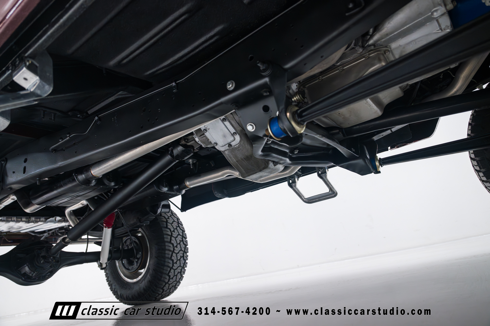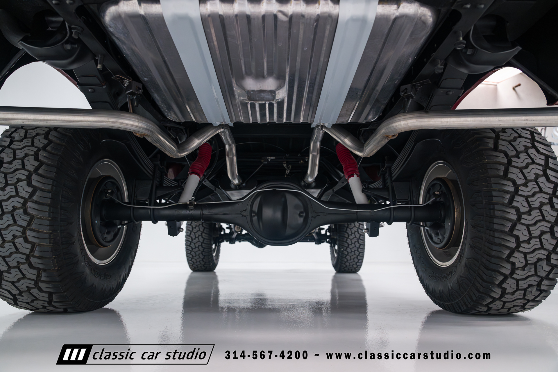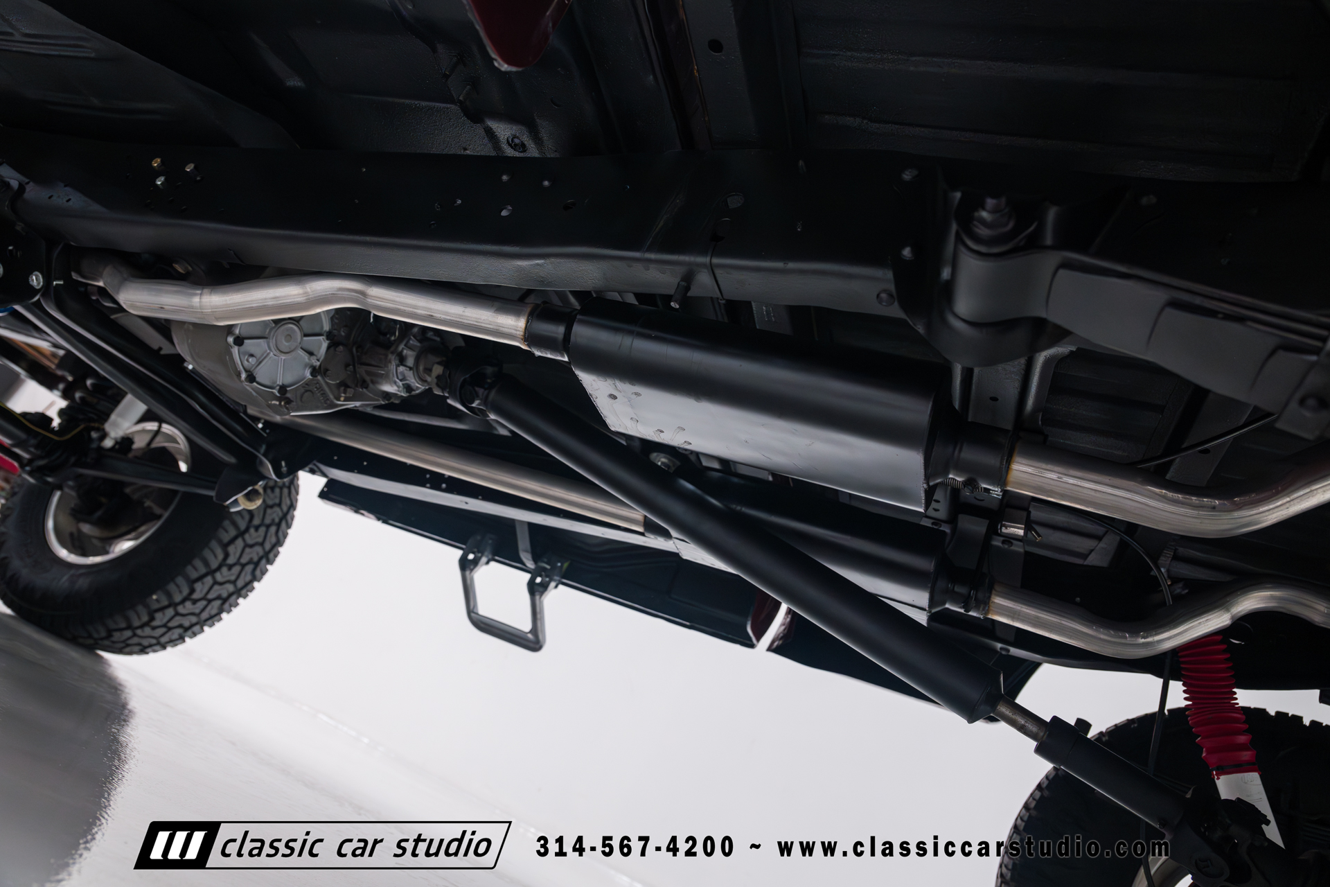 The truck was taken down to bare metal and has been refinished in a beautiful two stage, base/clear paint job. The frame of the truck was stripped down to bare metal and was repainted in a clean black finish. You will find all new glass throughout the truck and all of the stainless and chrome has been replaced as well. All of the window seals and door seals are new and all of the body bushings were replaced when the cab and the bed were put back on the frame.