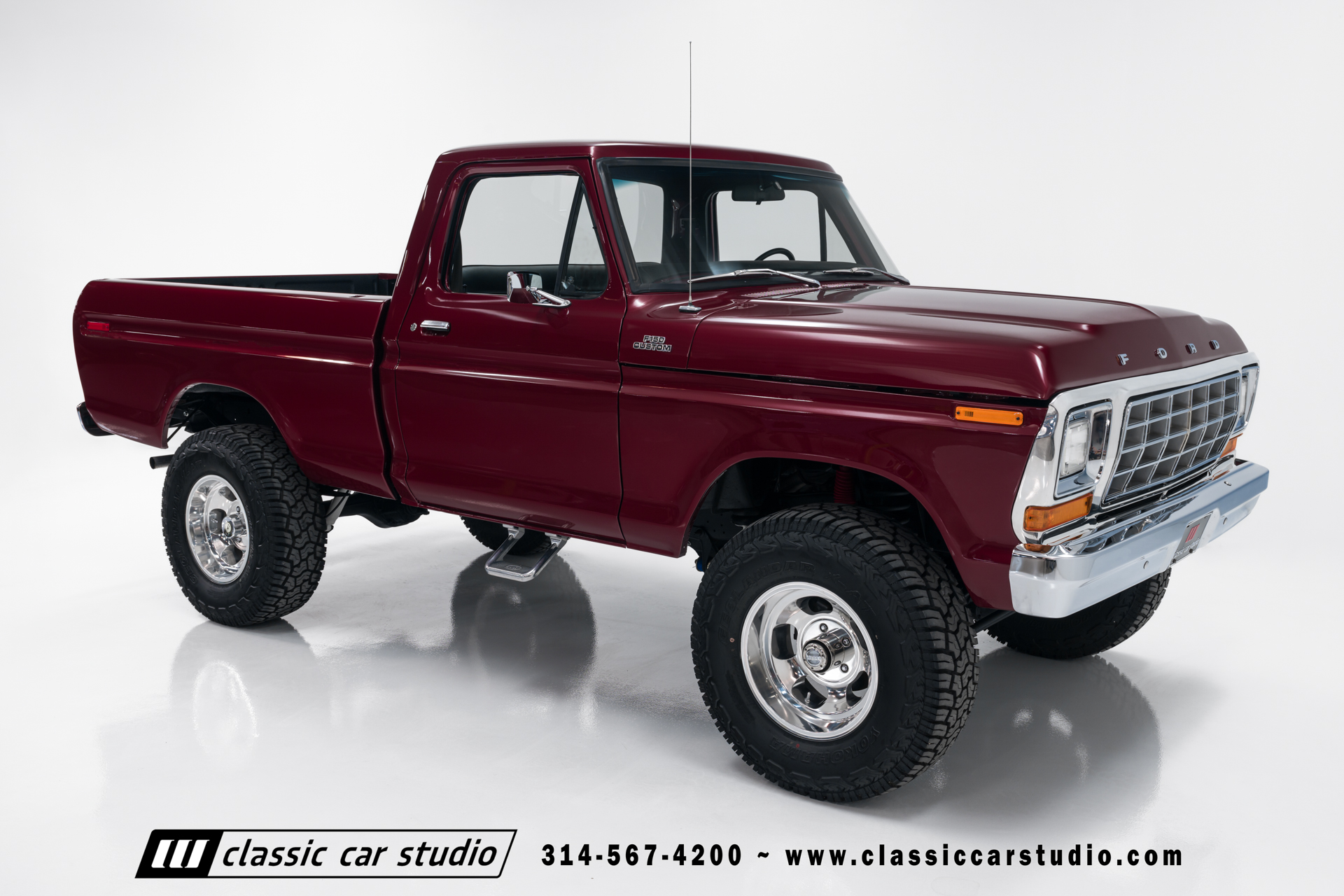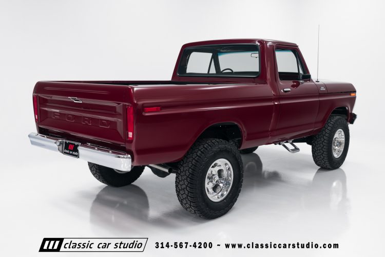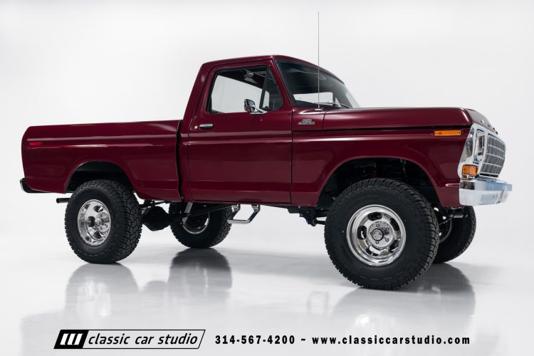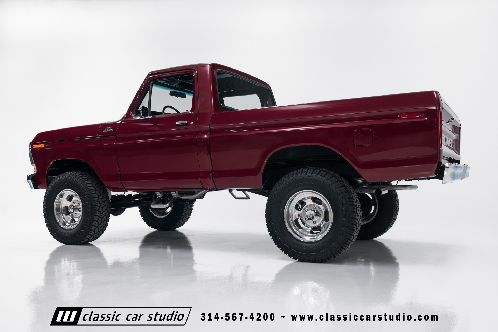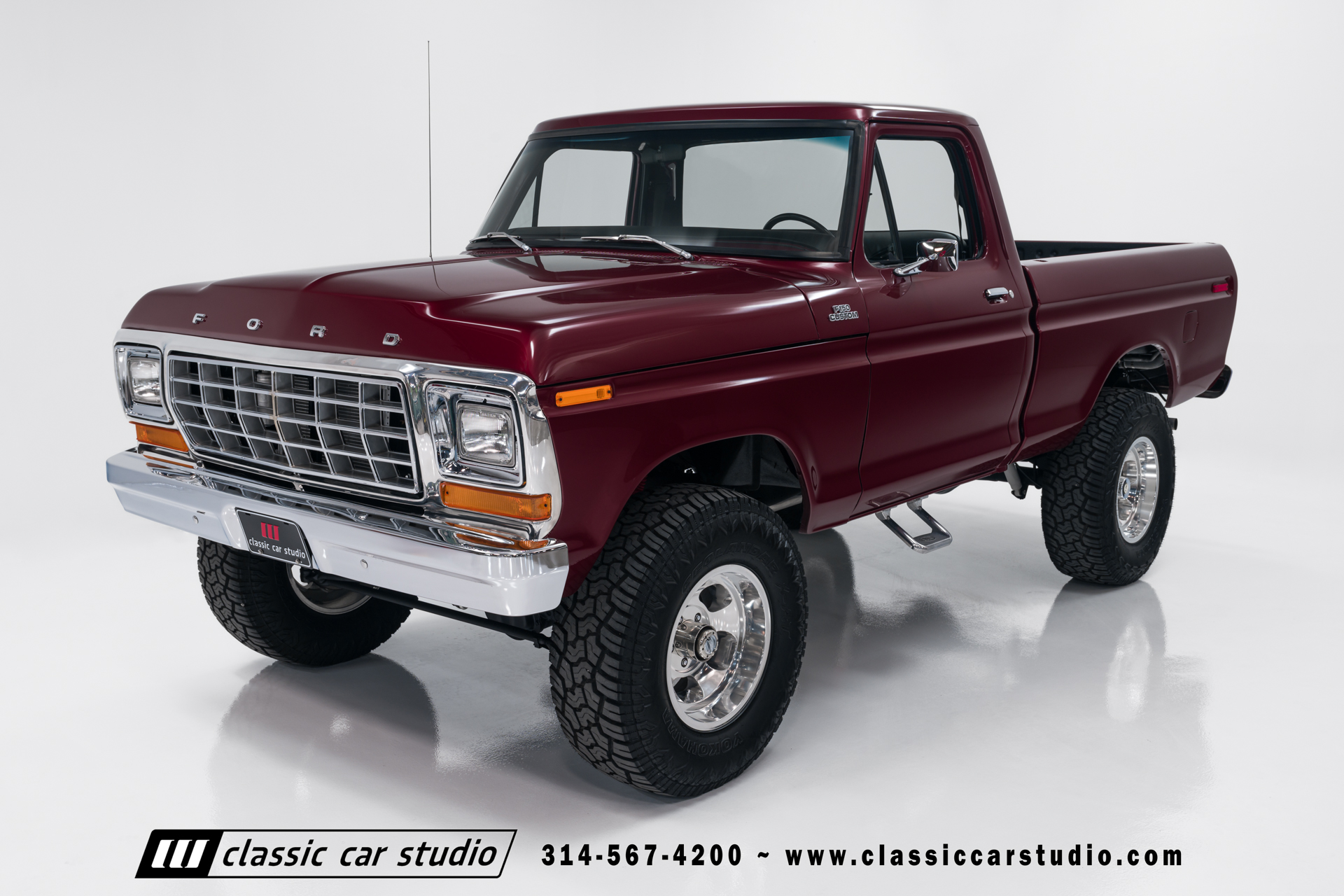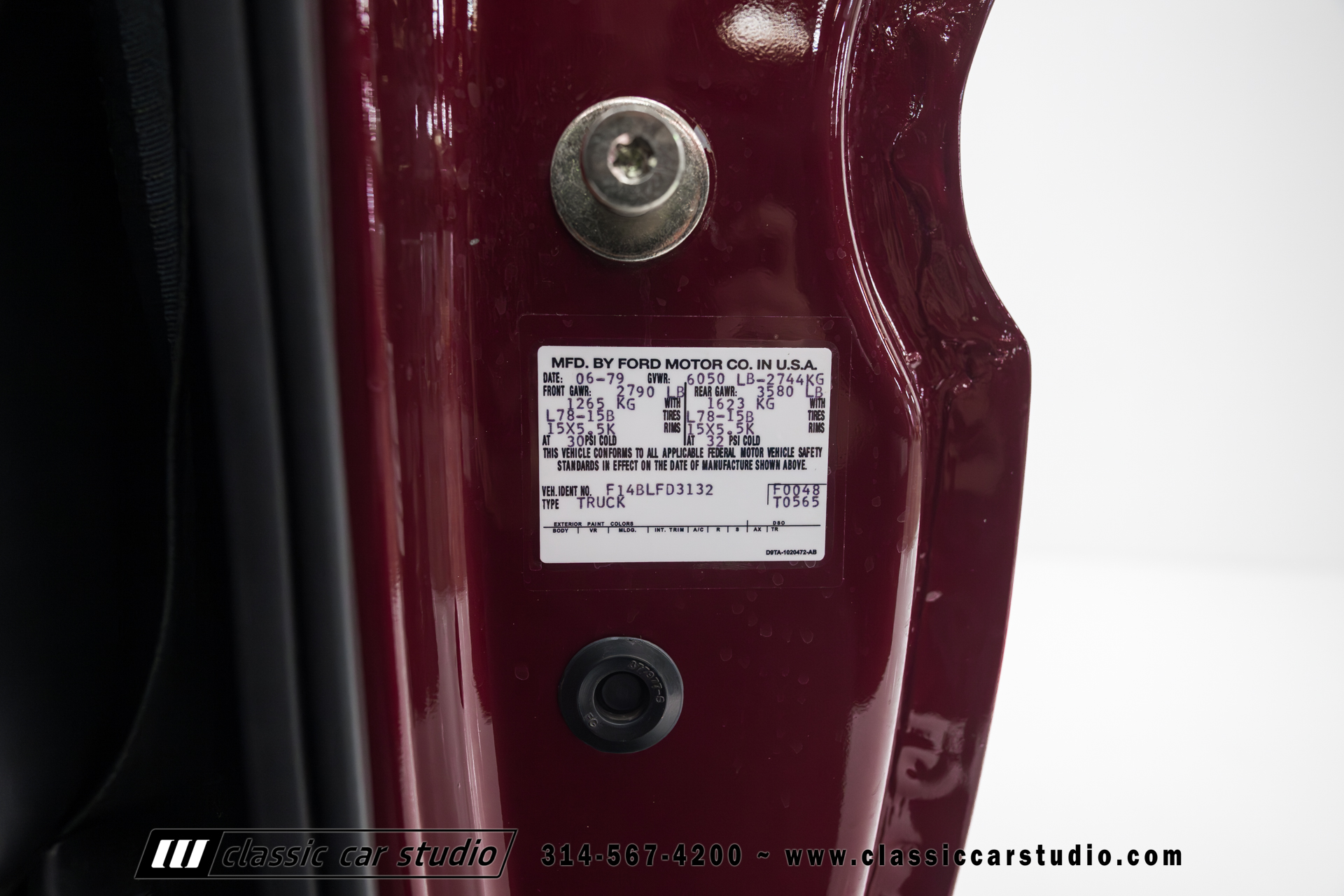 Finished in Burgundy over a black interior, this 1979 Ford F150 is the recipient of a complete frame off restoration. The F150 was the only way to get the short bed option in this two year model run and this truck has been done to show quality.