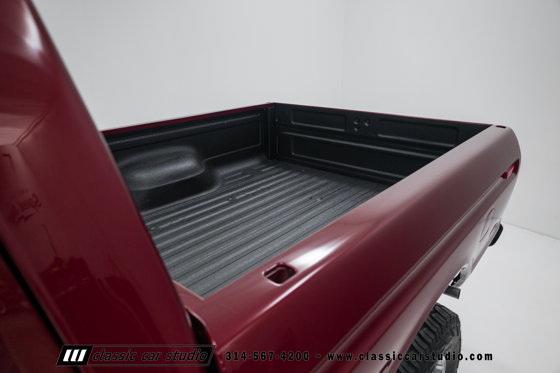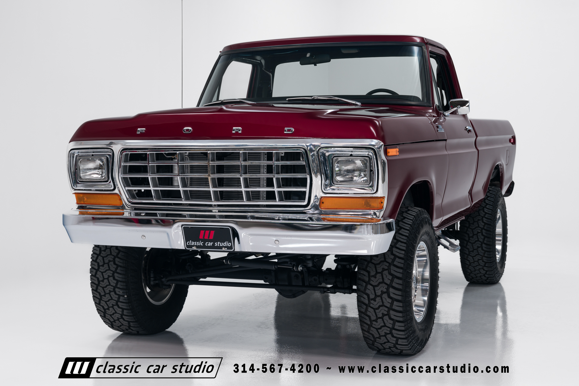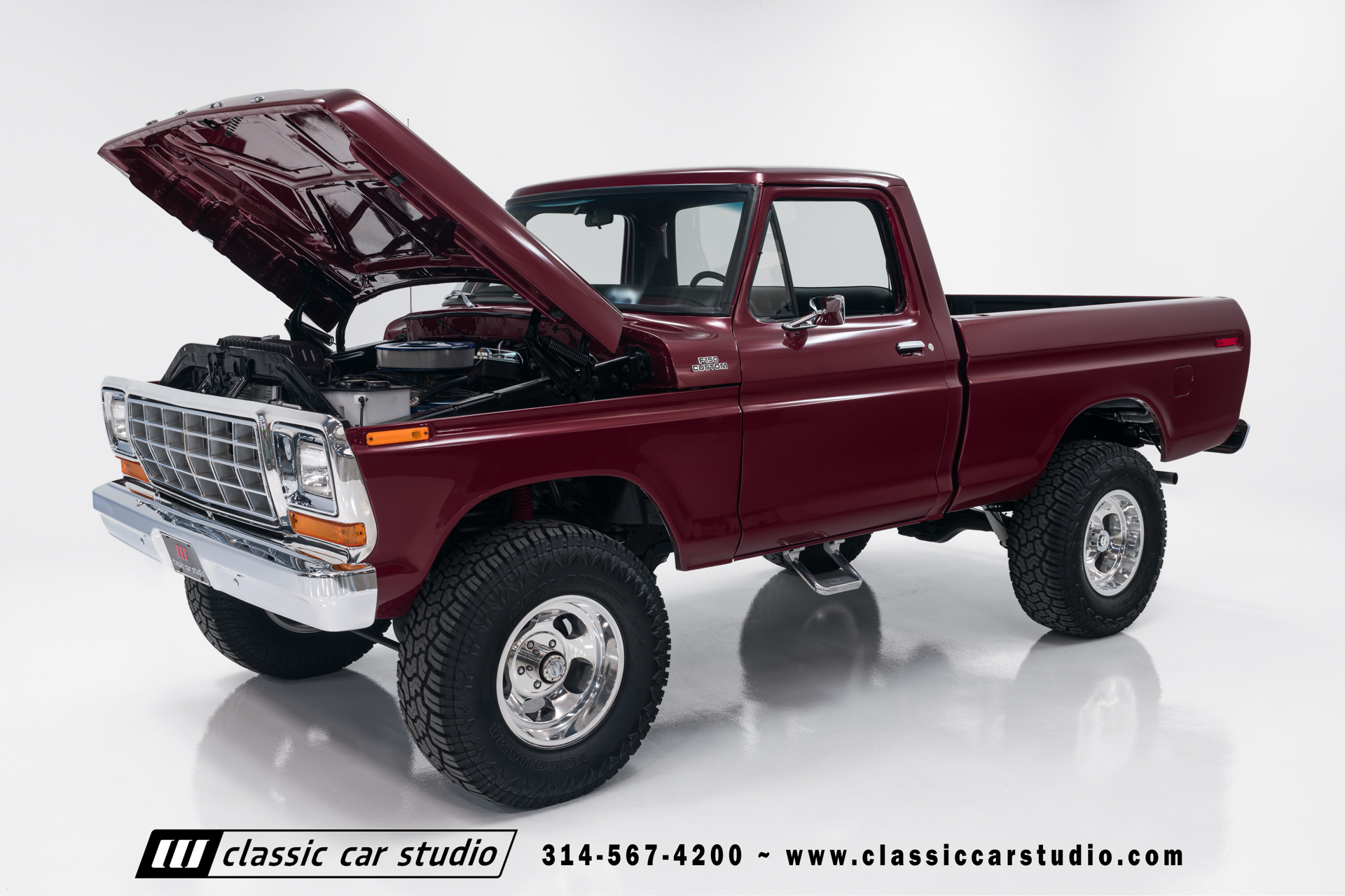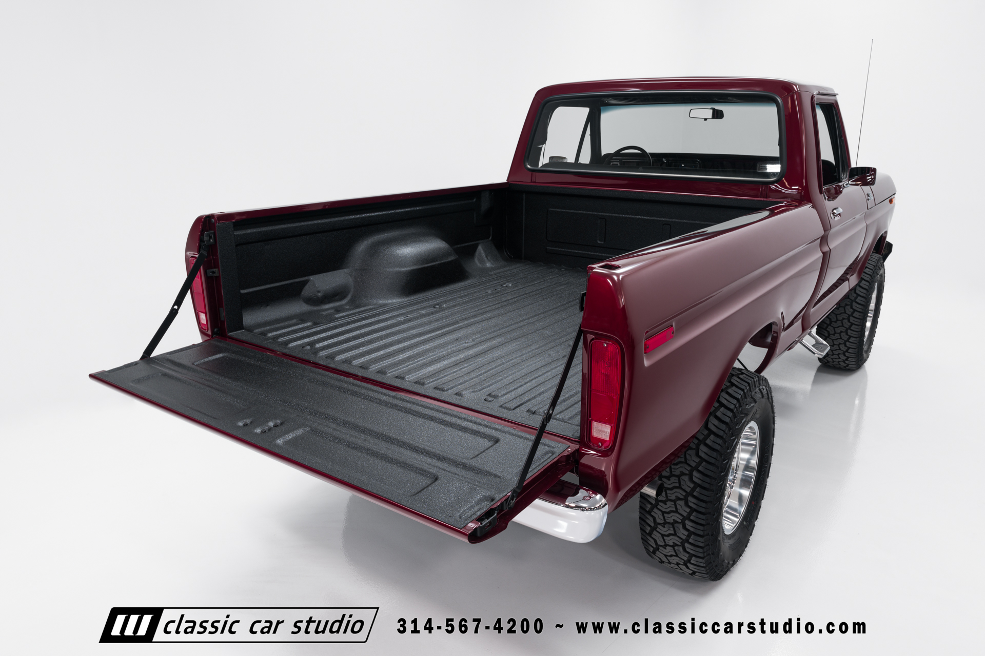 Finished in Burgundy over a black interior, this 1979 Ford F150 is the recipient of a complete frame off restoration. The F150 was the only way to get the short bed option in this two year model run and this truck has been done to show quality.