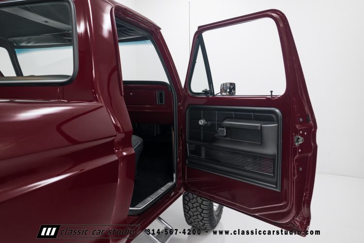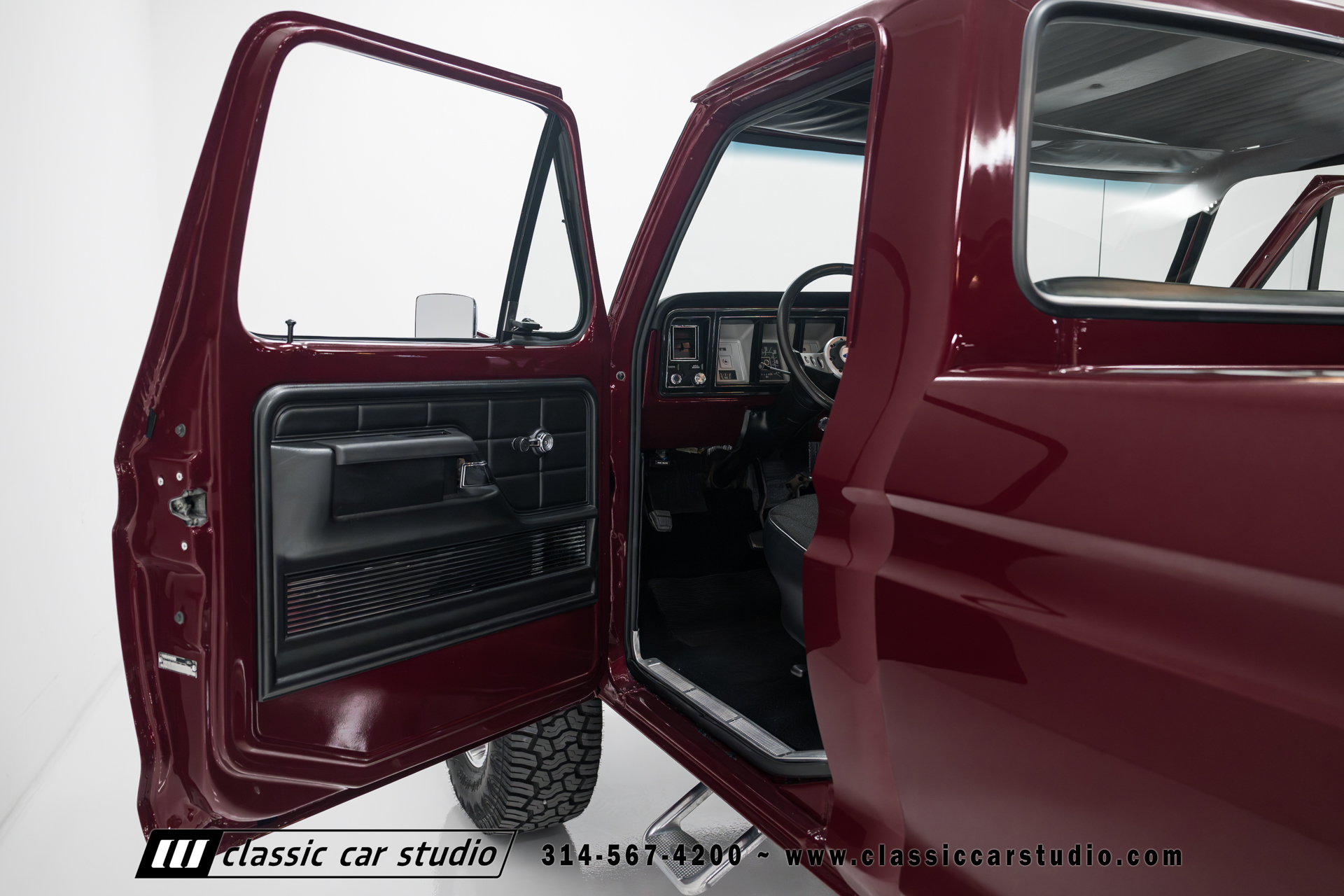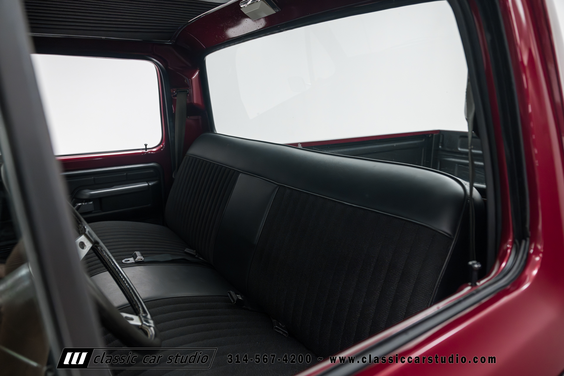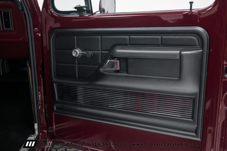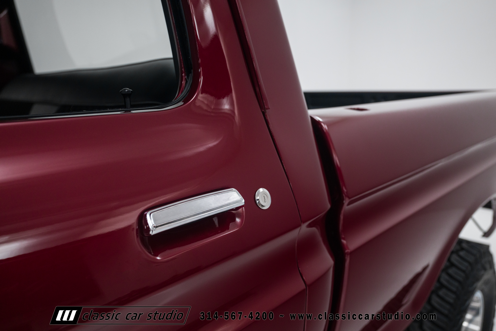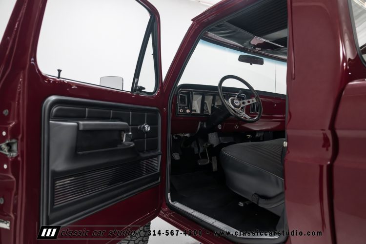 Finished in Burgundy over a black interior, this 1979 Ford F150 is the recipient of a complete frame off restoration. The F150 was the only way to get the short bed option in this two year model run and this truck has been done to show quality.