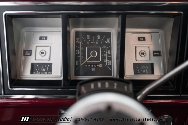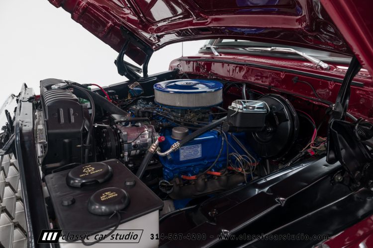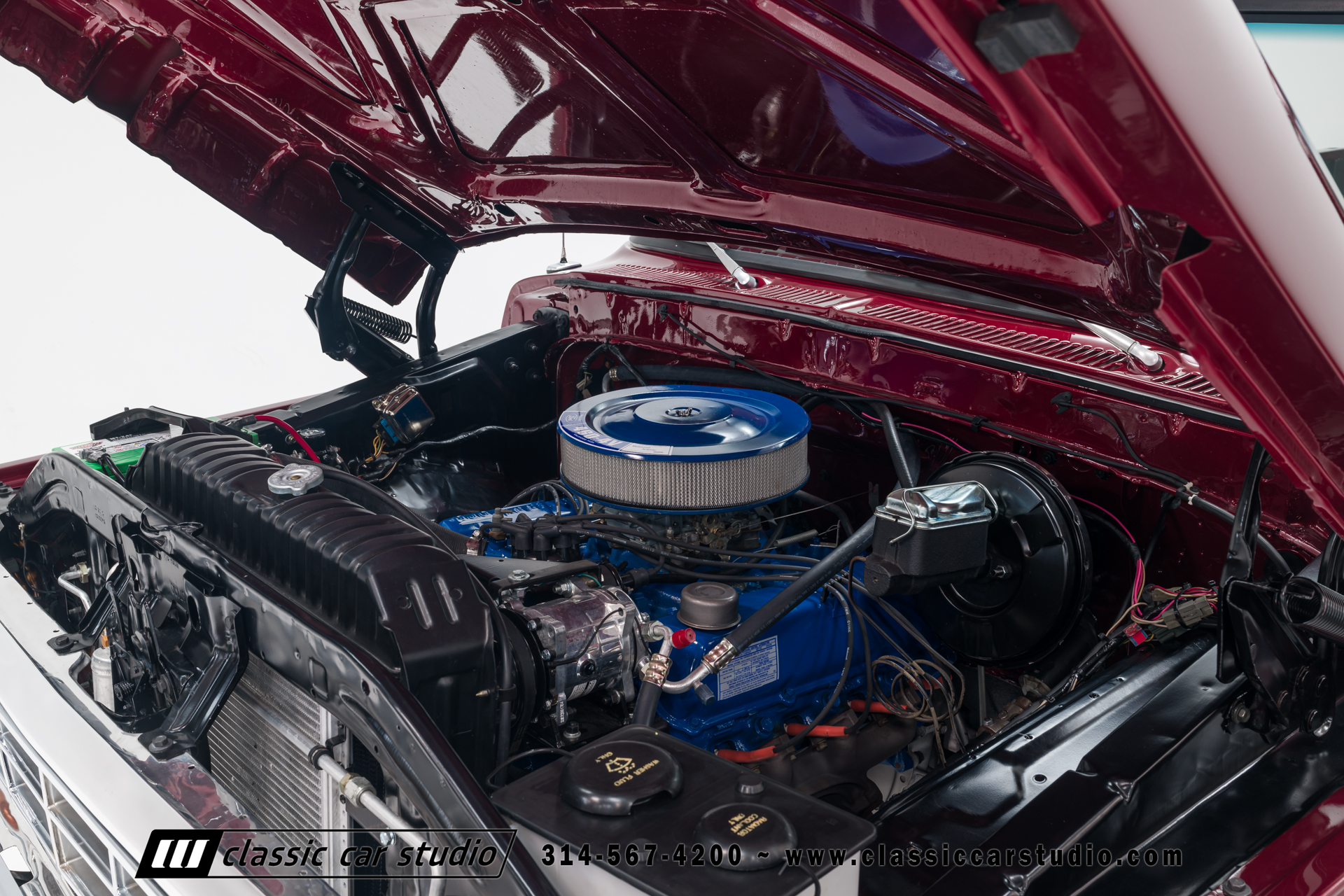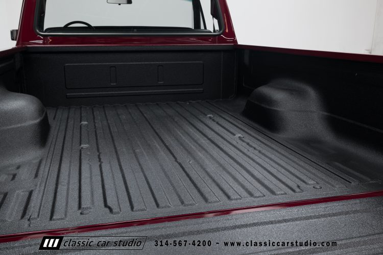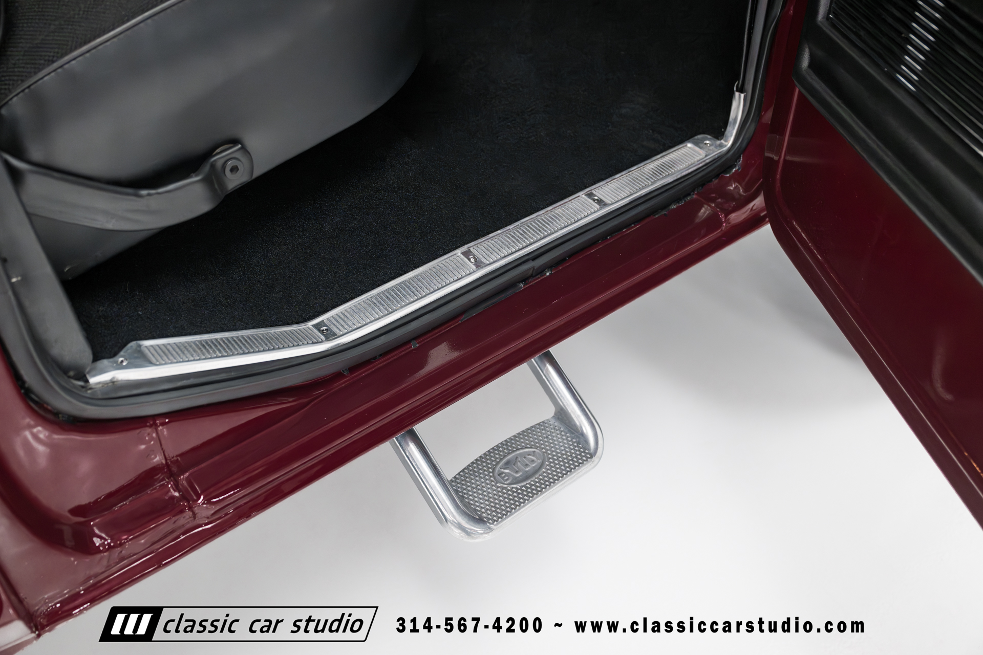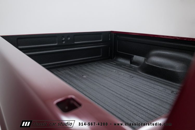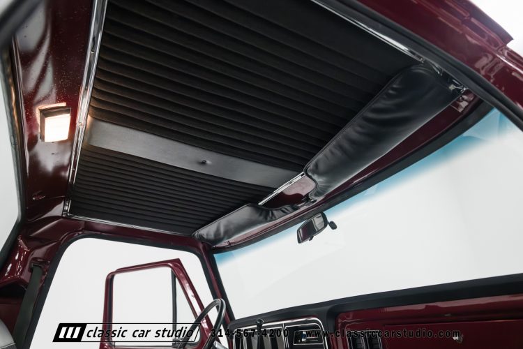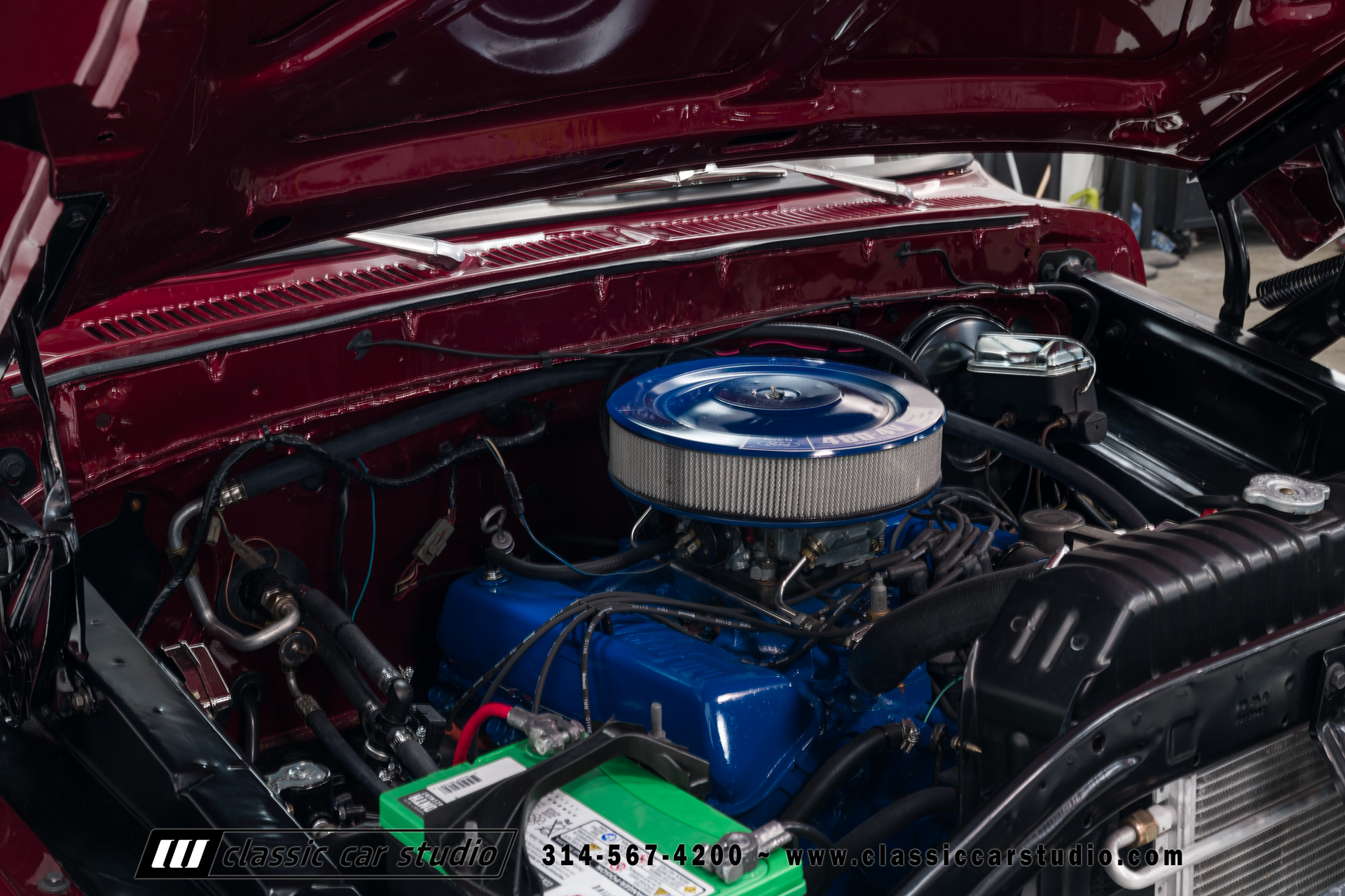 The interior has the same gorgeous paint as the exterior and comes complete with new carpeting, new door panels, a recovered bench seat and rebuilt gauges. The truck uses a modern AC system which also replaces the heater box with all new components. The stereo is now a digital unit that fits in the original location.