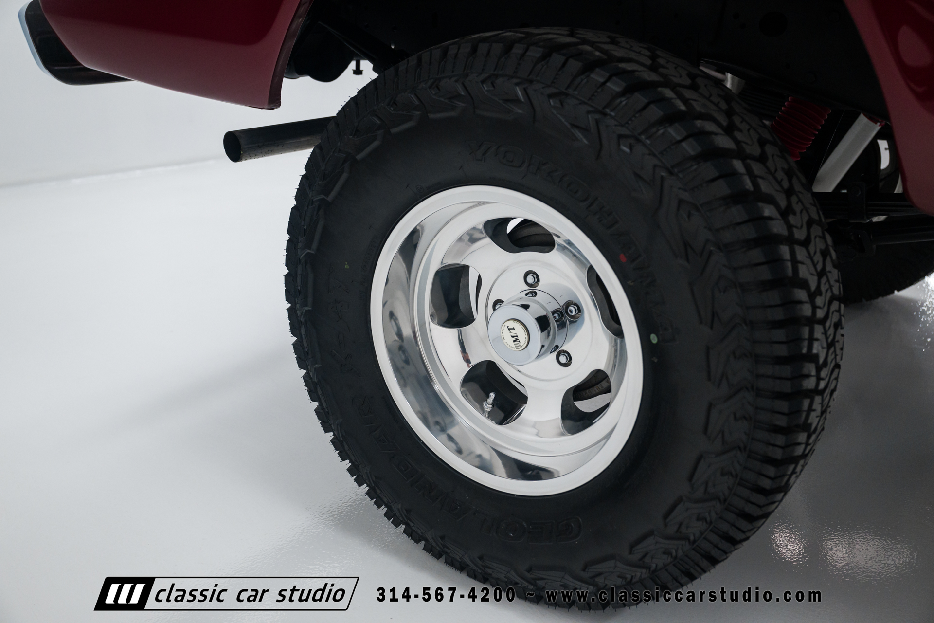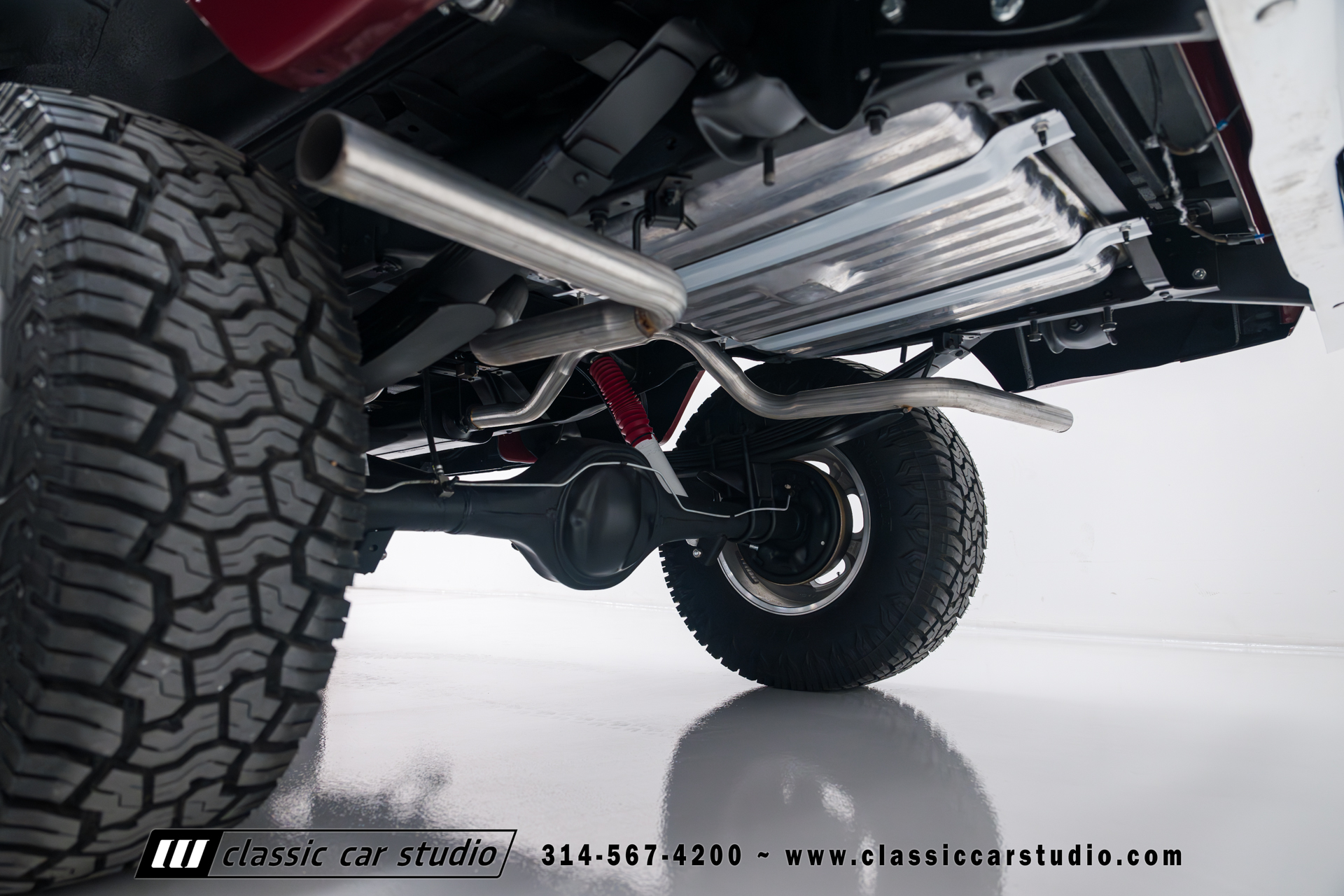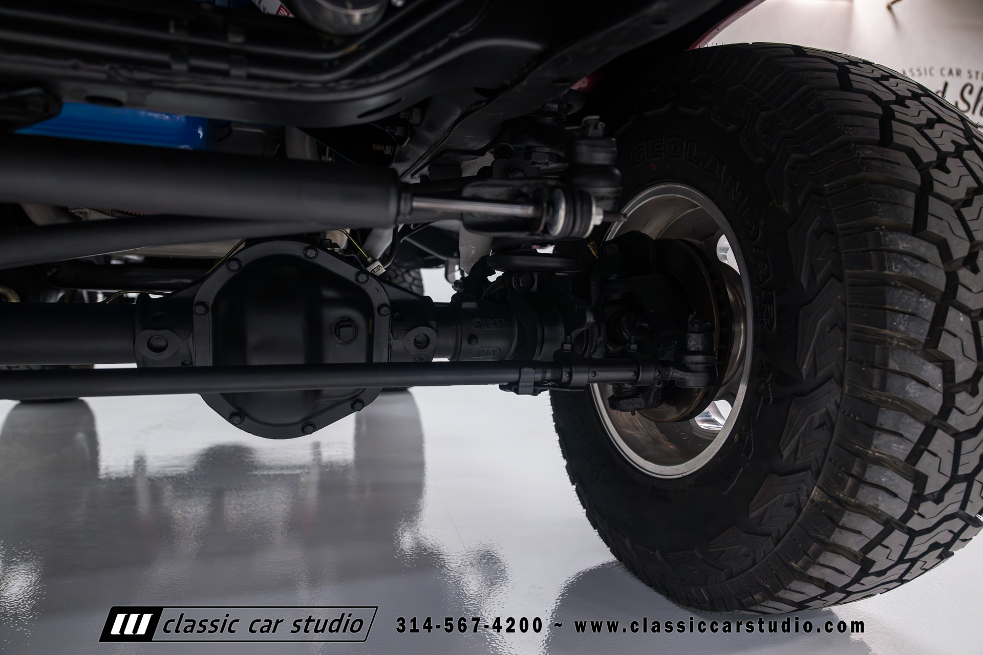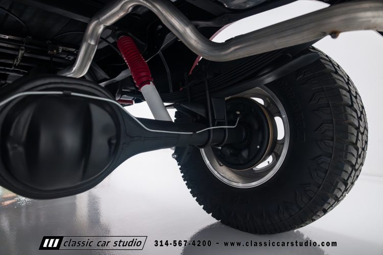 Although you could not get a 460 from the factory, the 460 CI is the engine to have in one of these Ford. This one has been rebuilt to factory specifications and hooks to a rebuilt C6 transmission. The transfer case and a rebuilt 205 unit and the front axle is a Dana 44 and the rear is a Ford 9”.