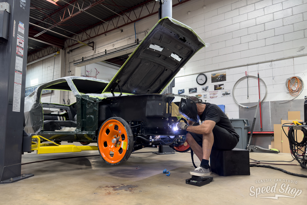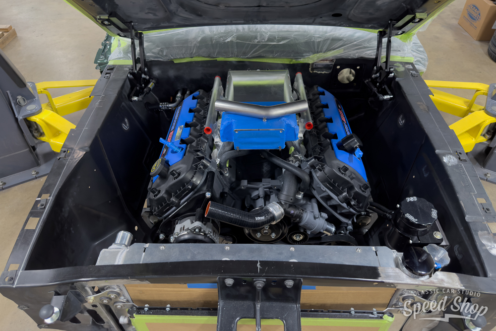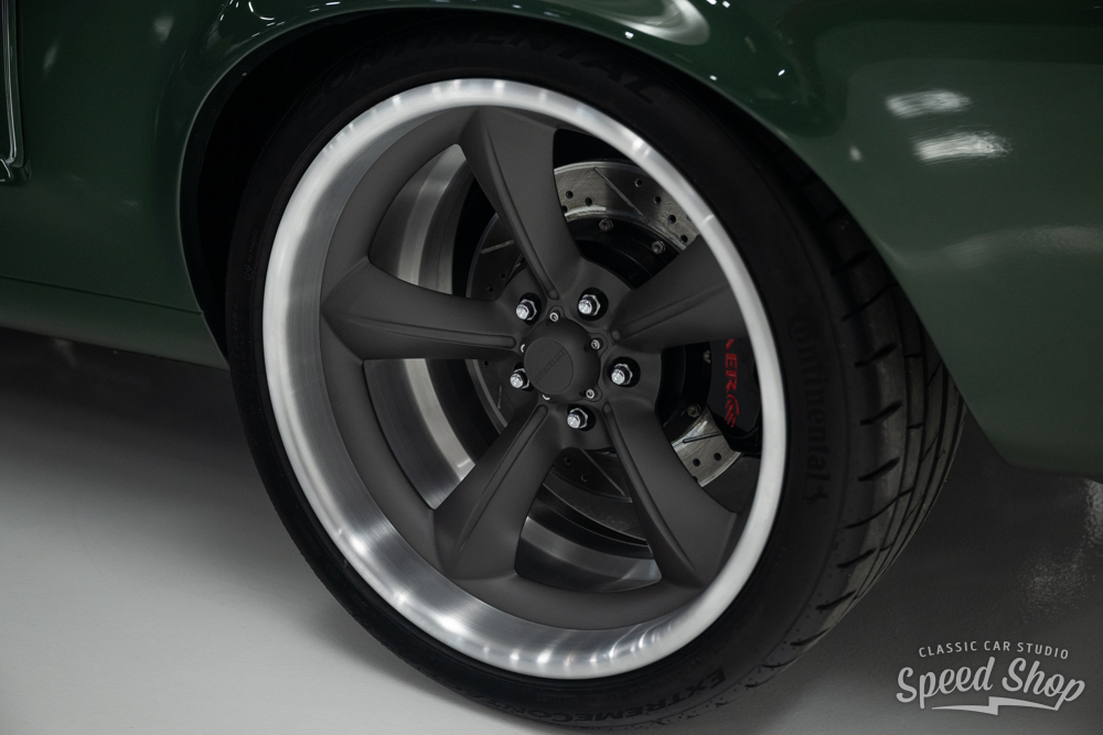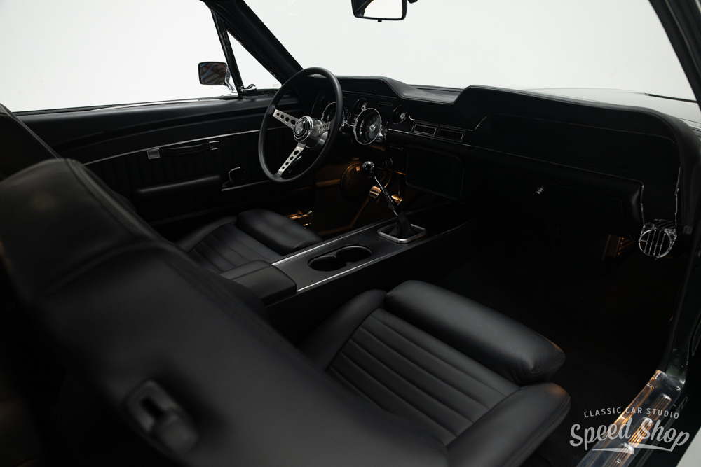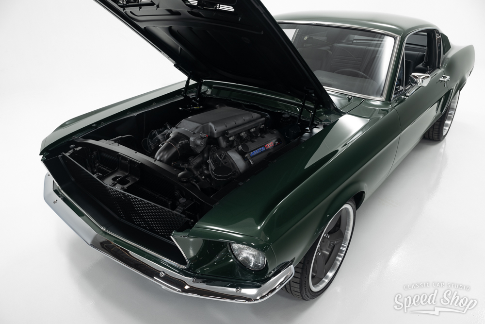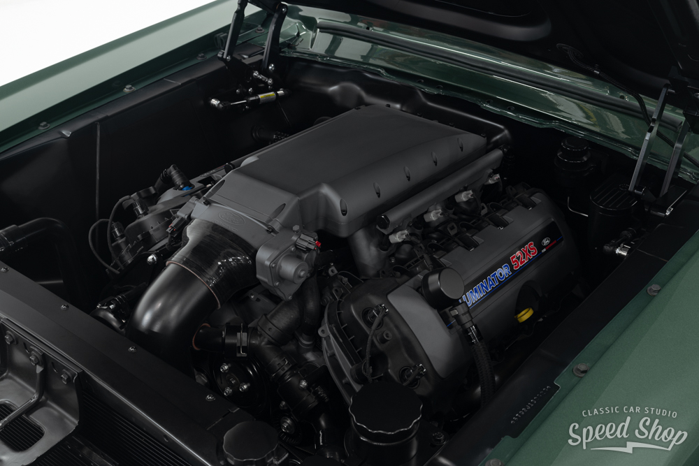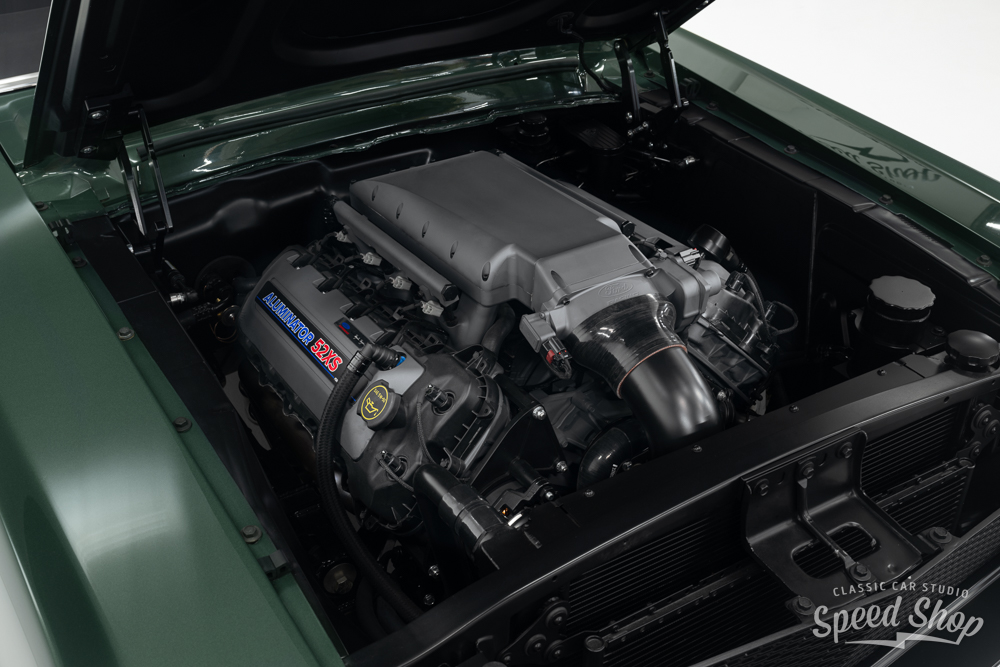 This 1968 Ford Mustang Fastback, crafted from start to finish at Classic Car Studio, is a masterpiece of performance and style. Built on a Roadster Shop “Spec” chassis and equipped with Baer 6-piston brakes at all four corners, it delivers exceptional stopping power. The Mustang features a striking “Highland Green” paint job, complemented by Schott “Challenger” wheels that maintain its iconic torque thrust aesthetic. Under the hood, a powerful 5.2L “Aluminator” V8 churns out 580 horsepower at 7,800 RPM, paired with a precise 6-speed Tremec manual transmission. The build includes a flawless full paint and body finish using BASF Refinish base and clear (55-Line), making this Mustang a true classic with modern muscle.